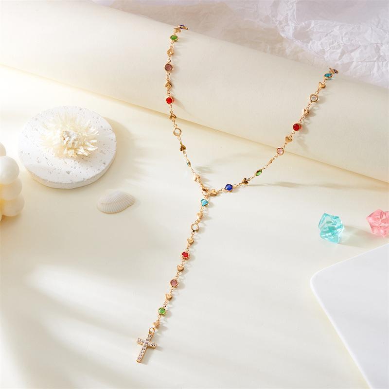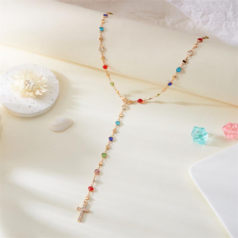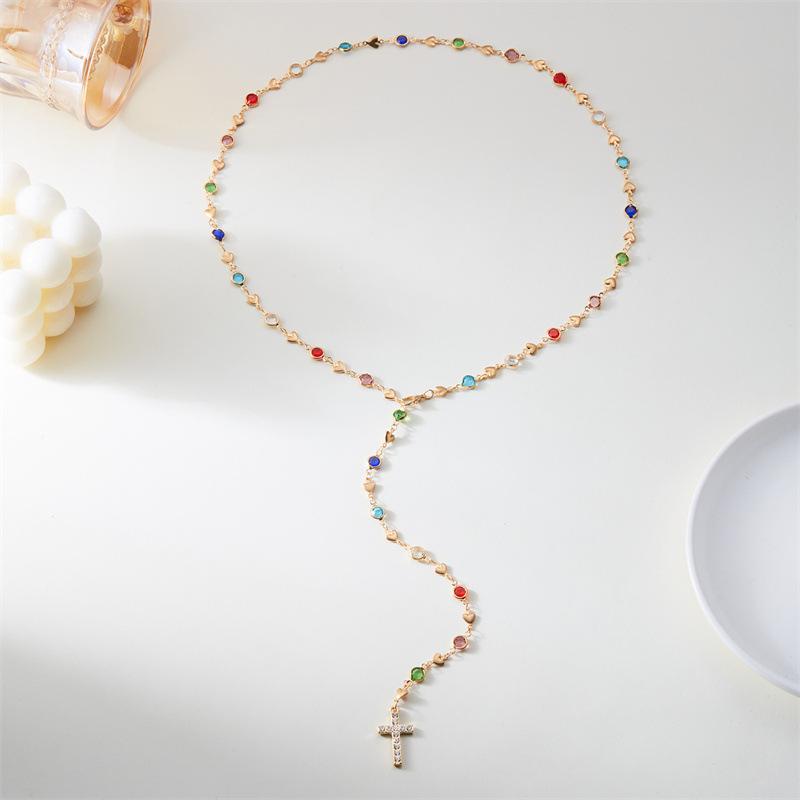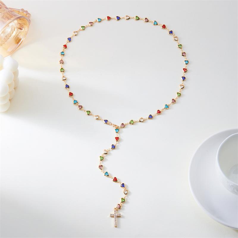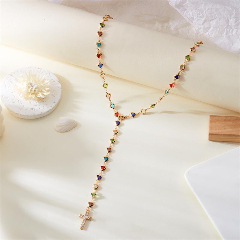 Joyería transfronteriza europea y americana temperamento color amor cruz collar de cadena en Y largo versátil borla cadena para suéter