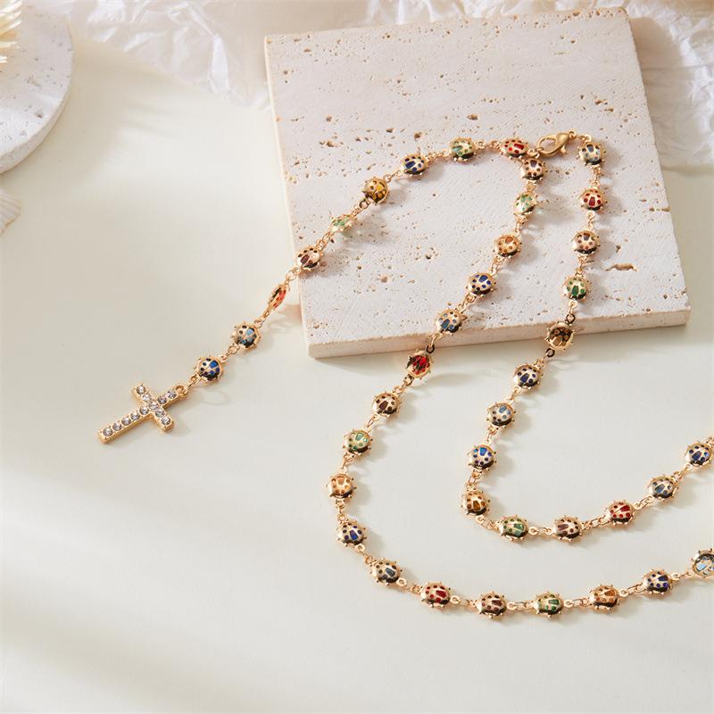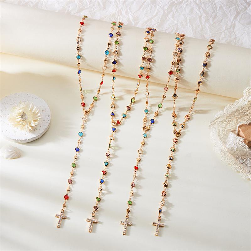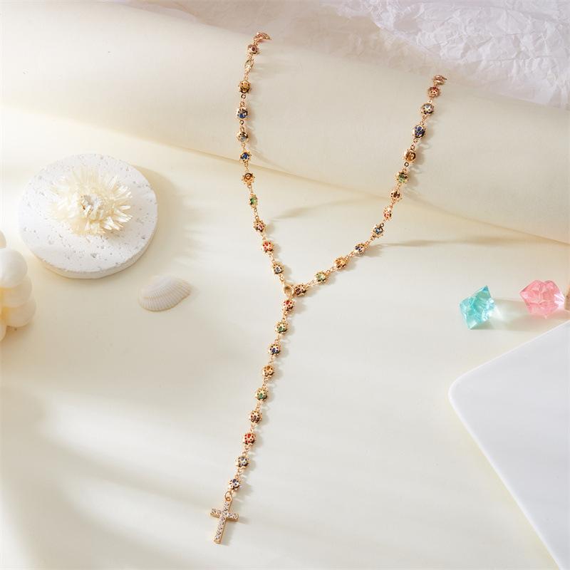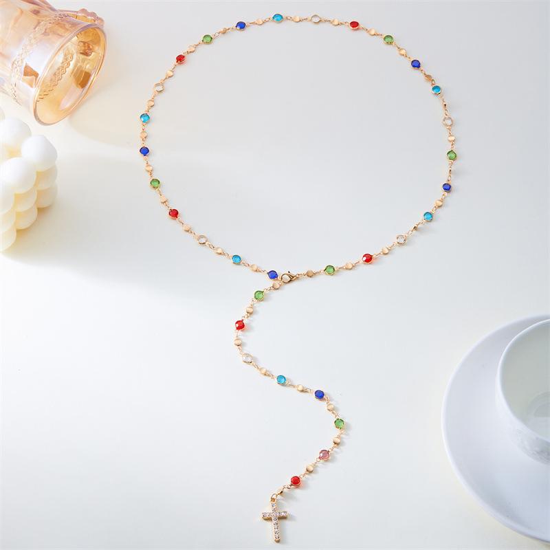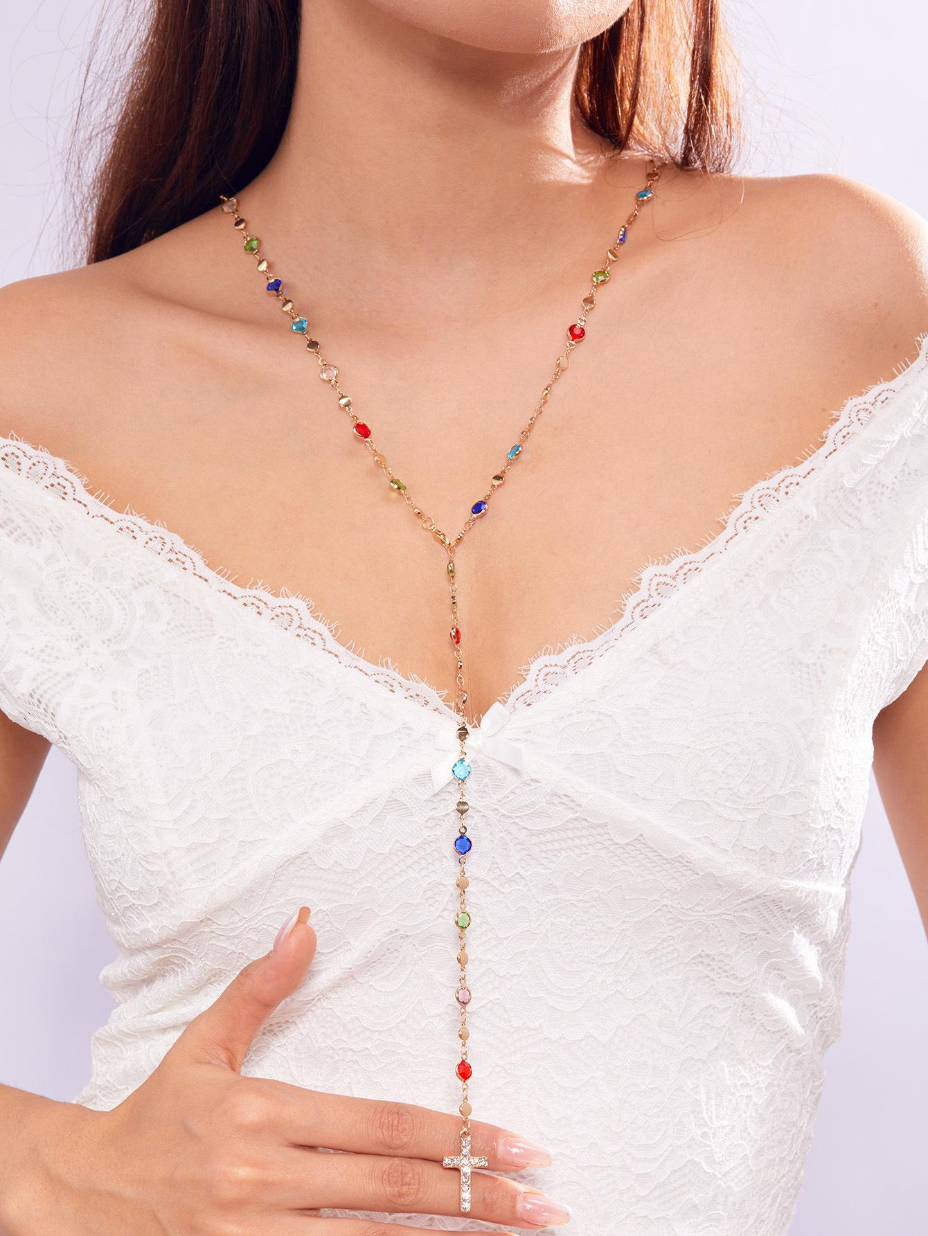 Joyería transfronteriza europea y americana temperamento color amor cruz collar de cadena en Y largo versátil borla cadena para suéter