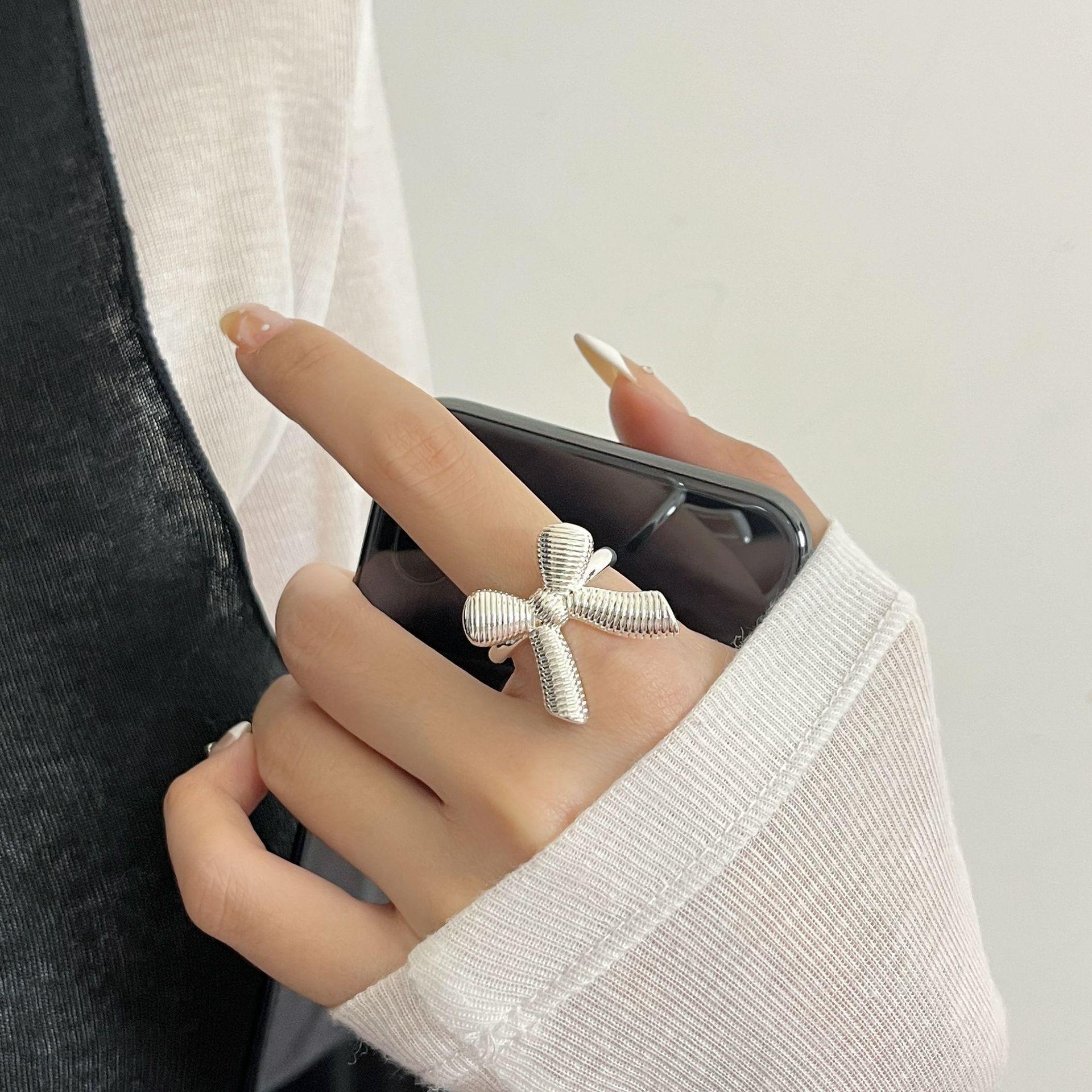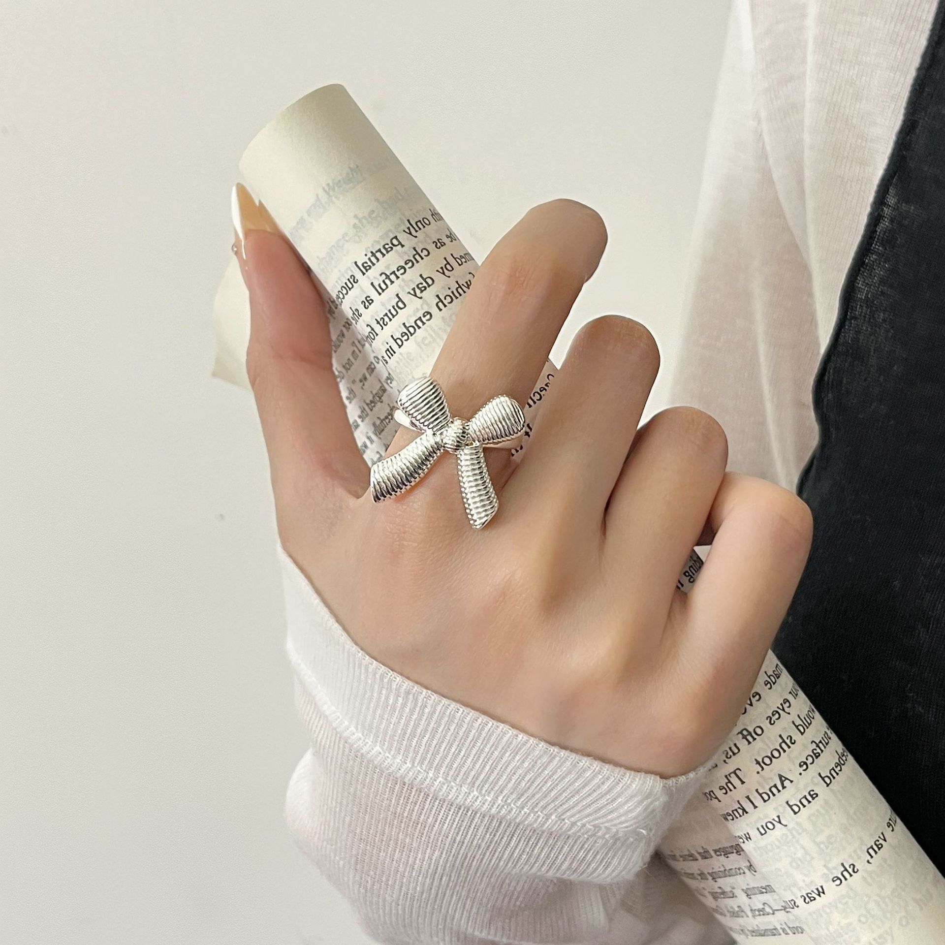 Anillo de Lazo Grande Textura Exquisita para Mujer Nicho de Alta Gama Lujo Ligero Versátil Personalizado Moda Nueva Joyería de Mano