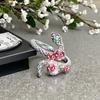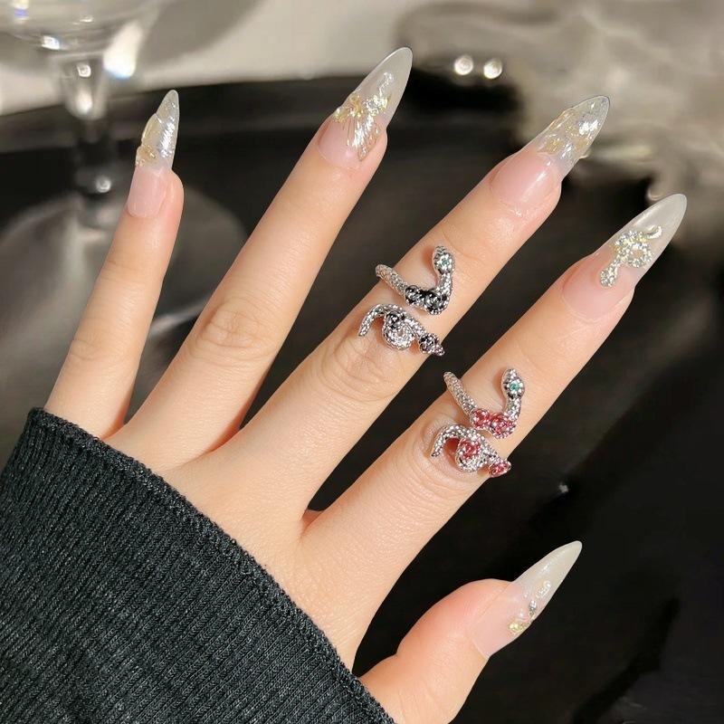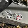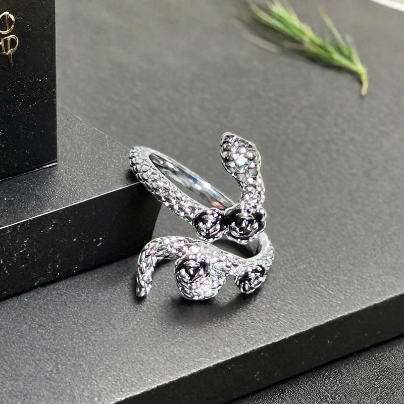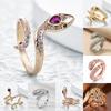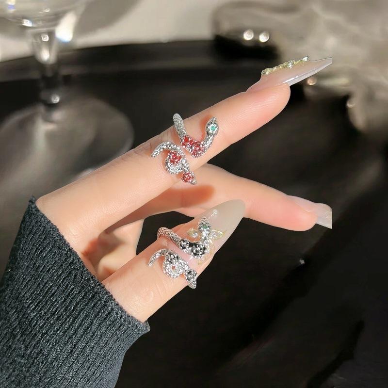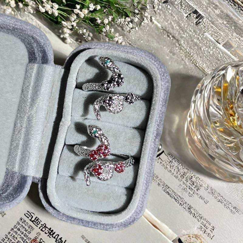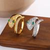Ojos Verdes Zircón Anillo Abierto Pequeña Serpiente Gota de Aceite Flor Rosa Retro Tridimensional Serpiente Enrollada Nicho Anillo Personalizado