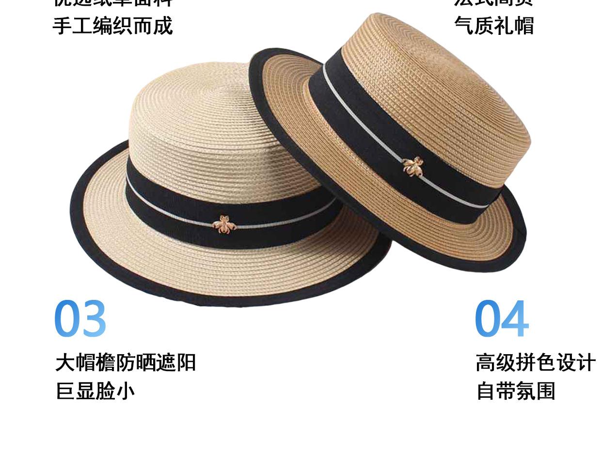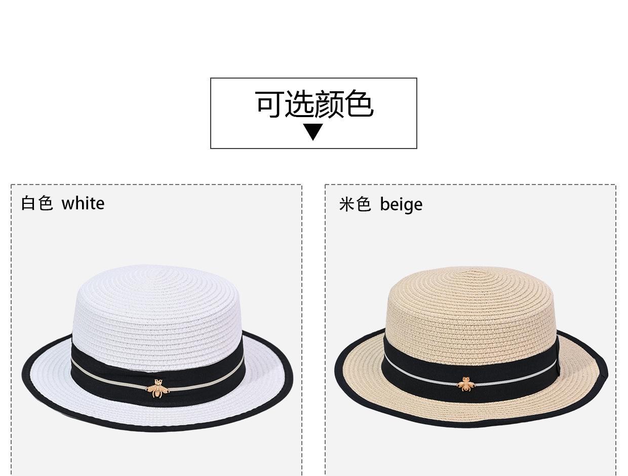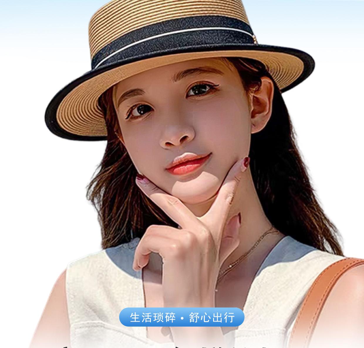 Sombrero de Verano para Mujer Estilo Coreano que Afina el Rostro Sombrero Plano Pequeño para Exterior Sombrero de Paja con Protección Solar Vacaciones de Playa Sombrero para el Sol de la Costa