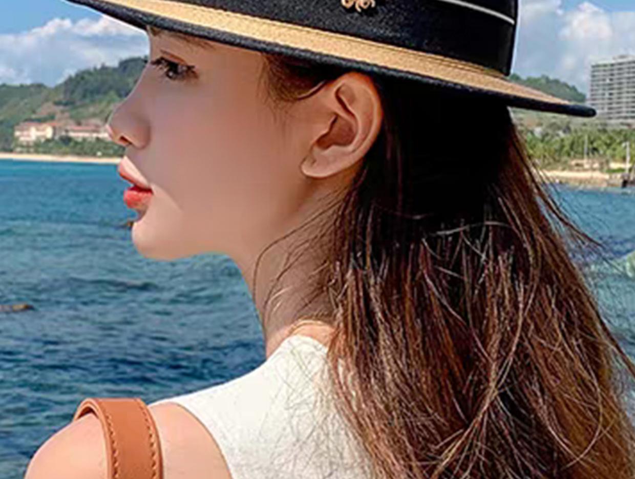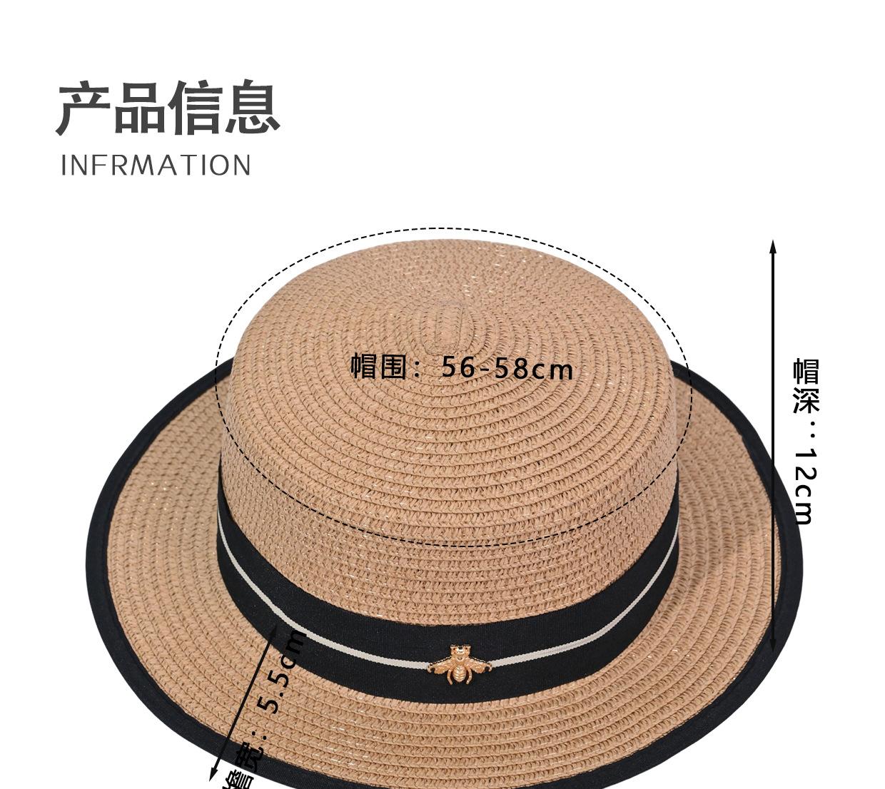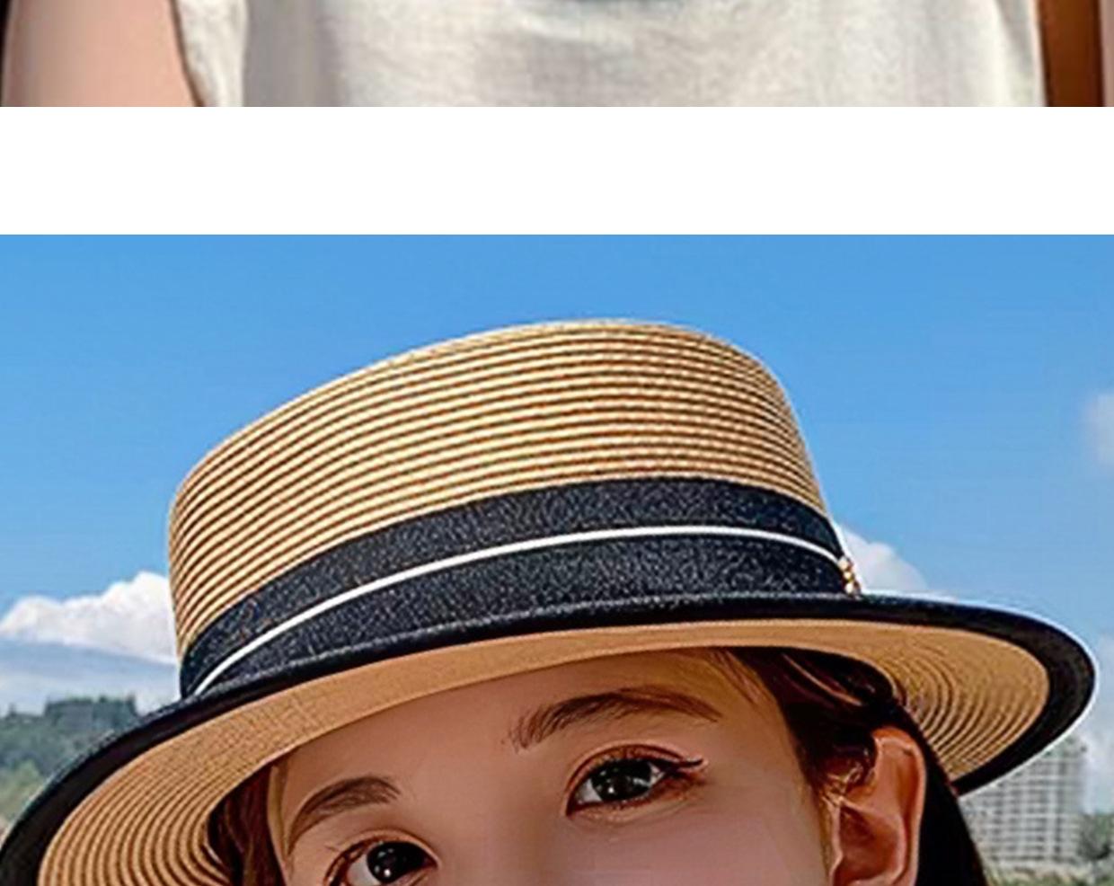 Sombrero de Verano para Mujer Estilo Coreano que Afina el Rostro Sombrero Plano Pequeño para Exterior Sombrero de Paja con Protección Solar Vacaciones de Playa Sombrero para el Sol de la Costa