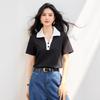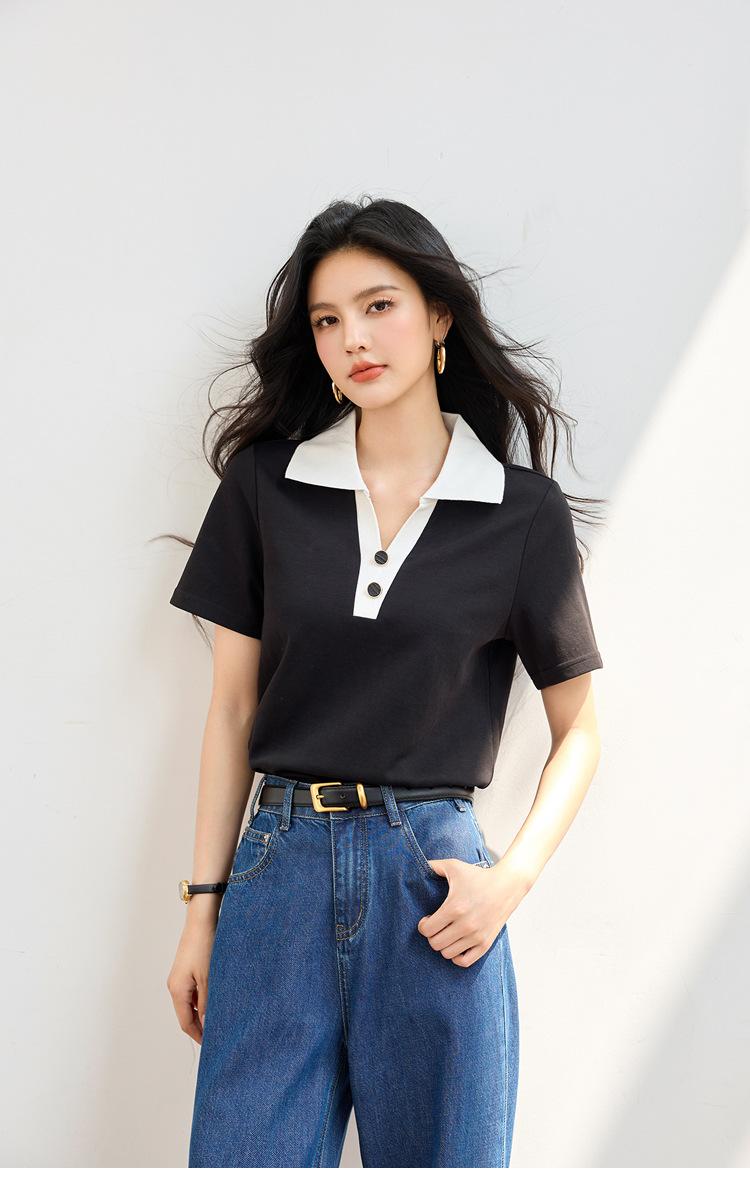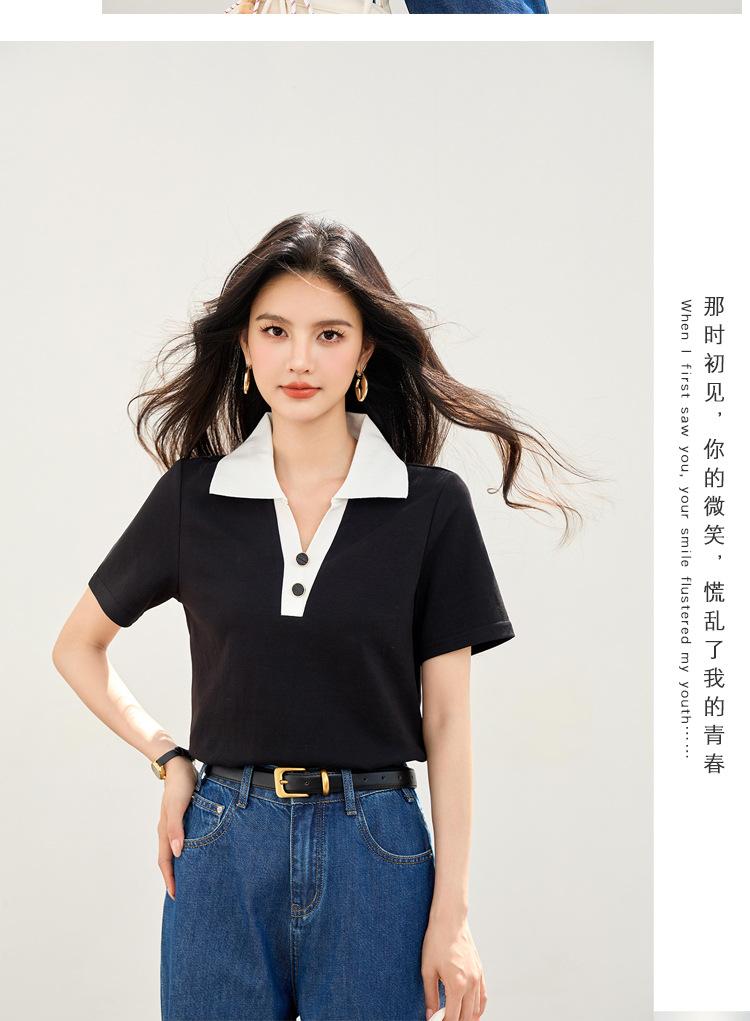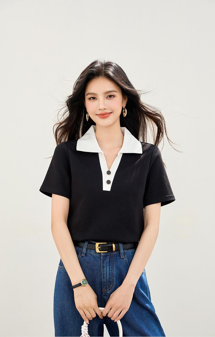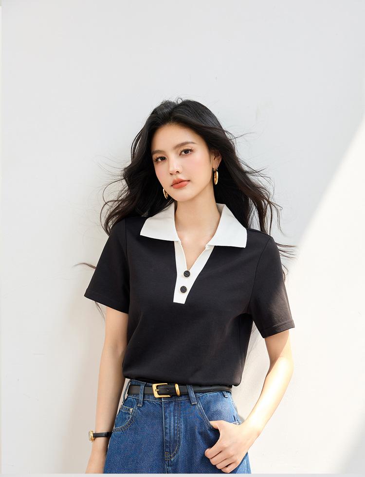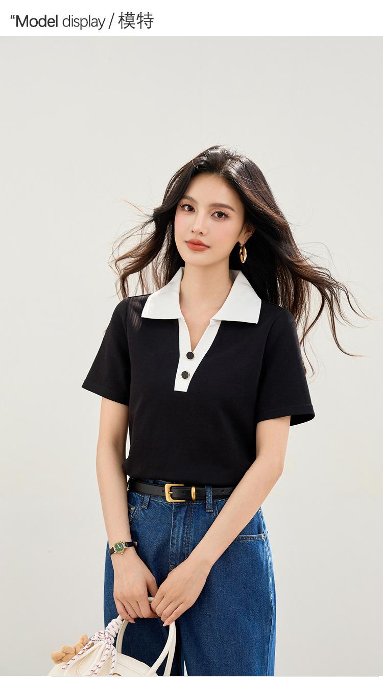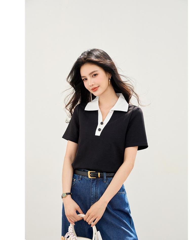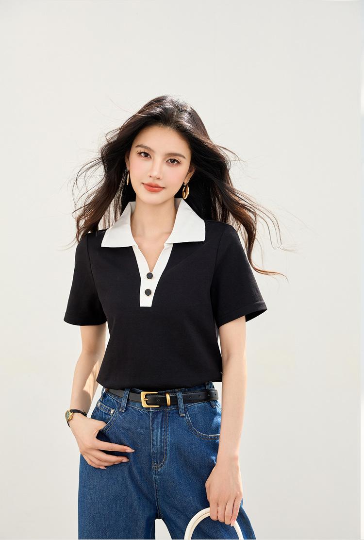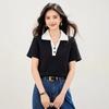 2025 Nuevo Verano Estilo Coreano Ropa de Trabajo Elegante Solapa Rayas Camiseta de Manga Corta para Mujer Casual Cuello Polo Top Hombro Derecho