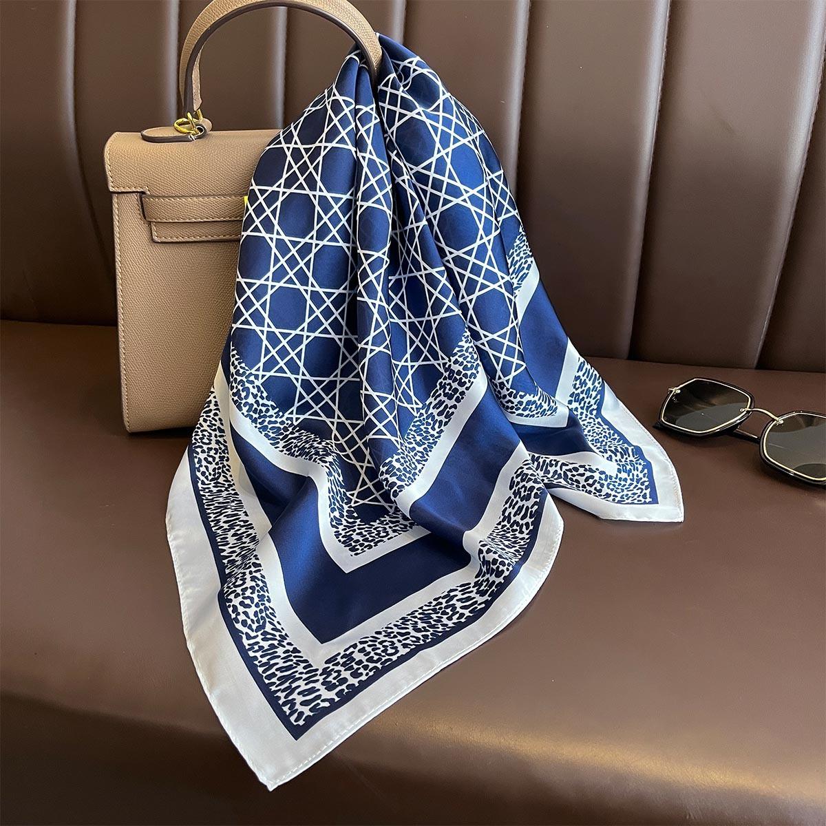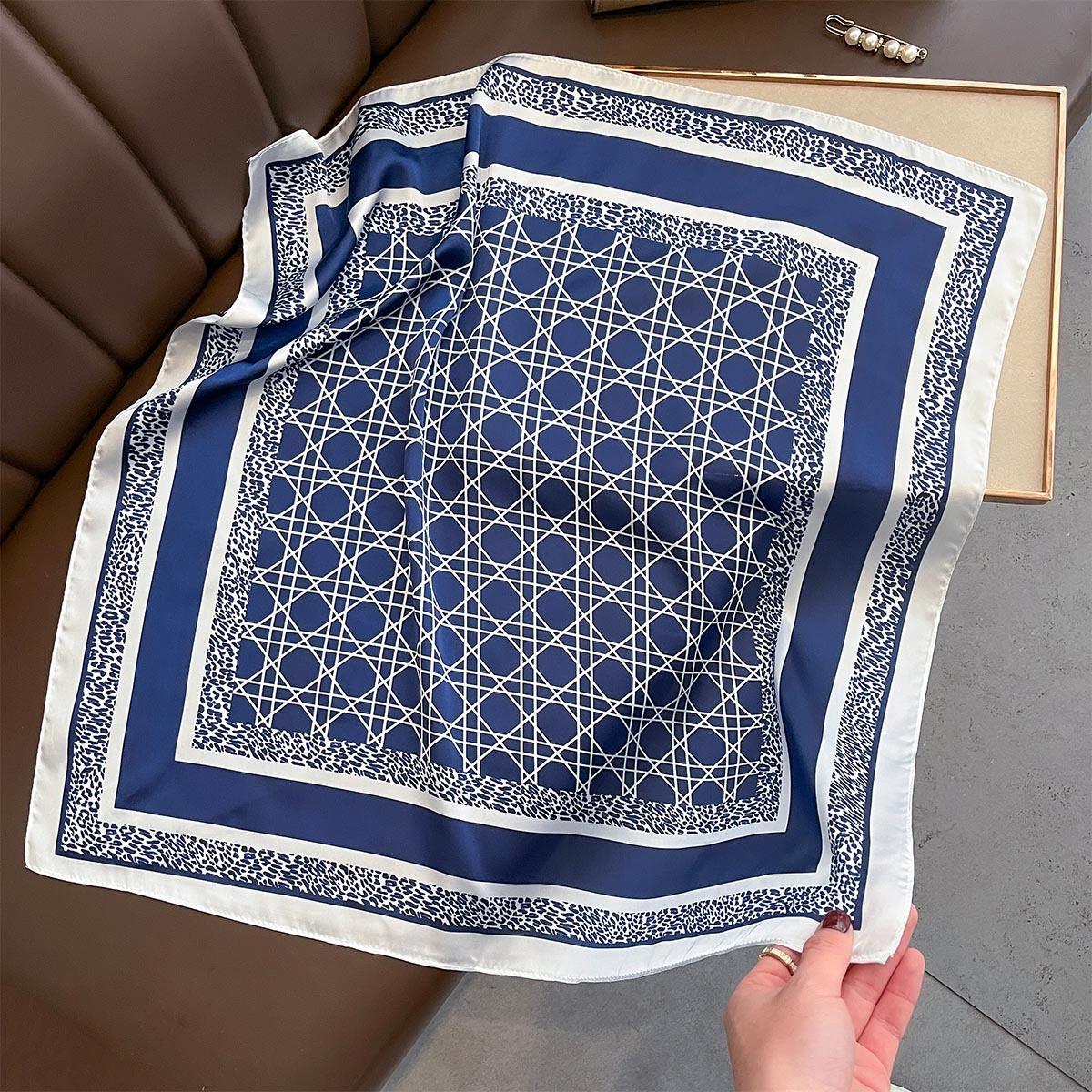 Pañuelo Cuadrado Pequeño de Líneas Geométricas de 70cm Pañuelo de Seda Pañuelo Estampado para Protección del Cuello Pañuelo Profesional Combinable Pañuelo