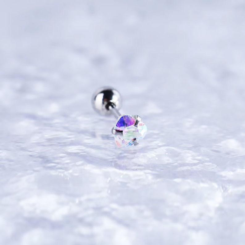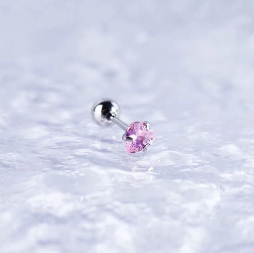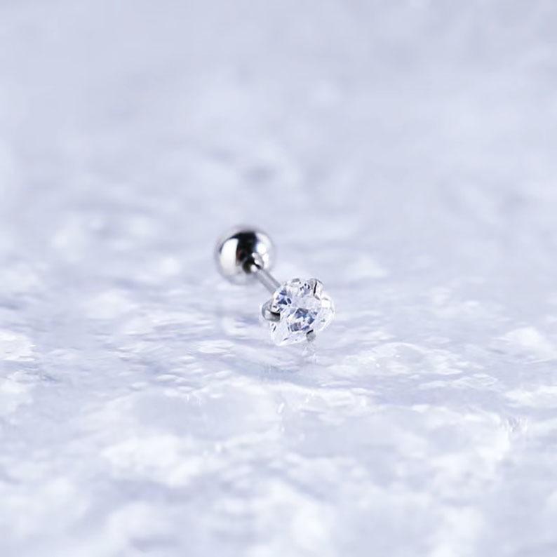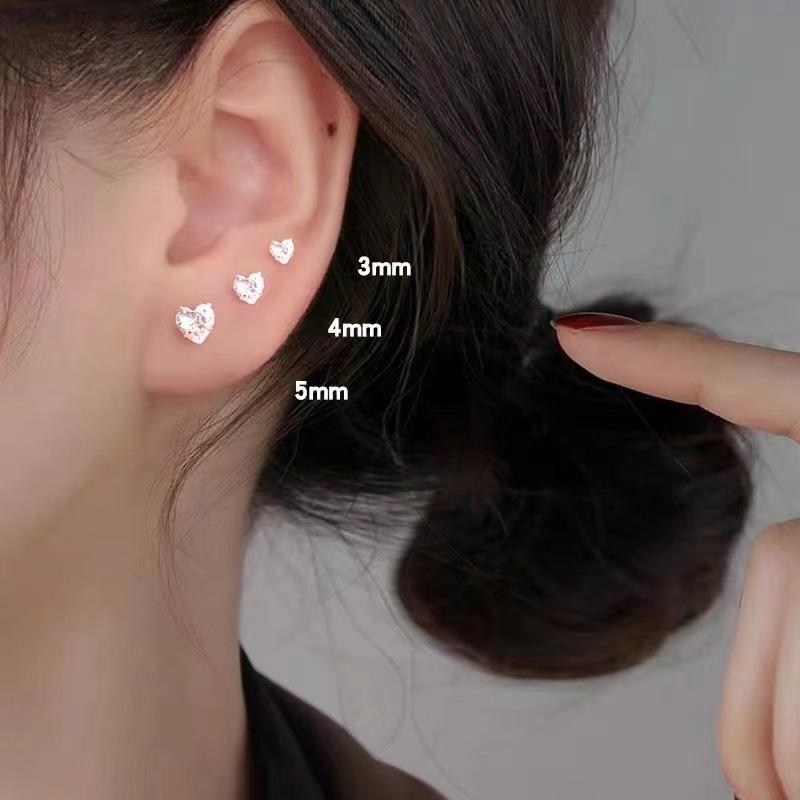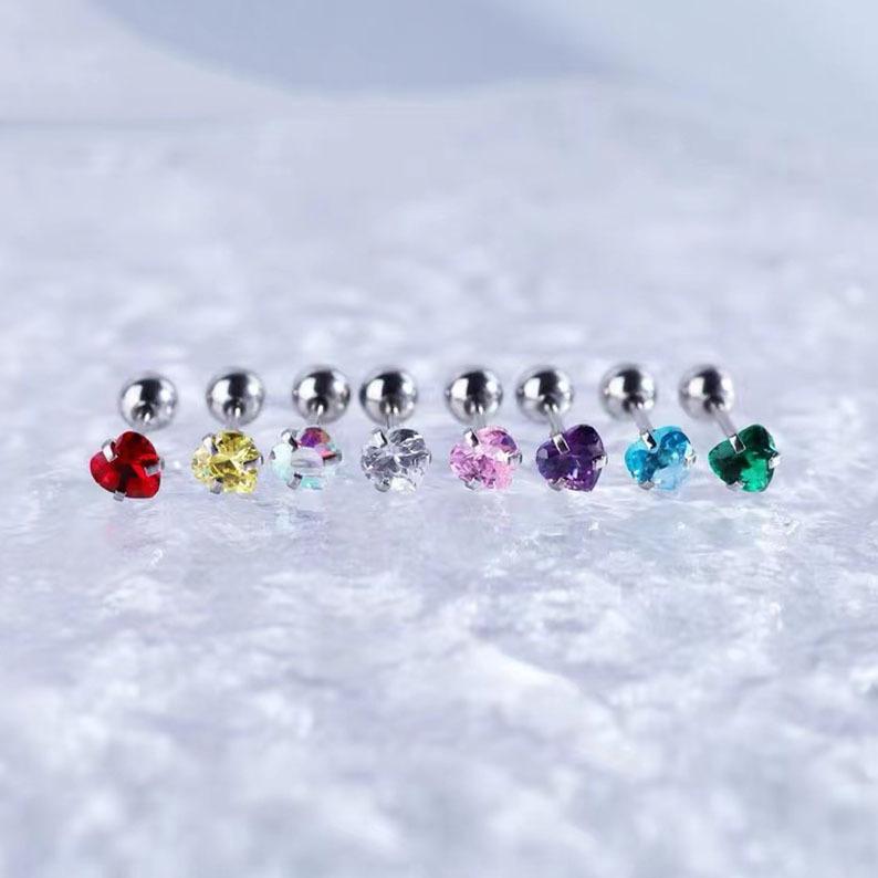 Aretes de Acero Inoxidable Sencillos Europeos y Americanos de Moda con Corazón en Forma de Corazón de Zircón de Rosca Pequeños para Perforación de Oreja