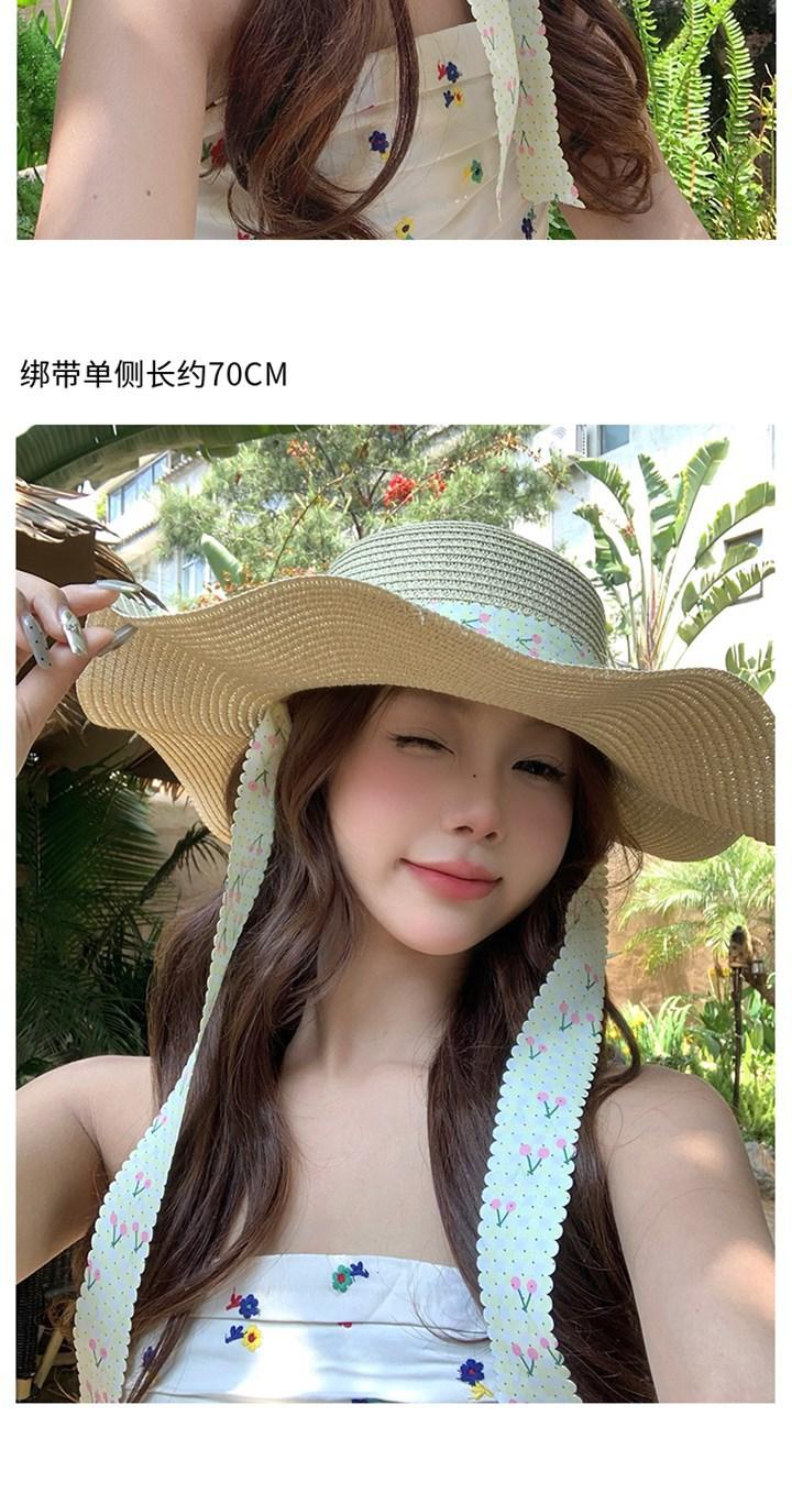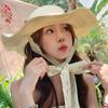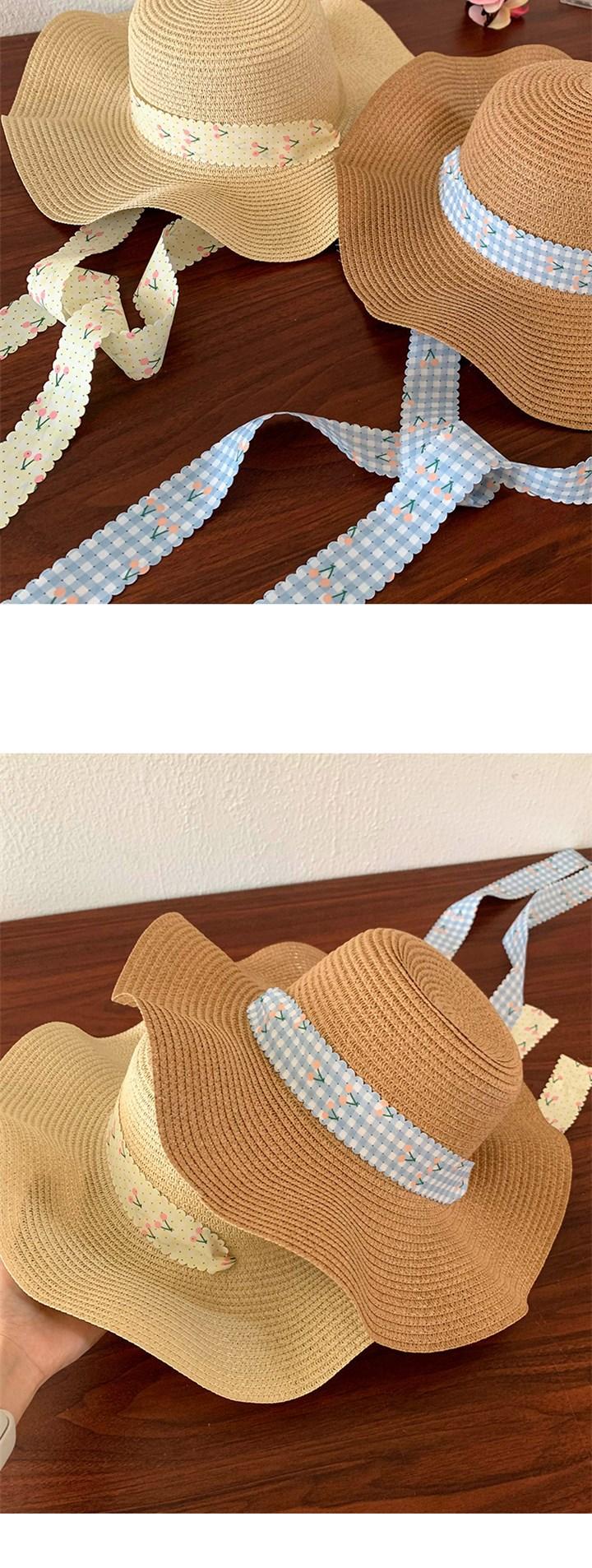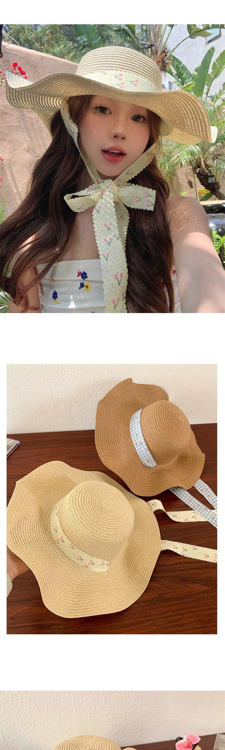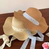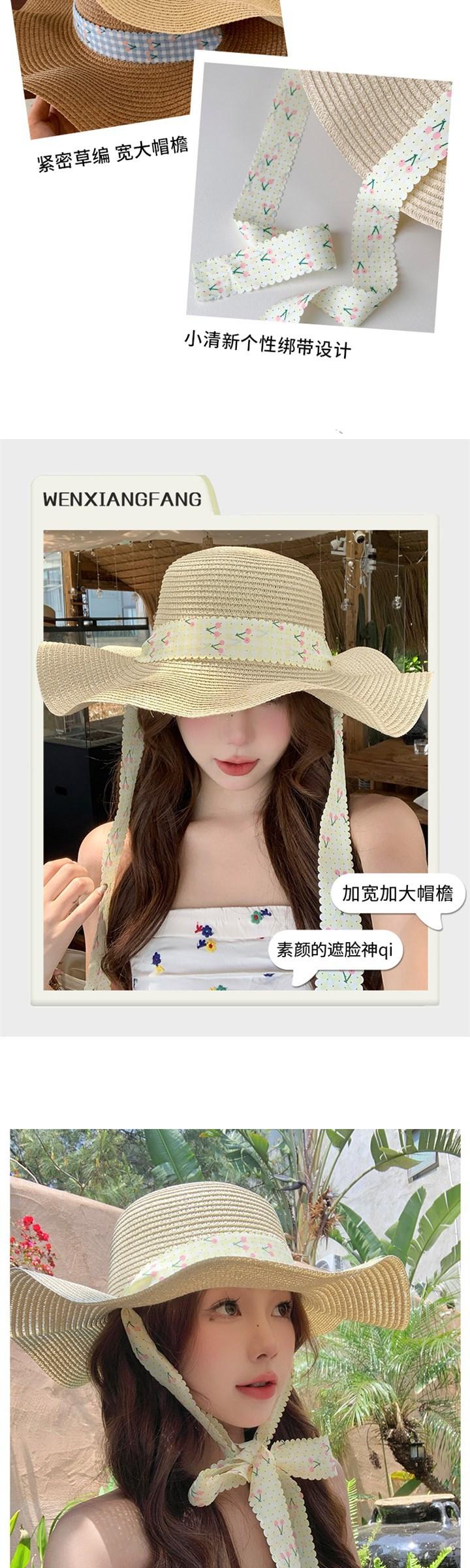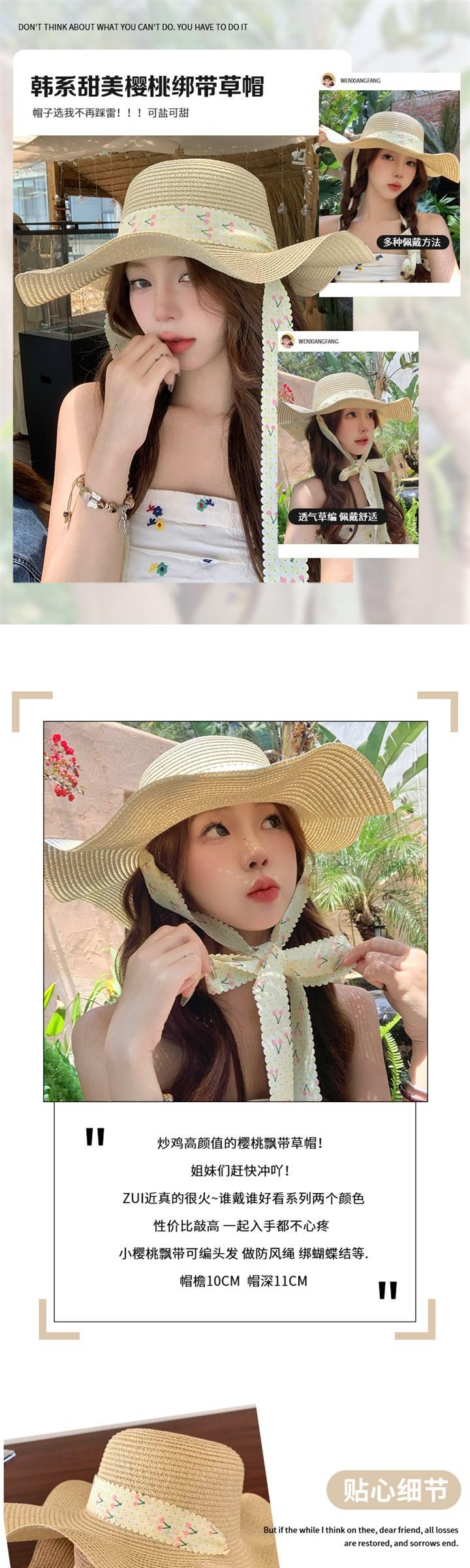 Sombrero de Paja Tejida con Cinta Recortada de Cereza Francesa para Mujer Verano Vacaciones Junto al Mar Protección Solar Ala Ancha Sombrero para el Sol