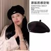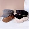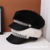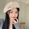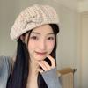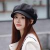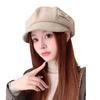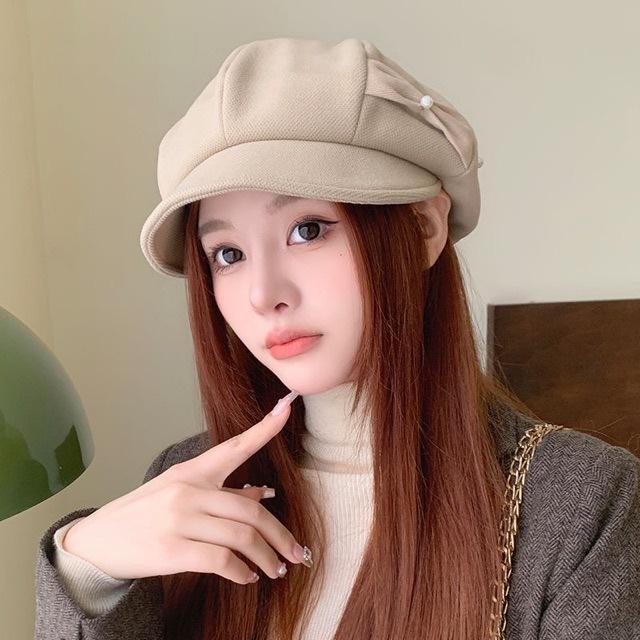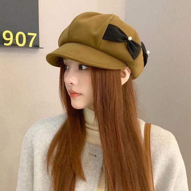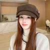 Boina marrón con visera para mujer otoño e invierno estilo coreano moderna versátil casual lazo de perlas sombrero octogonal con cara pequeña