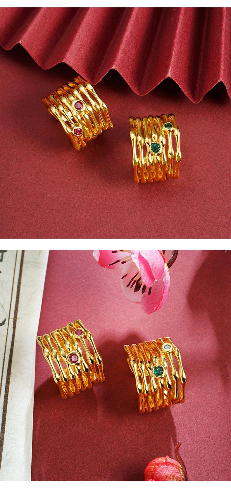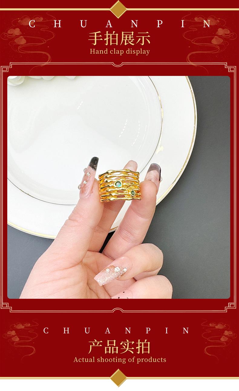 Anillo nuevo de oro arena vietnamita, anillo de bambú versátil multicapa retro con incrustaciones de diamantes, estilo pareja, suministro de joyería de mano transfronteriza