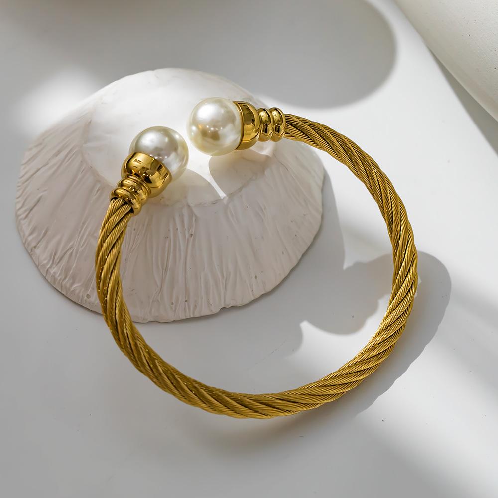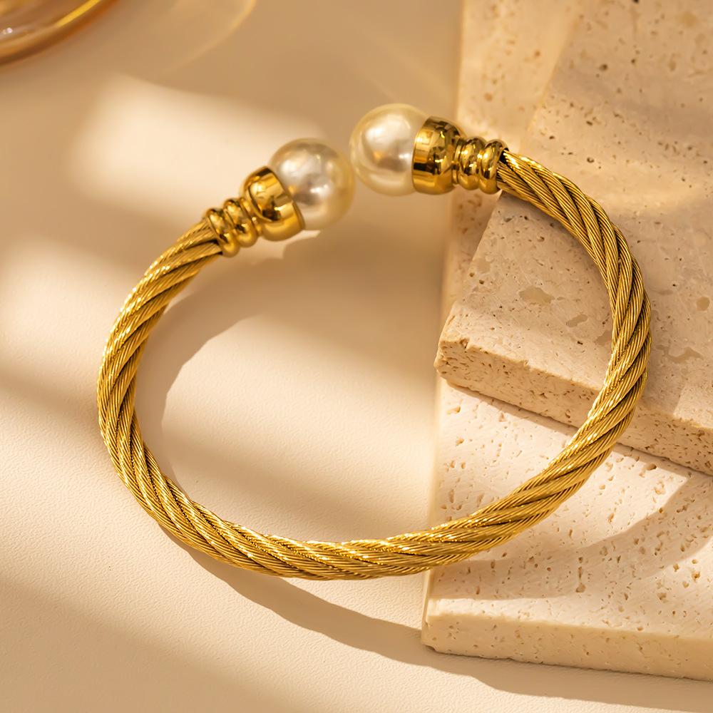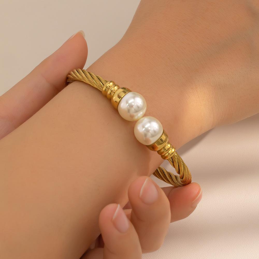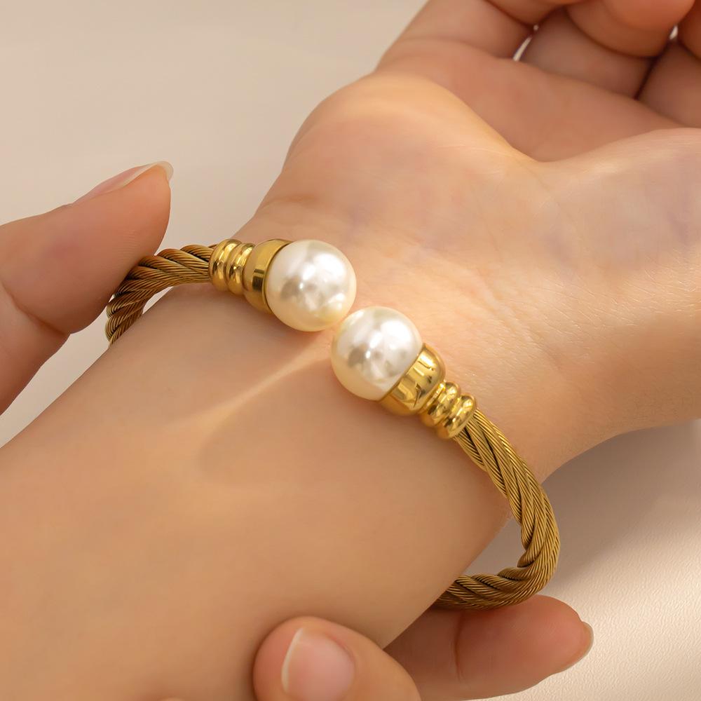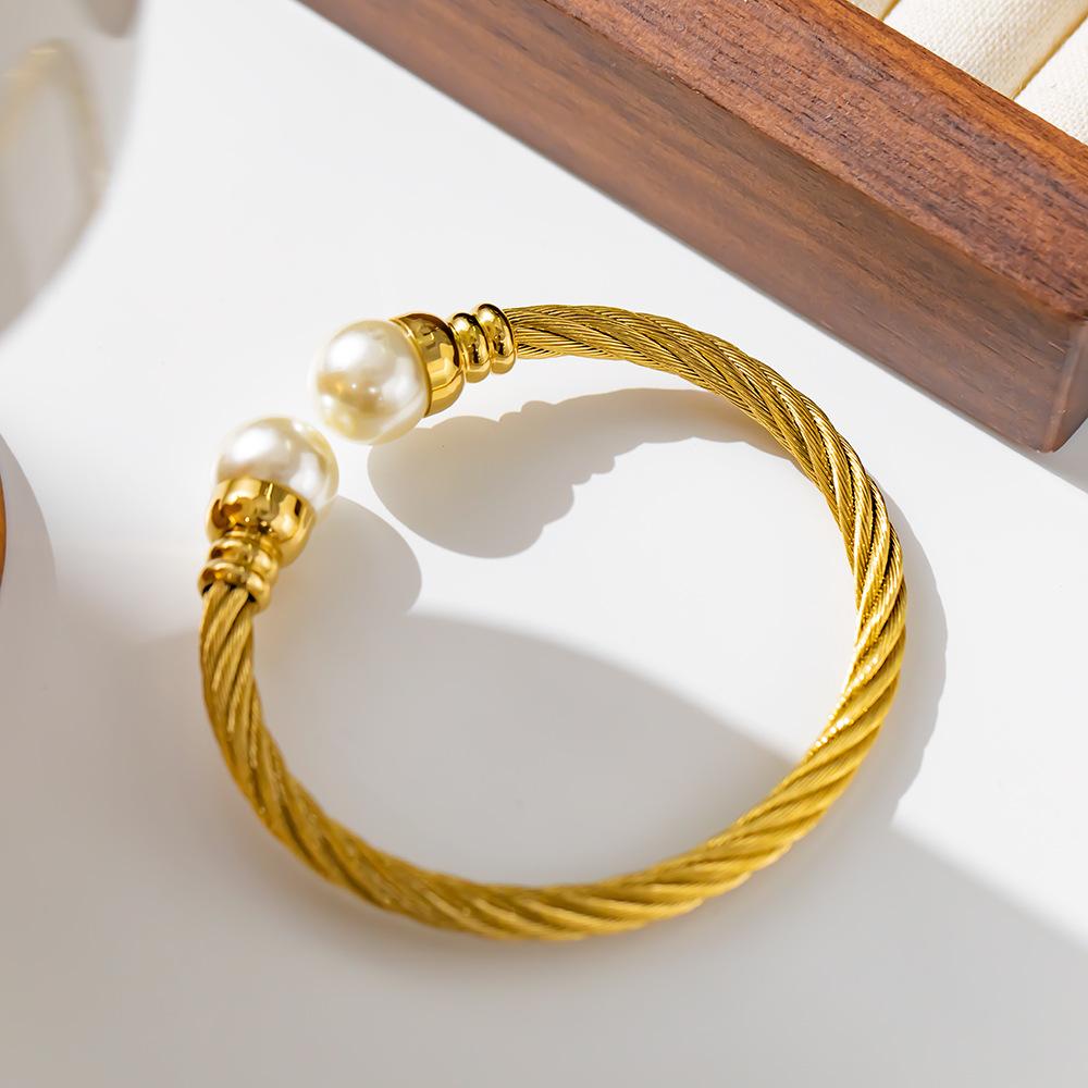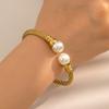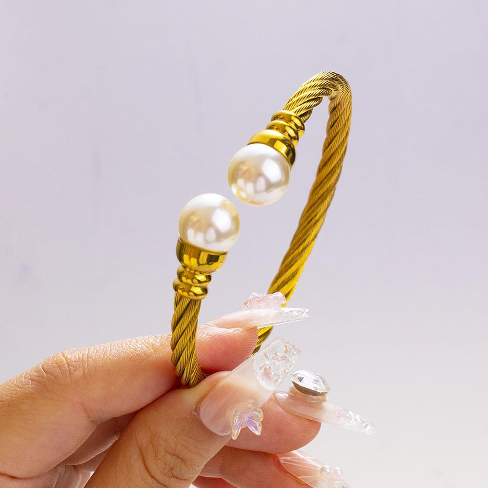 Europa y Estados Unidos moda transfronteriza superventas lujo ligero incrustado perla alambre de acero pulsera Joker apertura pulsera de moda simple al por mayor