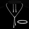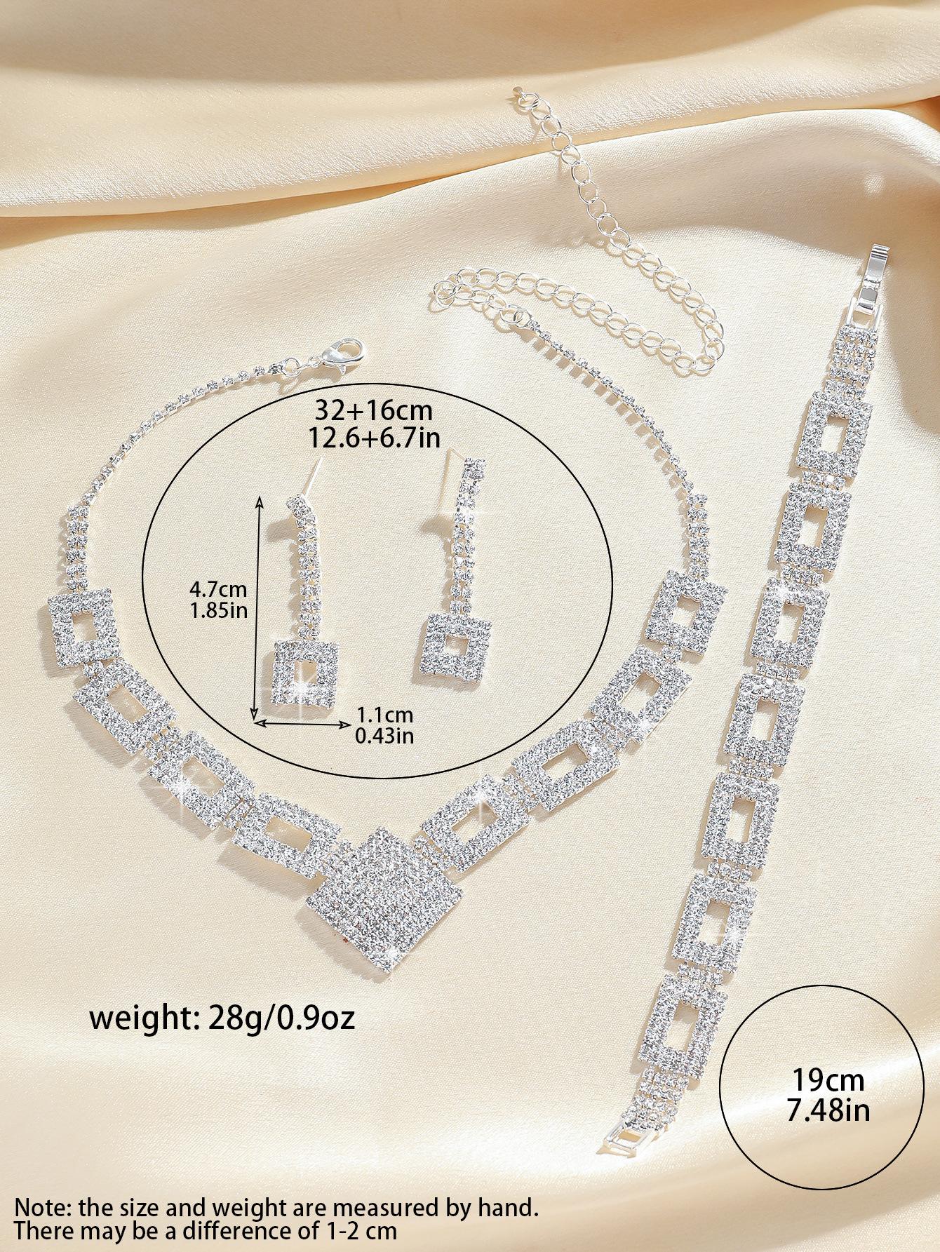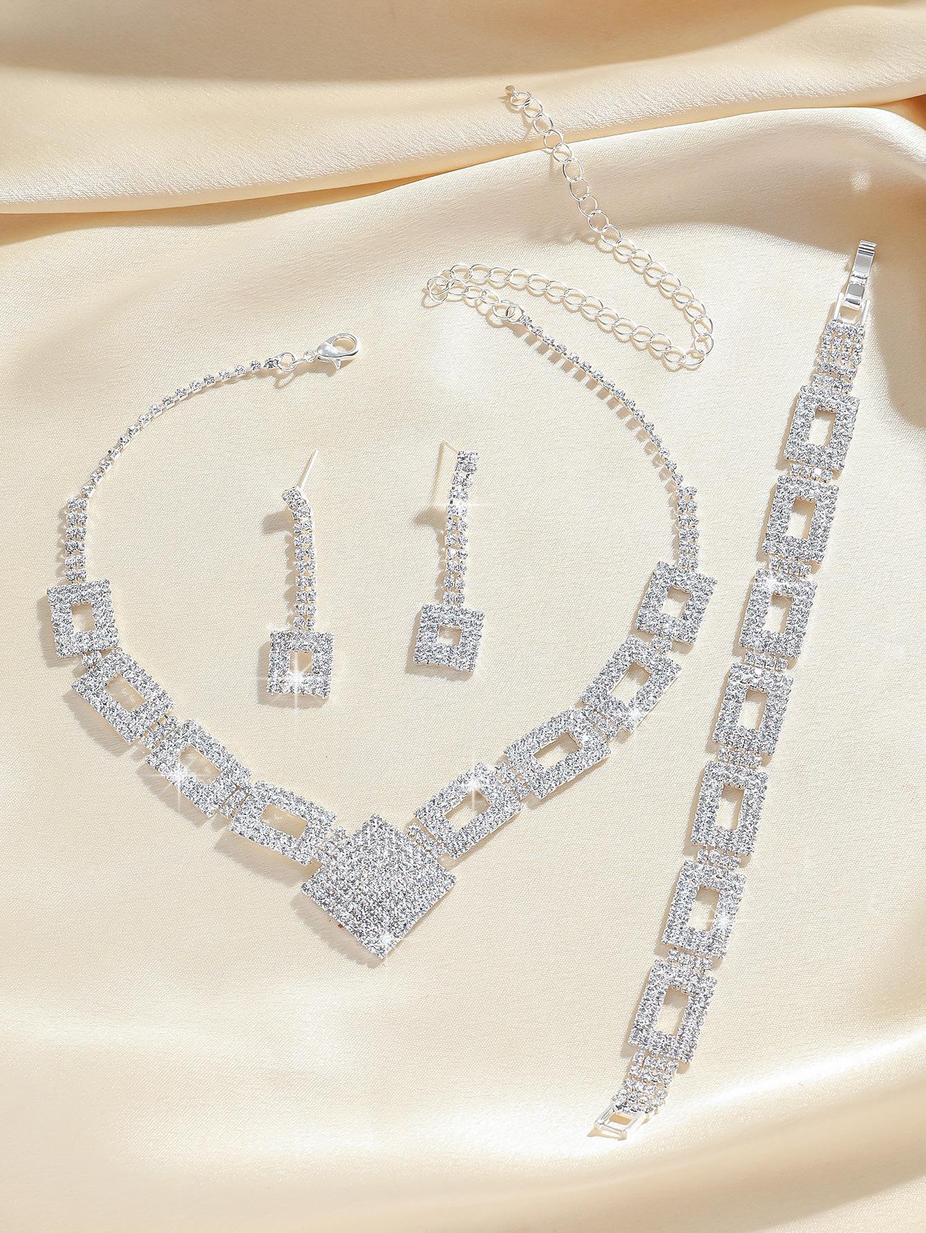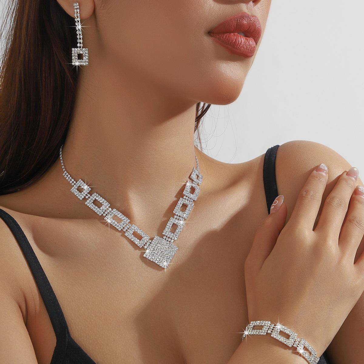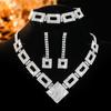 Joyería de Moda Popular Lujo Pedrería Geométrico Cuadrado Aretes Pulsera Collar Juego de 3 Piezas Joyería Nupcial