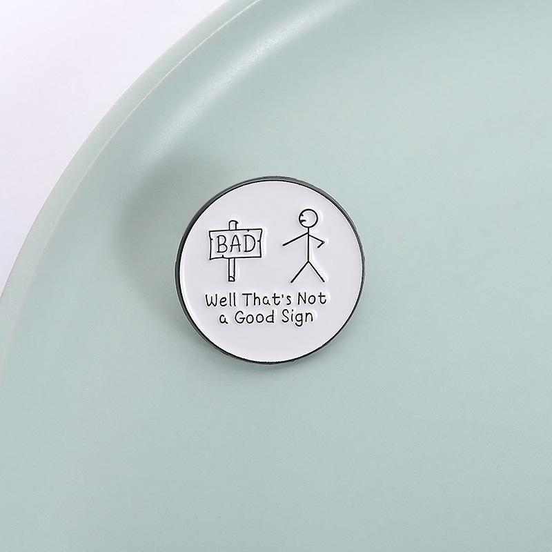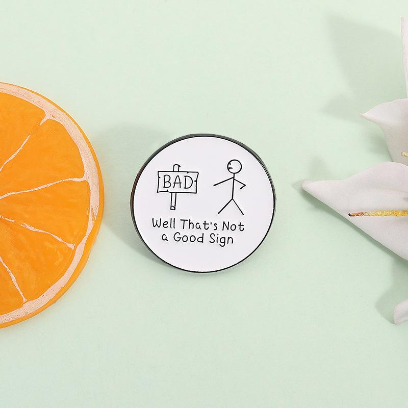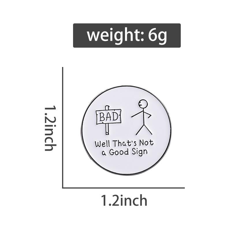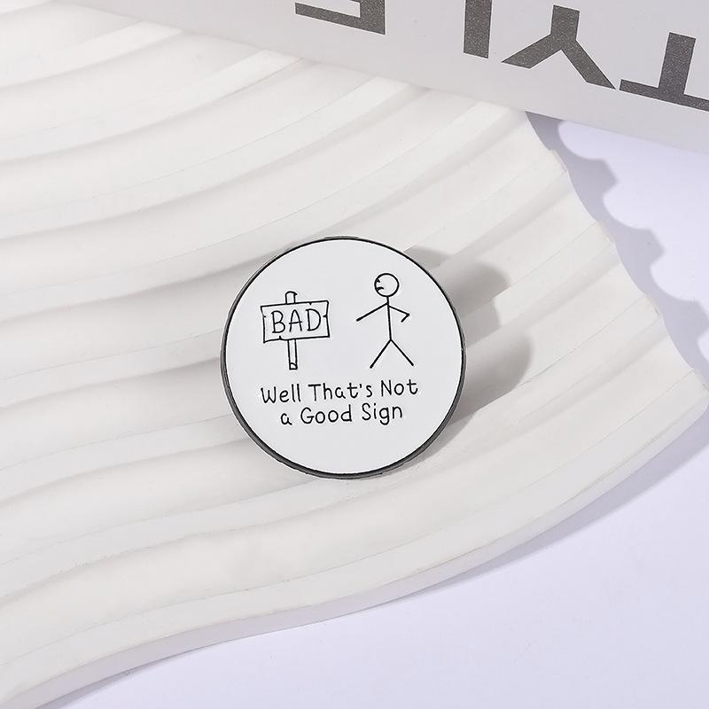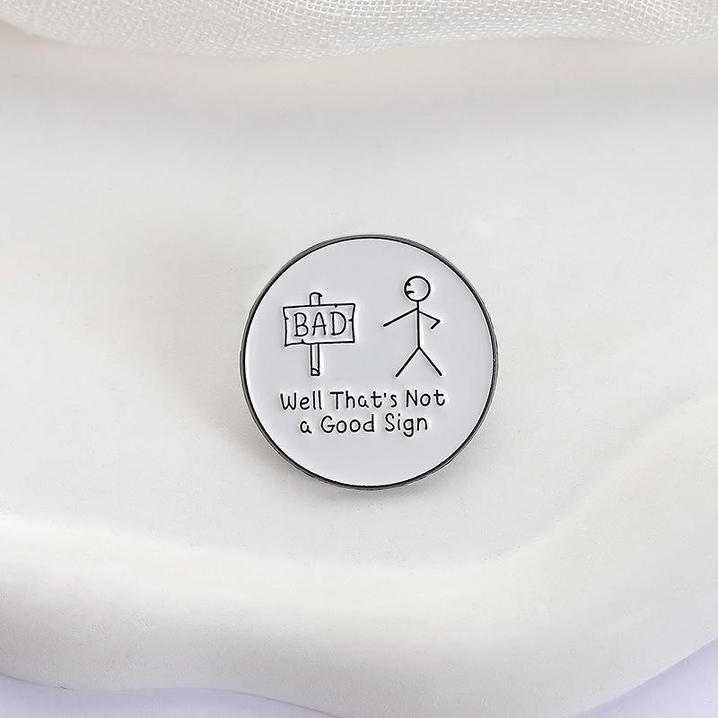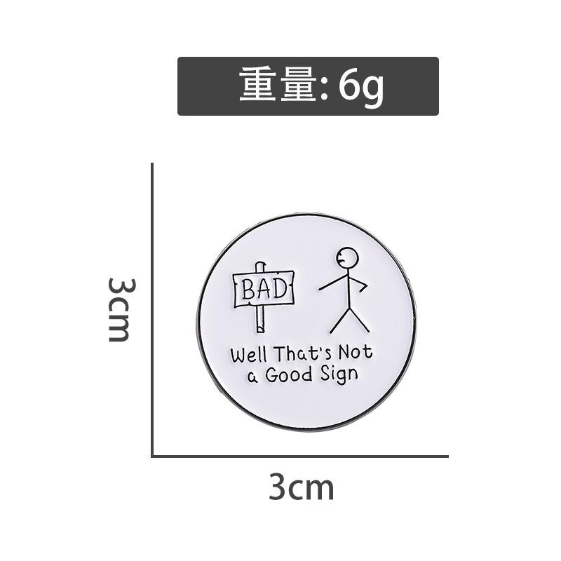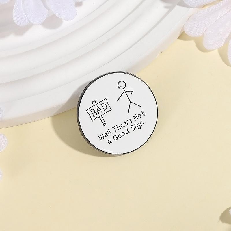 Exquisito Pin Redondo Versátil Diseño Transfronterizo Señal de Advertencia de Personita Linda Estilo de Frase Corta en Inglés Broche de Alta Gama