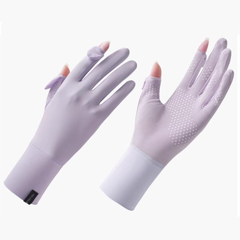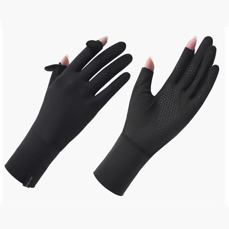 Guantes Procesados de Protección Solar para Mujer, Anti-Uv para Conducir, Sin Dedos con Visera Solar, Seda de Hielo, Estilo Delgado de Verano, Personalizados para Ciclismo y Vehículos Eléctricos
