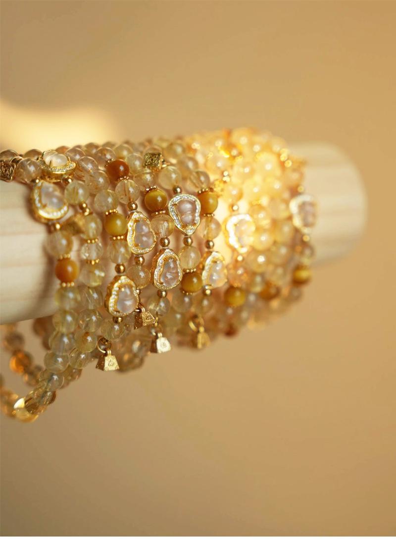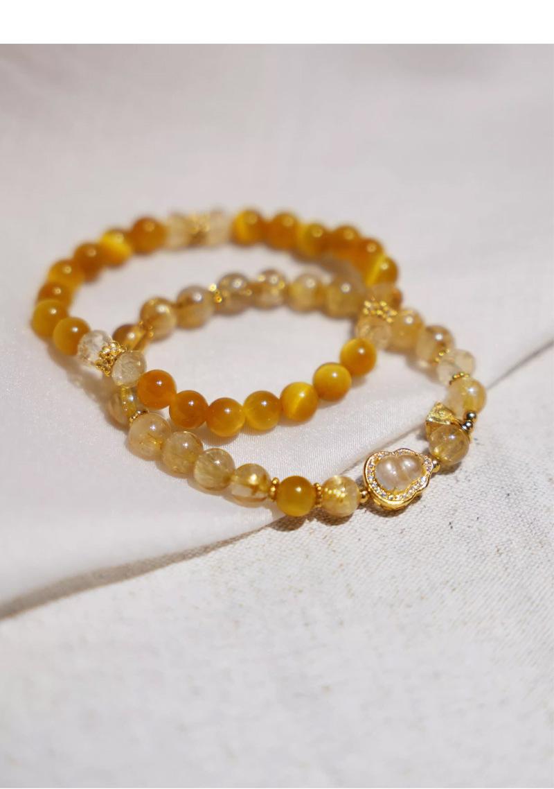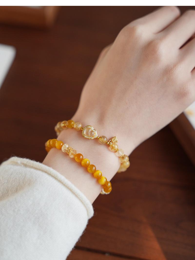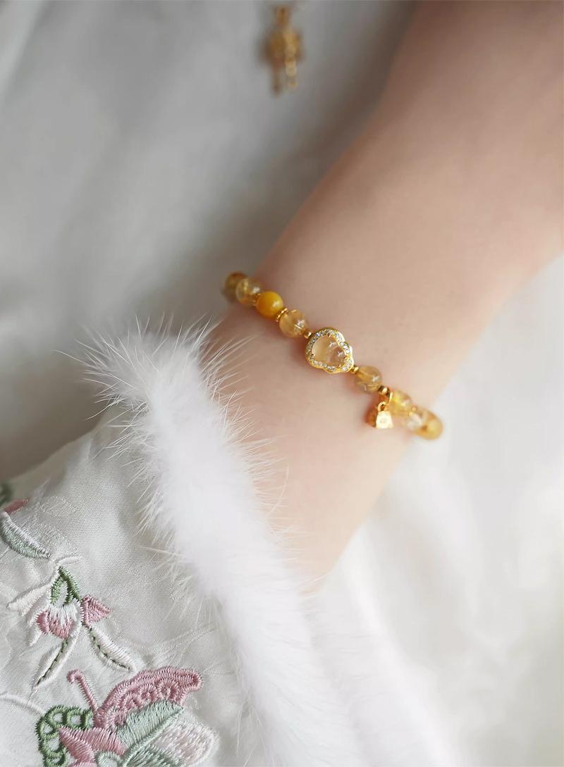 Pulsera de cristal de torre amarilla natural para mujer, pulsera de cristal de cabello dorado, lujo ligero, alto sentido, con cuentas, calabaza, joyería de cristal amarillo, venta al por mayor