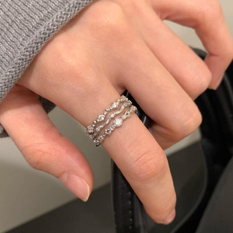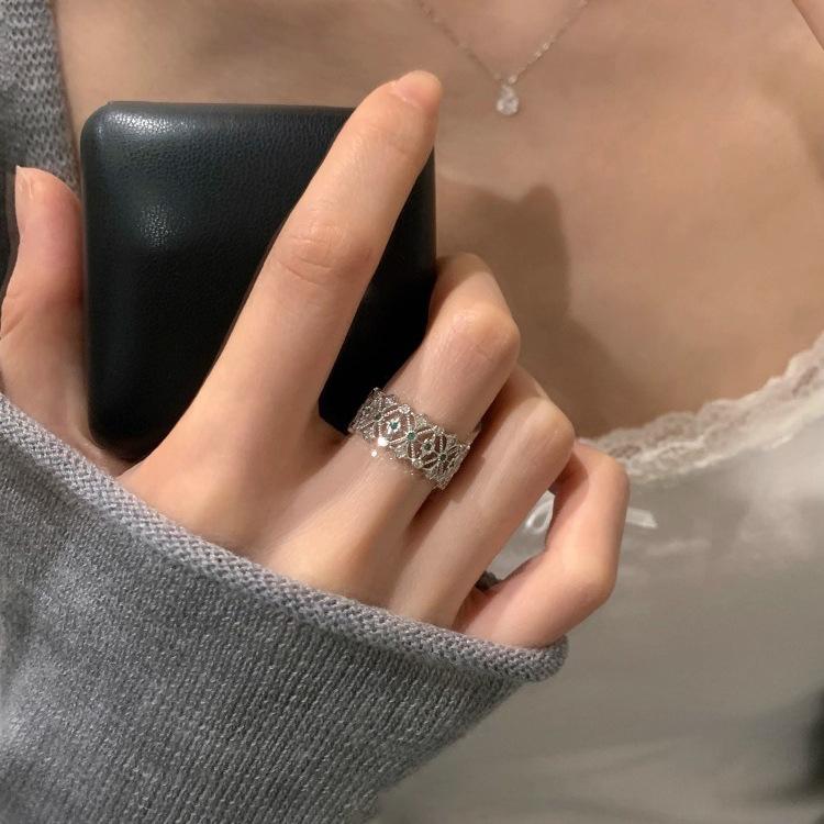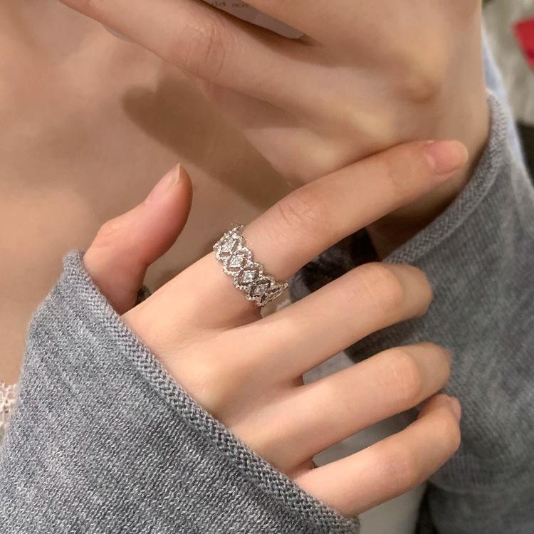 Anillo de Diamantes de Joyería de Lujo Ligero Estilo Coreano para Mujer, Diseño de Nicho, Elegante y de Alta Gama, Anillo Versátil para el Dedo Índice con Abertura Ajustable