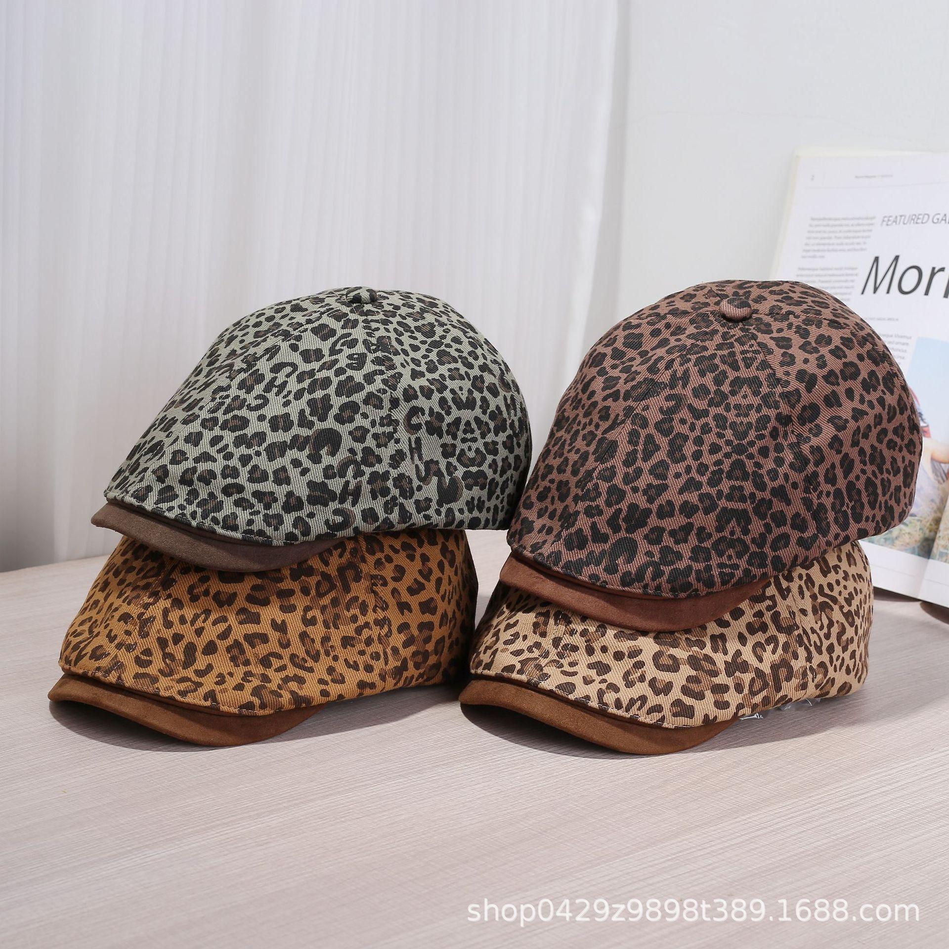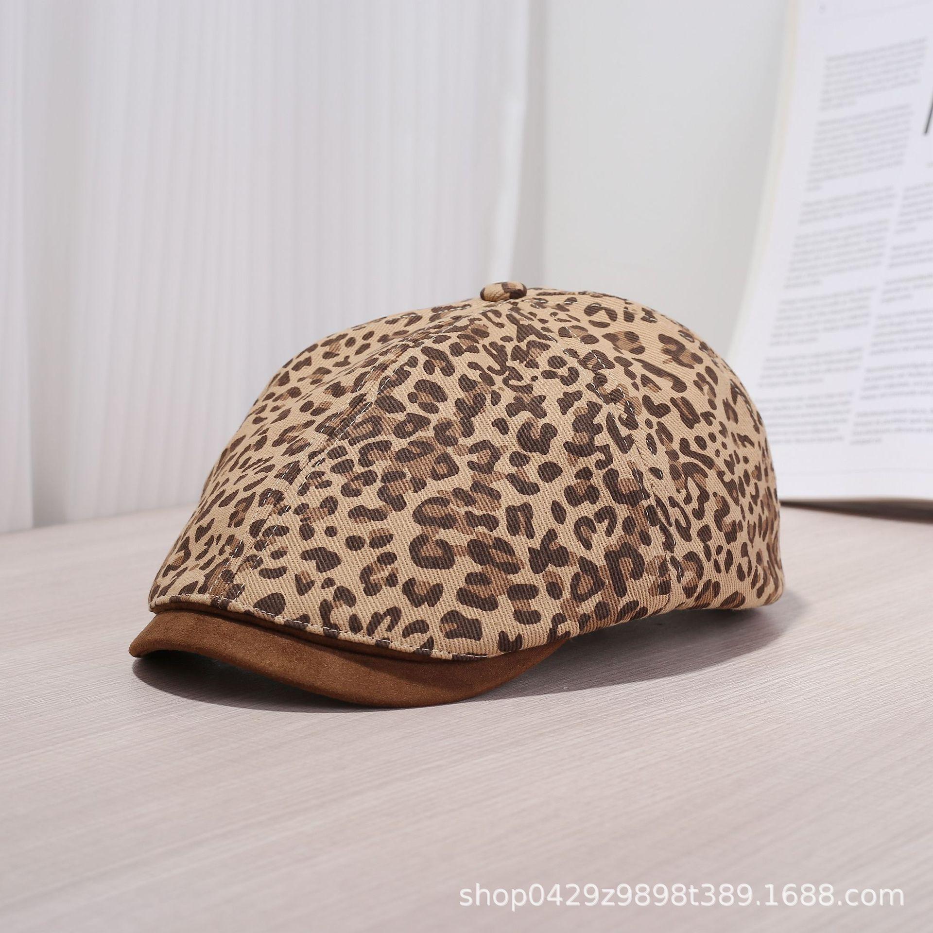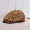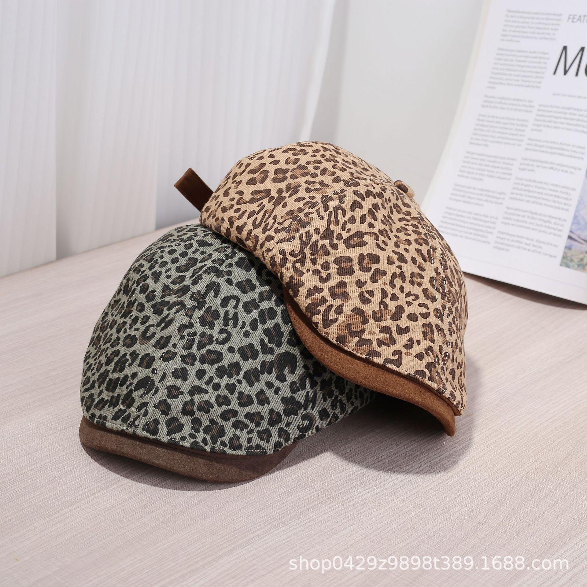 Gorra de estilo coreano nuevo retro con estampado de leopardo para mujer, boina versátil de temperamento veraniego, boina de lengua de pato de chica hot de tendencia