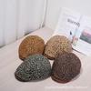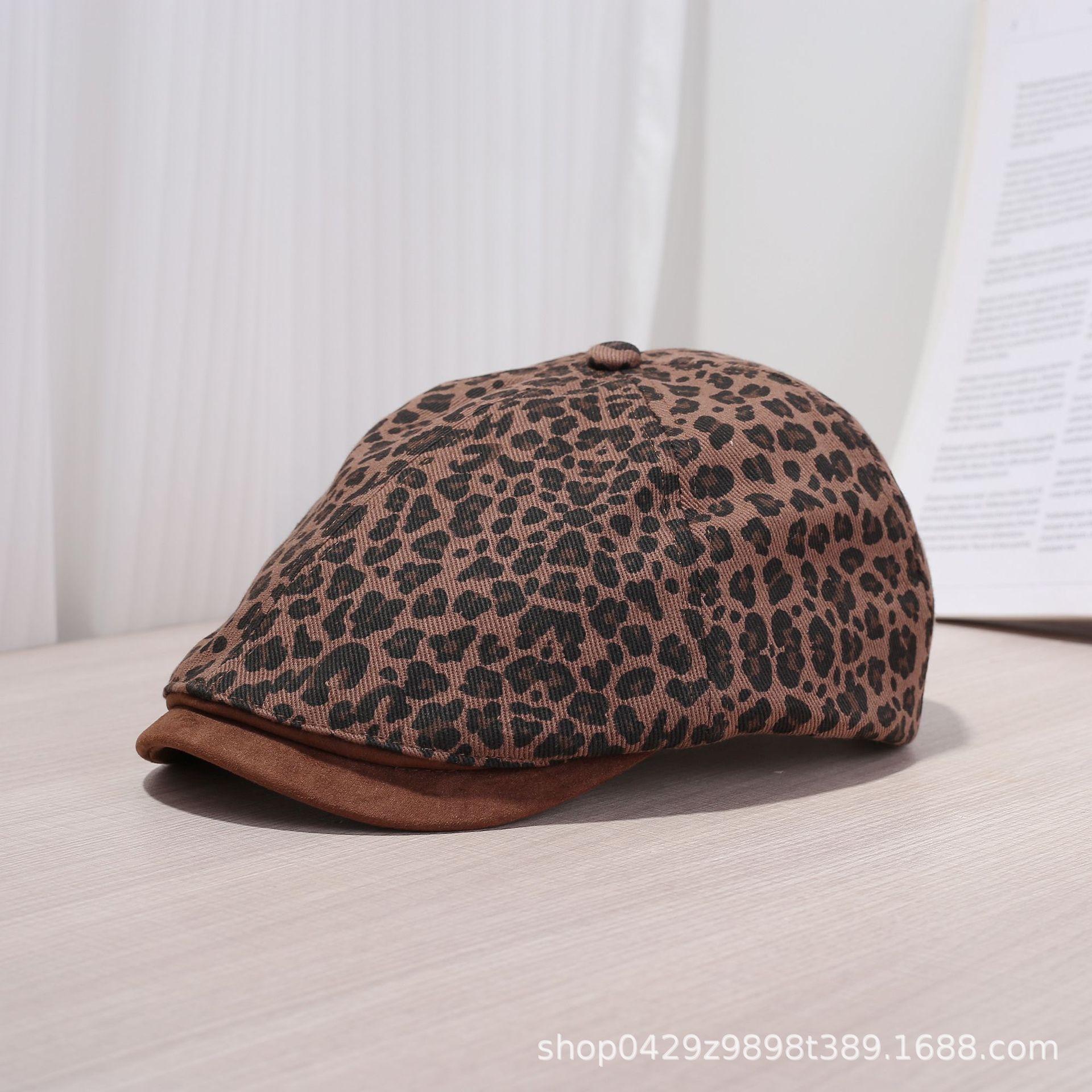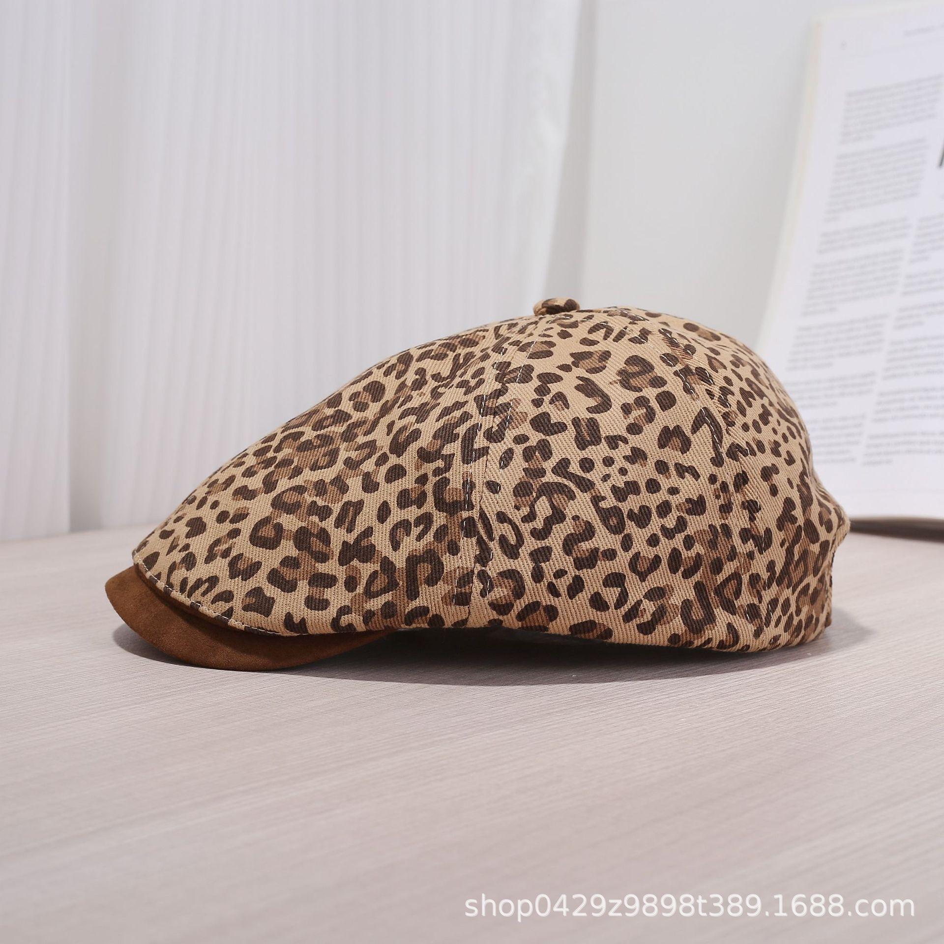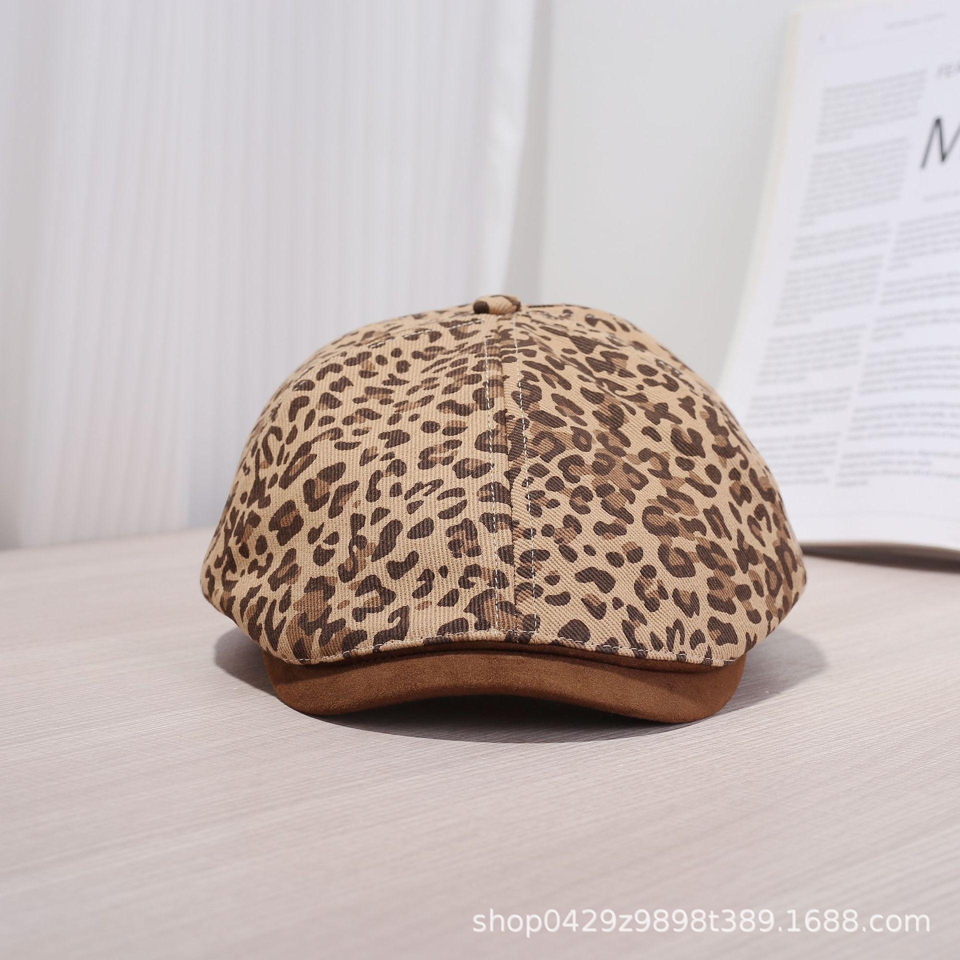 Gorra de estilo coreano nuevo retro con estampado de leopardo para mujer, boina versátil de temperamento veraniego, boina de lengua de pato de chica hot de tendencia