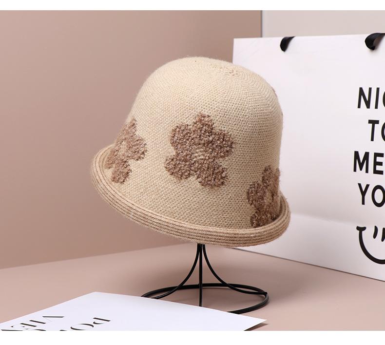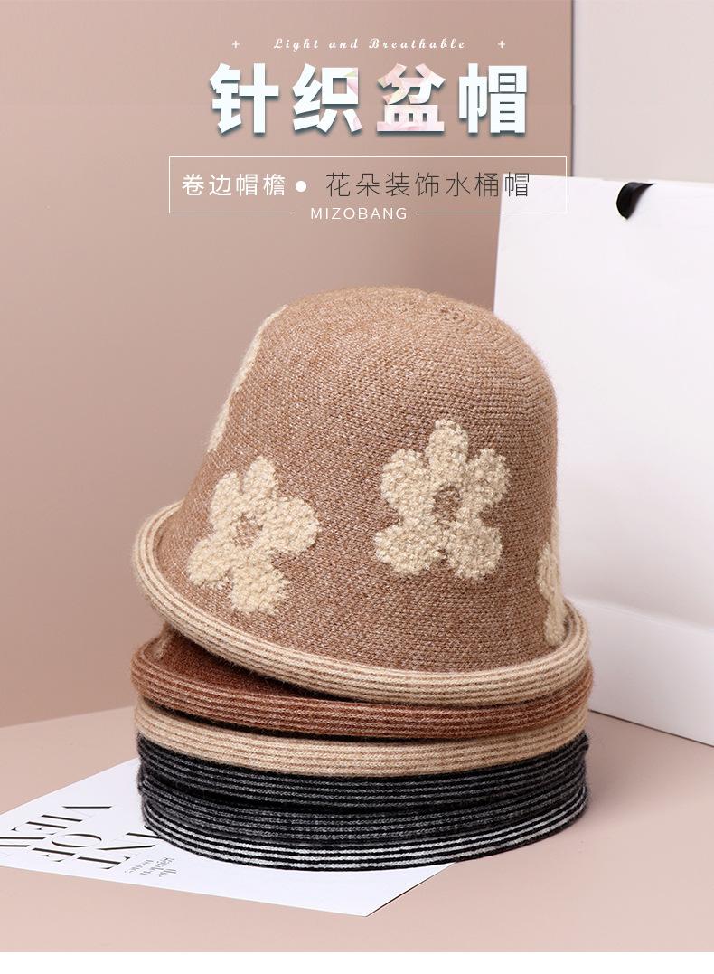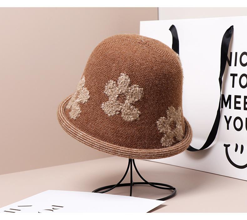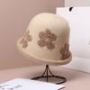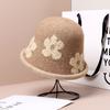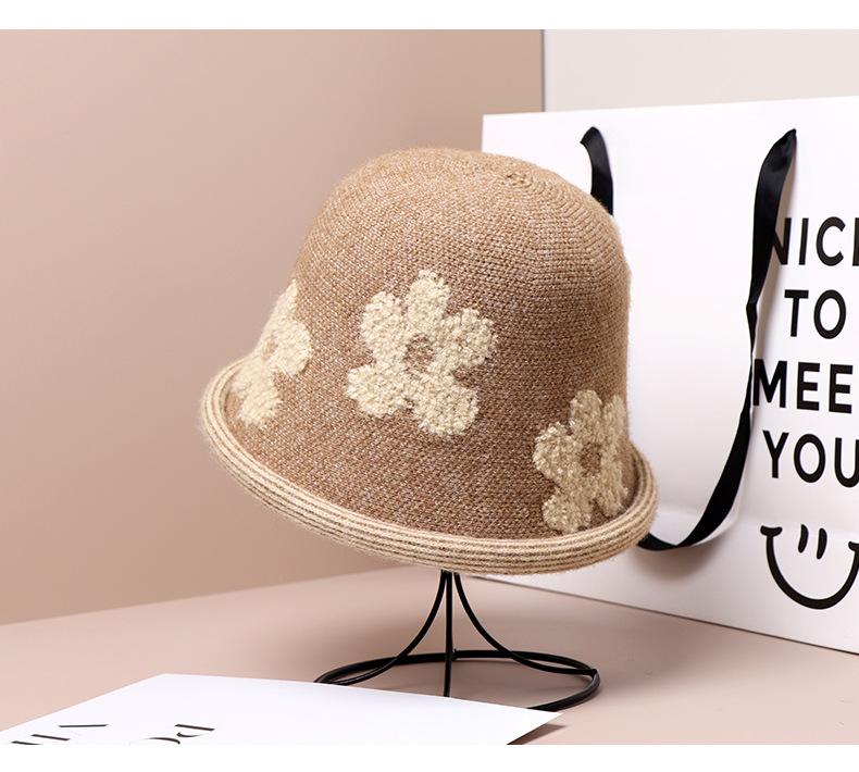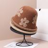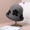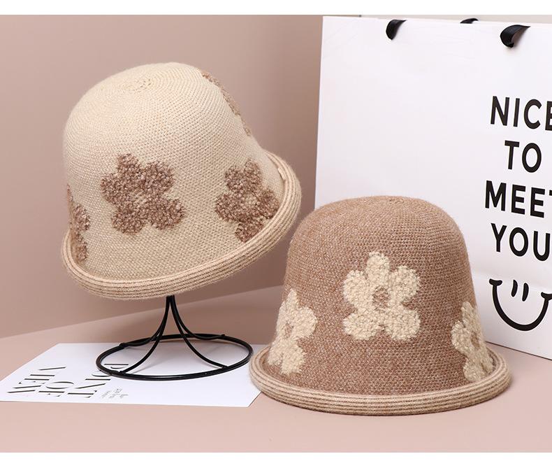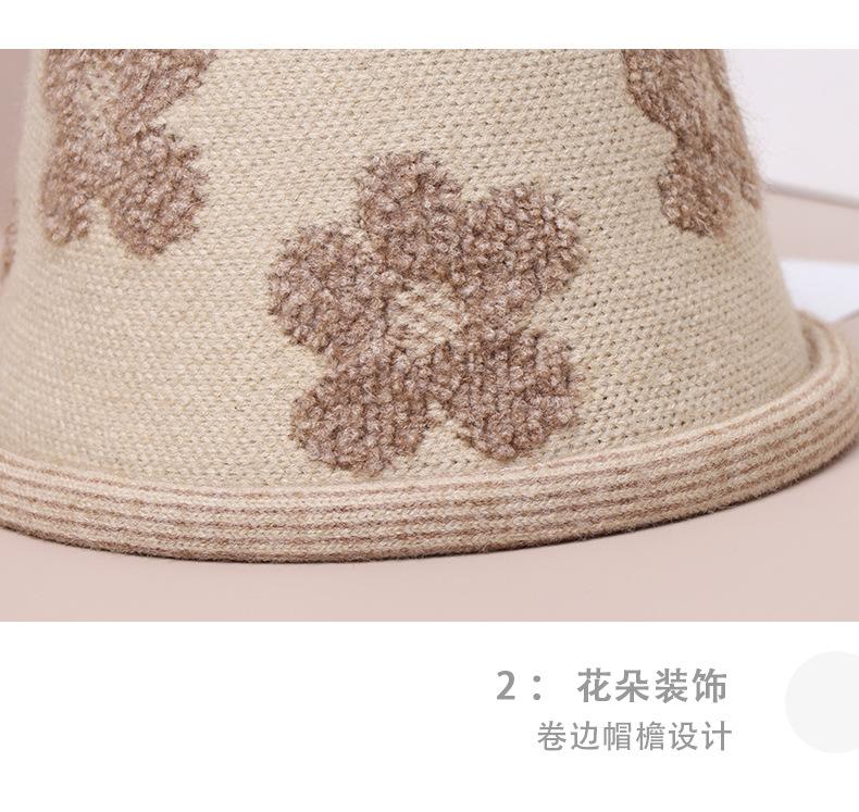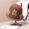 Estilo Coreano Nuevo Otoño e Invierno Tejido Transpirable Favorecedor para el Rostro Sombrero de Cubo con Flor Pequeña Lana Cálida Borde Enrollado Nicho Sombrero de Cubeta