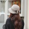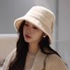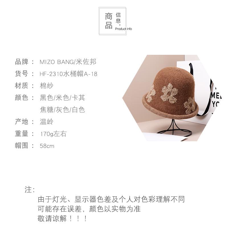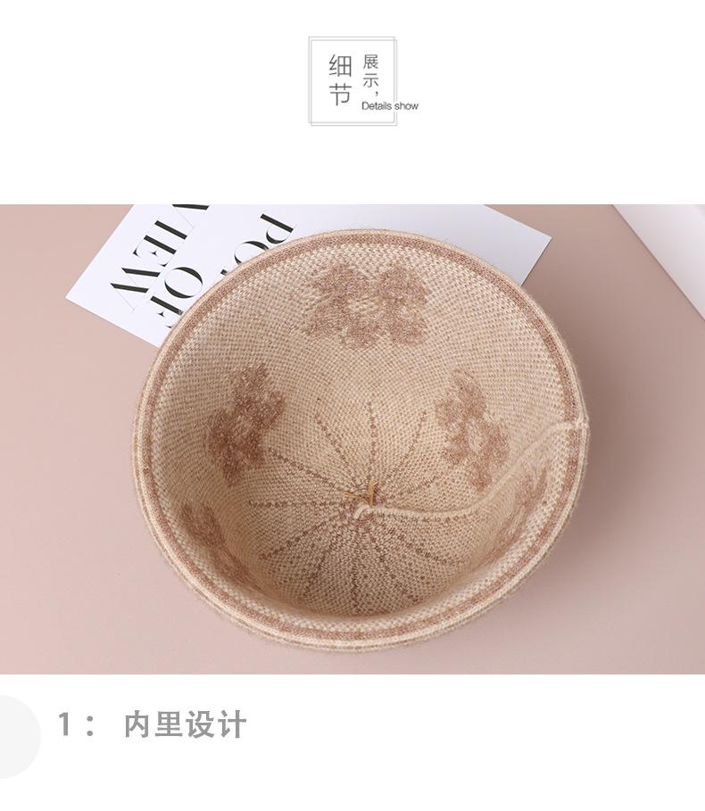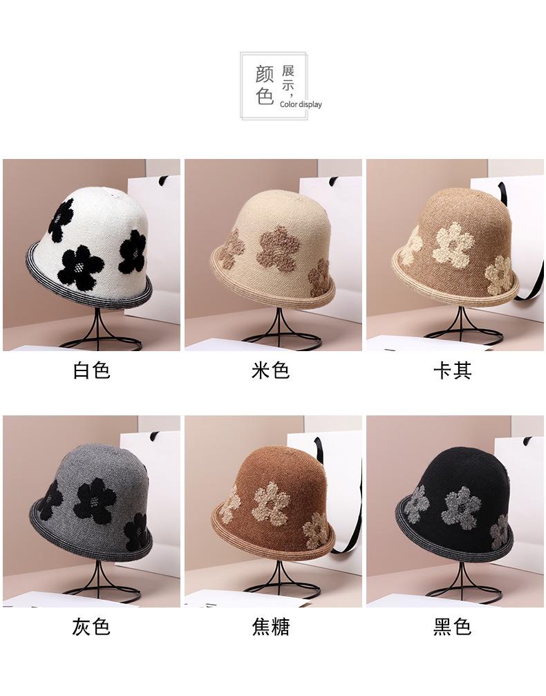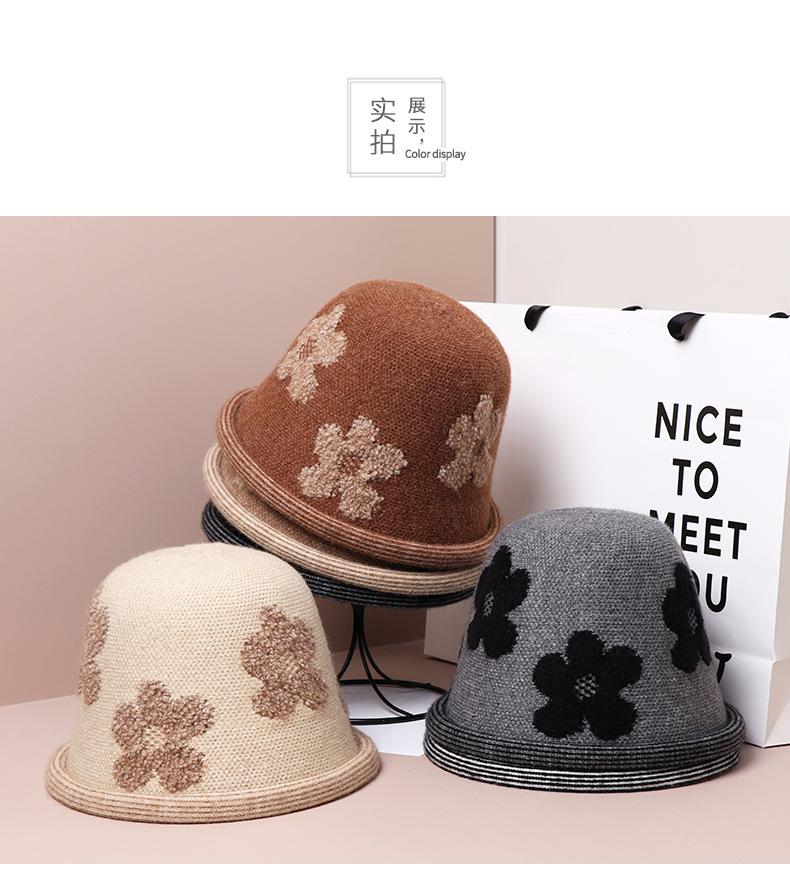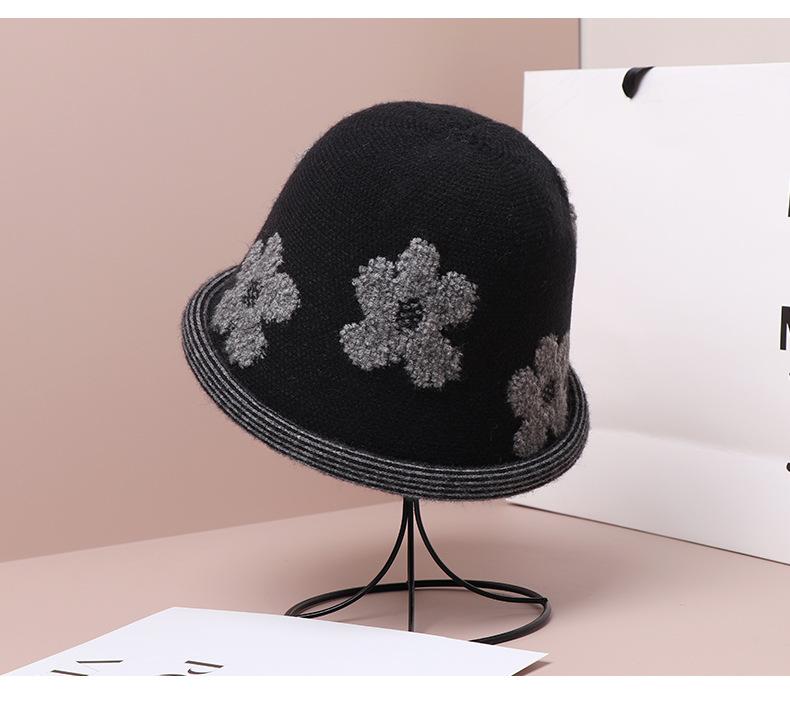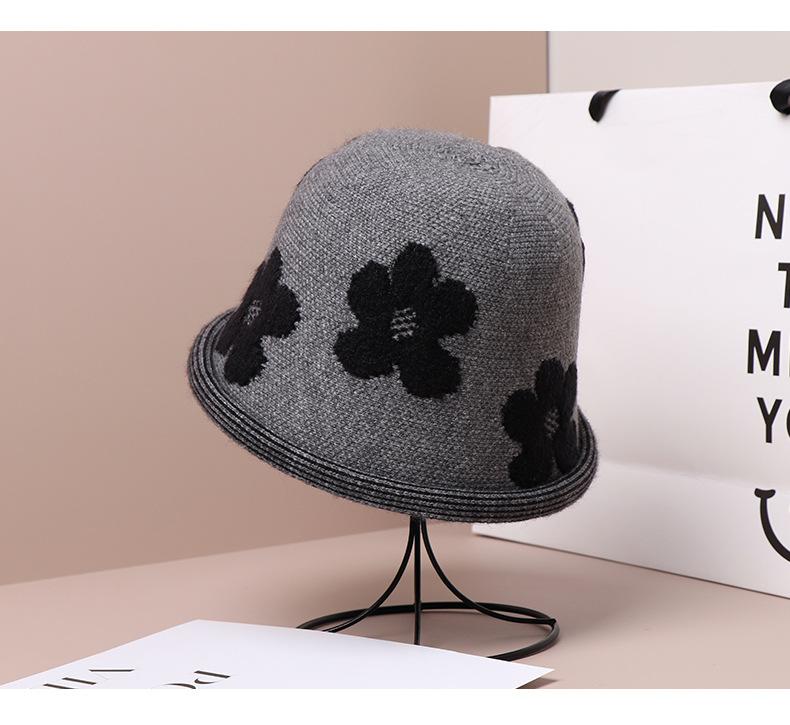 Estilo Coreano Nuevo Otoño e Invierno Tejido Transpirable Favorecedor para el Rostro Sombrero de Cubo con Flor Pequeña Lana Cálida Borde Enrollado Nicho Sombrero de Cubeta