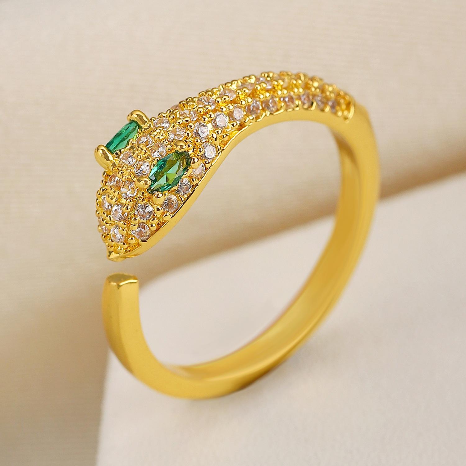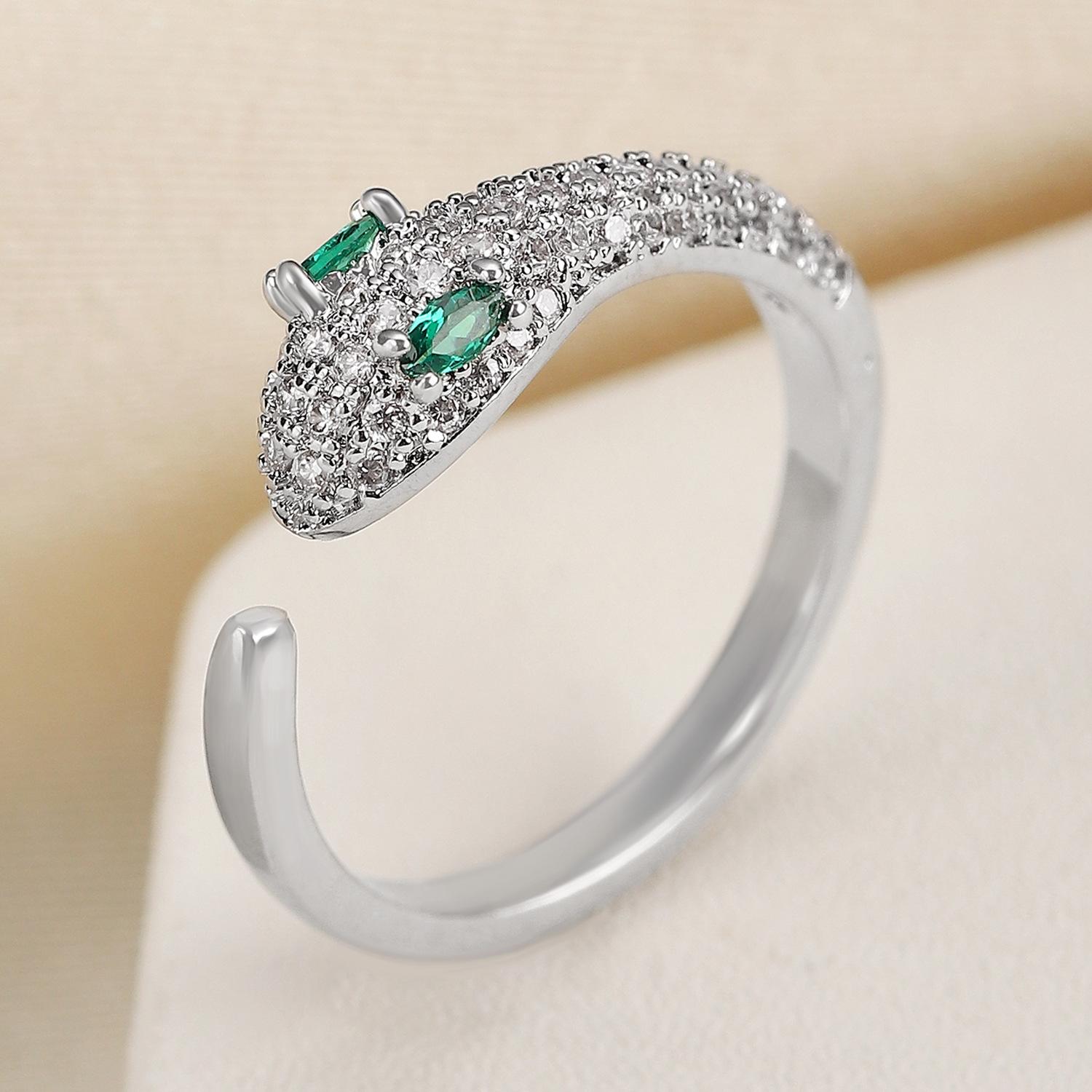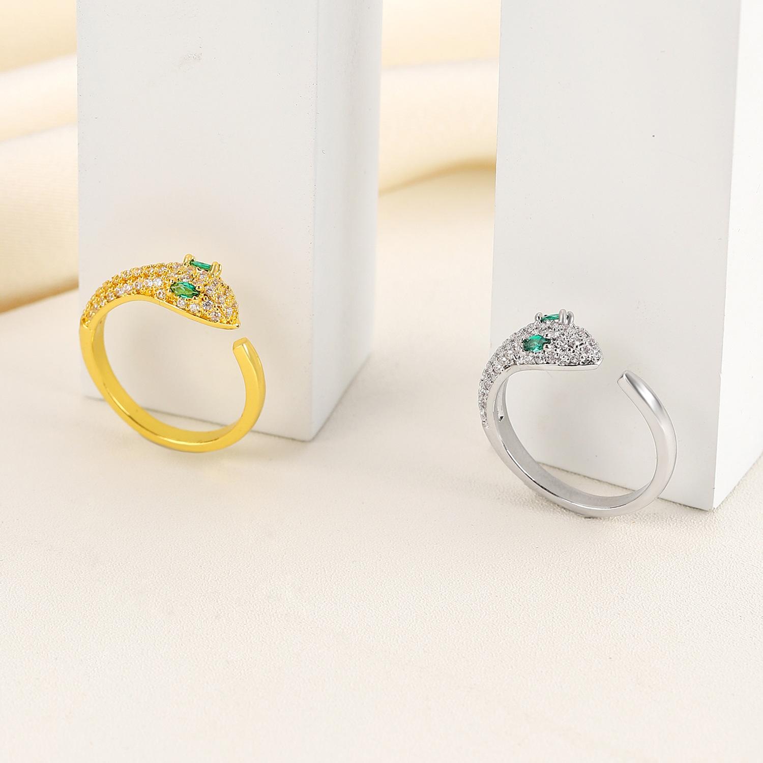 Anillo de serpiente de cobre y circonita cúbica, estilo europeo y americano, personalizado, abierto, para el dedo índice, 2024