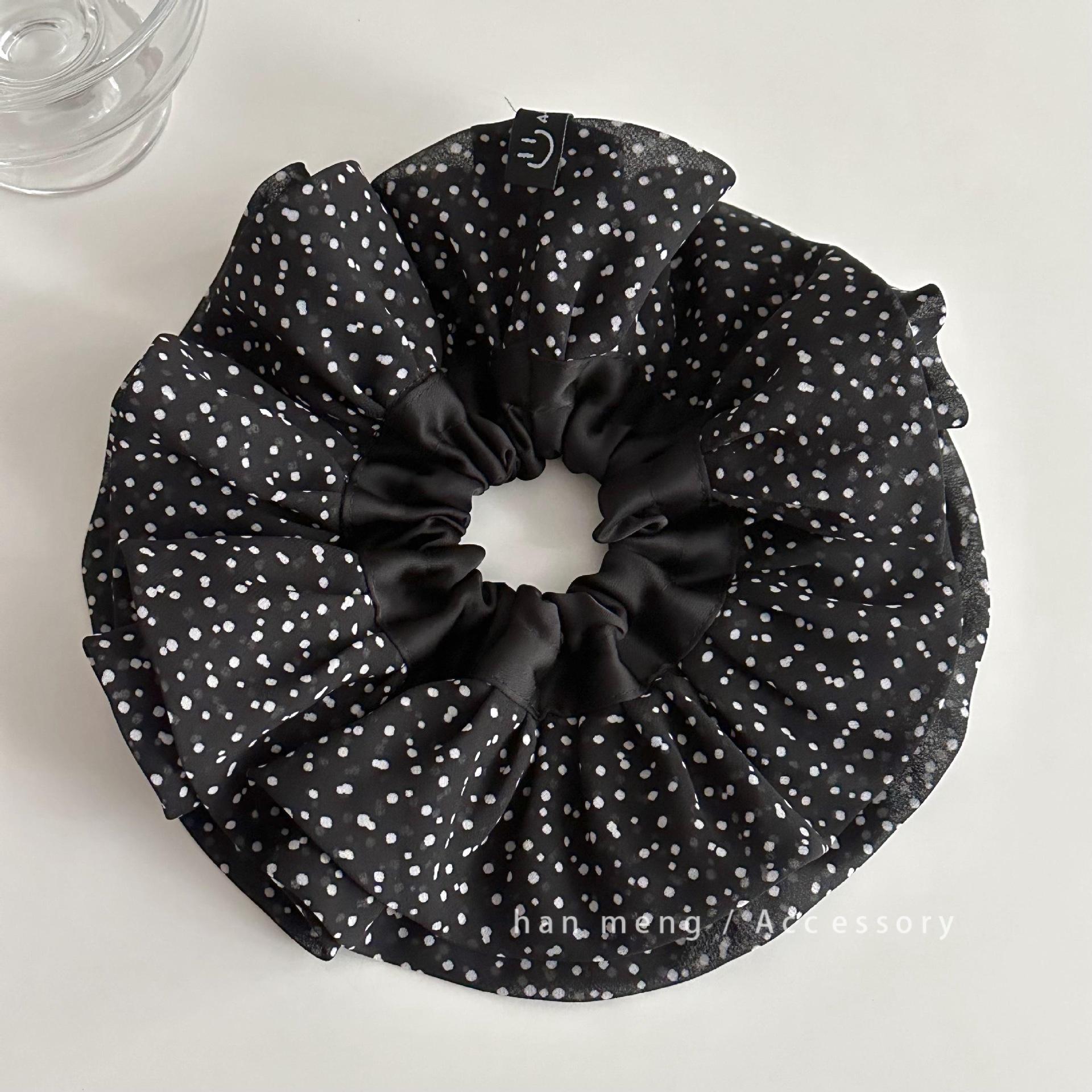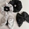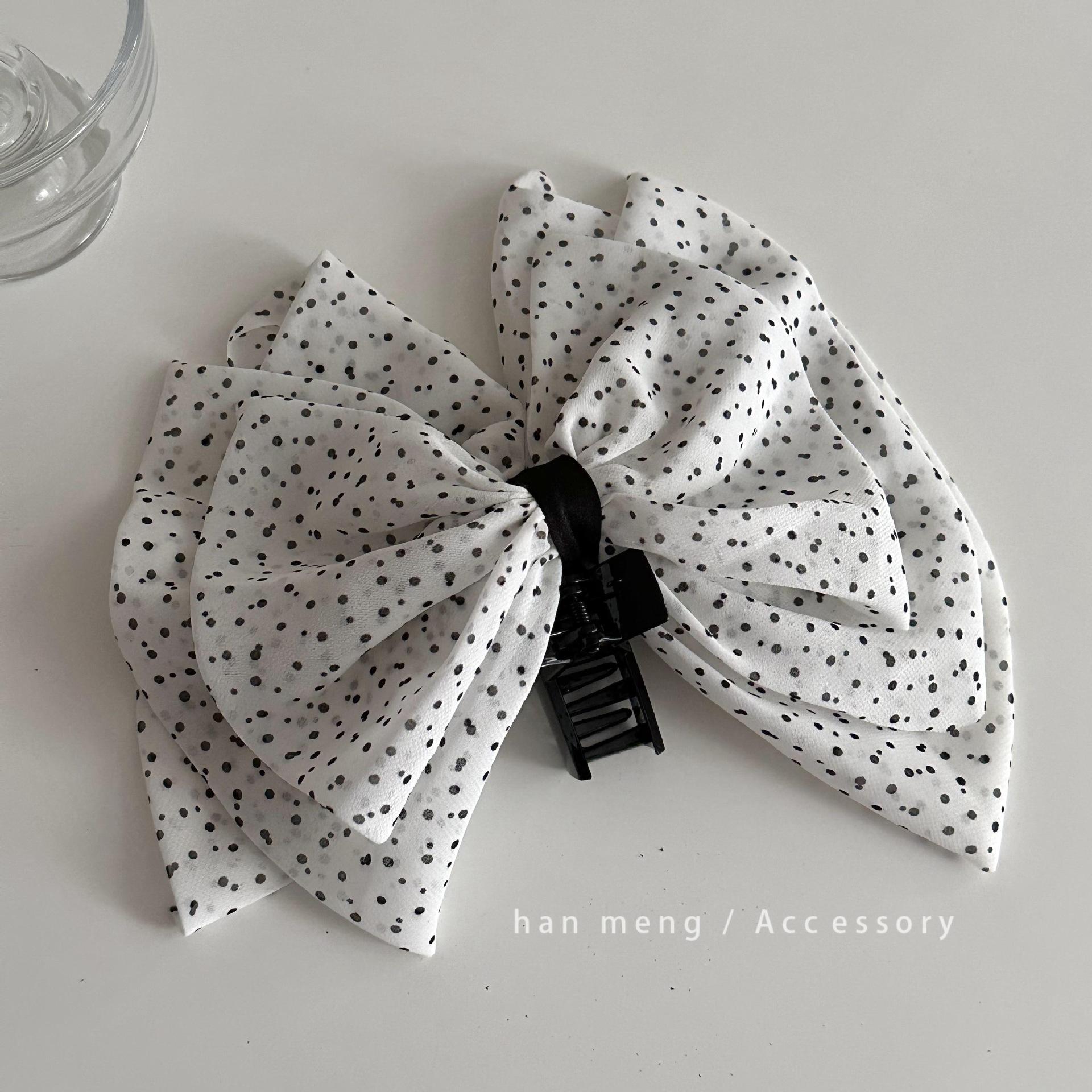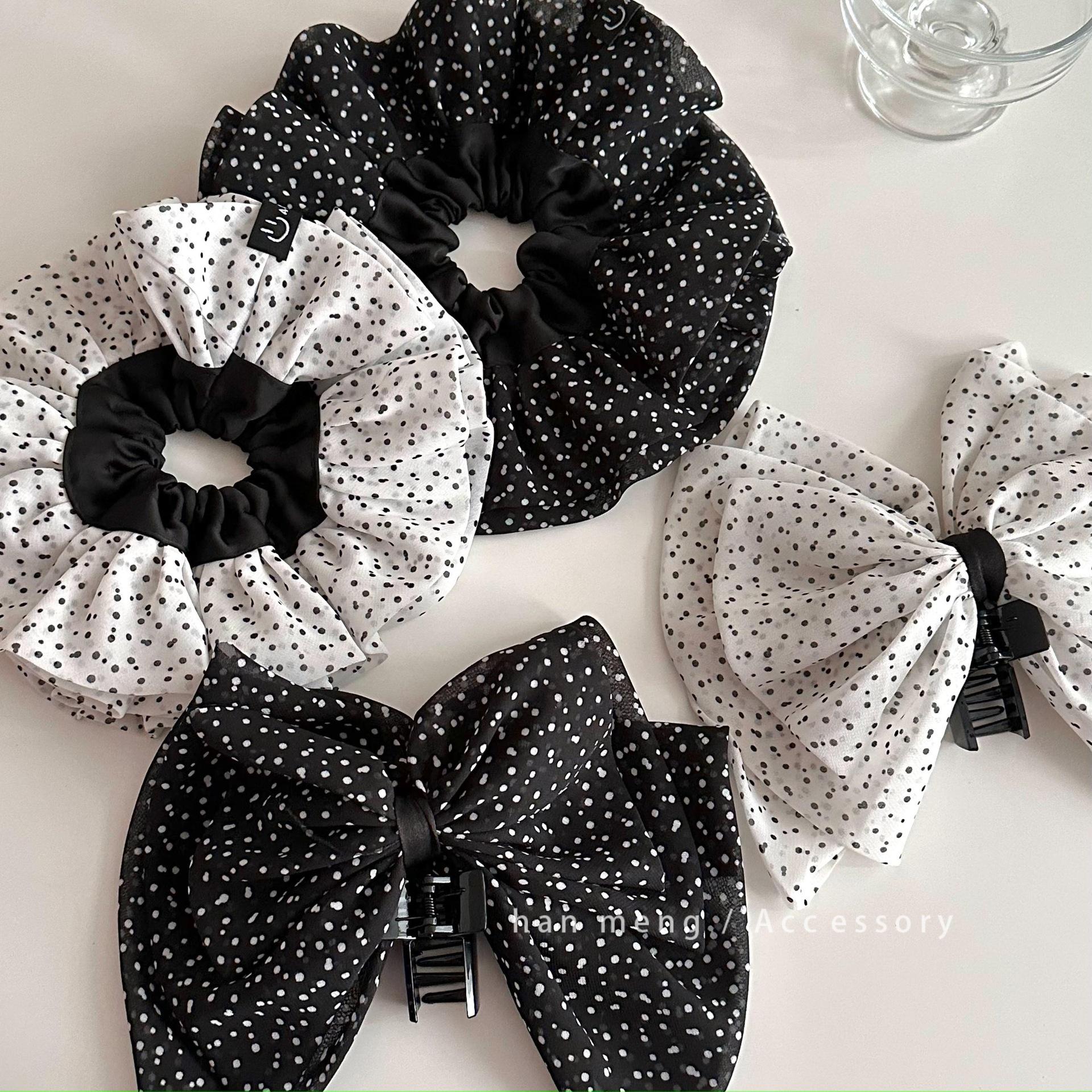 Anillo para el cabello de malla retro francés con puntos de onda, elegante lazo, pinza de media coleta, elegante gasa, media coleta, accesorios para el cabello de principios de primavera, horquilla para mujer