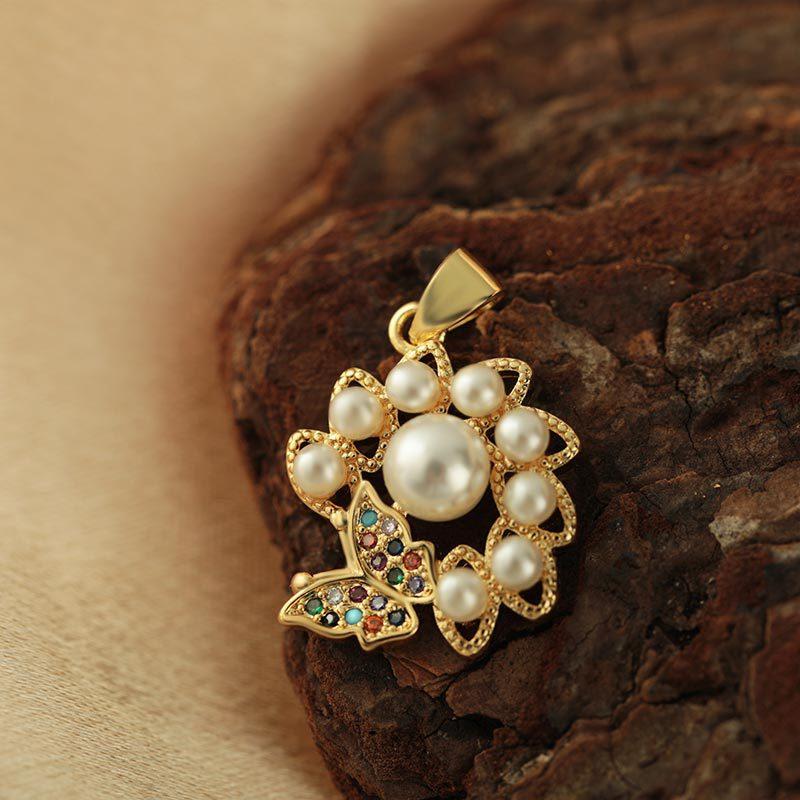 Nuevo temperamento de moda transfronteriza colgante de perlas accesorios DIY para mujer Joker incrustado circón joyería de mariposa venta al por mayor ventas directas