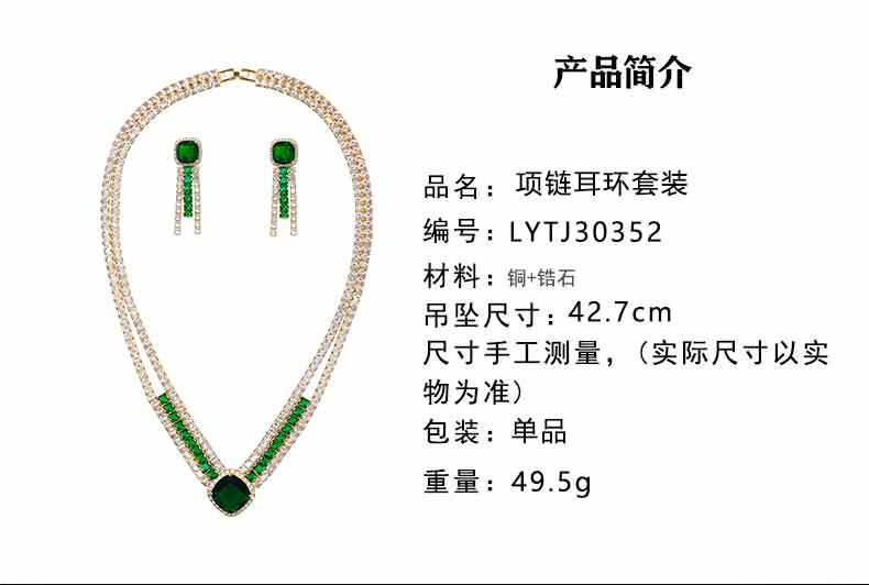 Collar de Piedras Preciosas Cuadradas de Lujo Ligero Transfronterizo con Micropavé de Diamantes Completos de Alta Resistencia, Juego de Joyería, Accesorios Cuadrados de Banquete de Otoño e Invierno, Venta al por Mayor