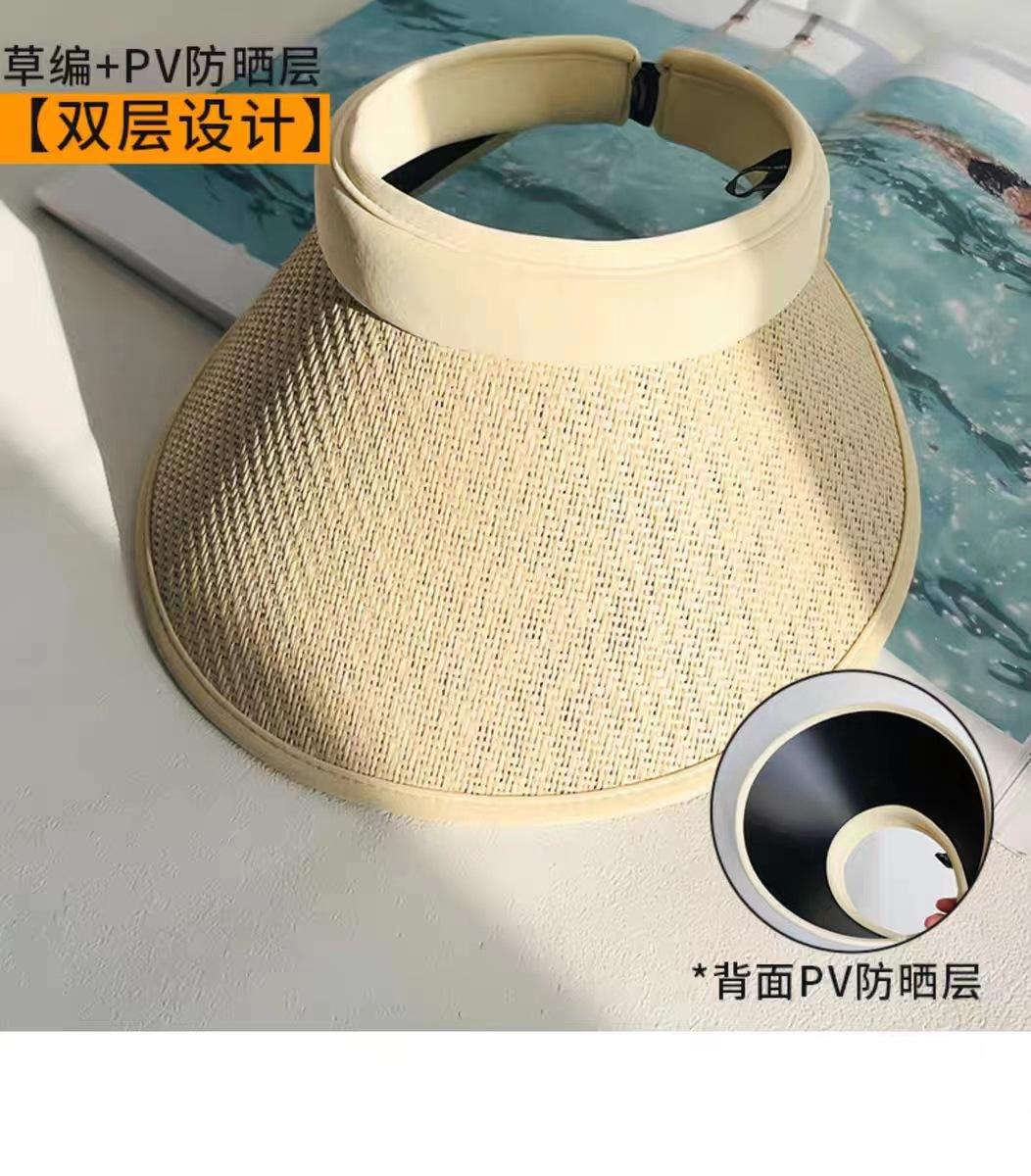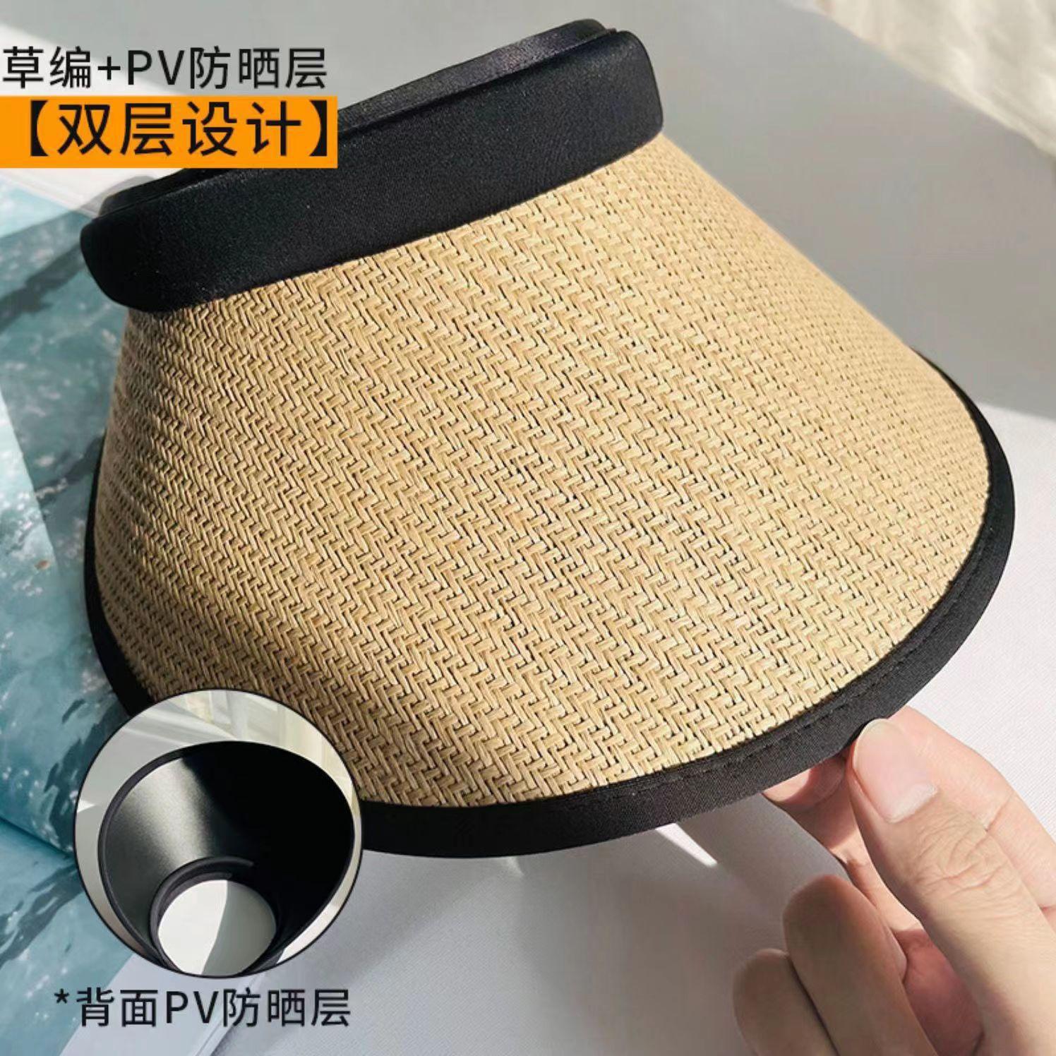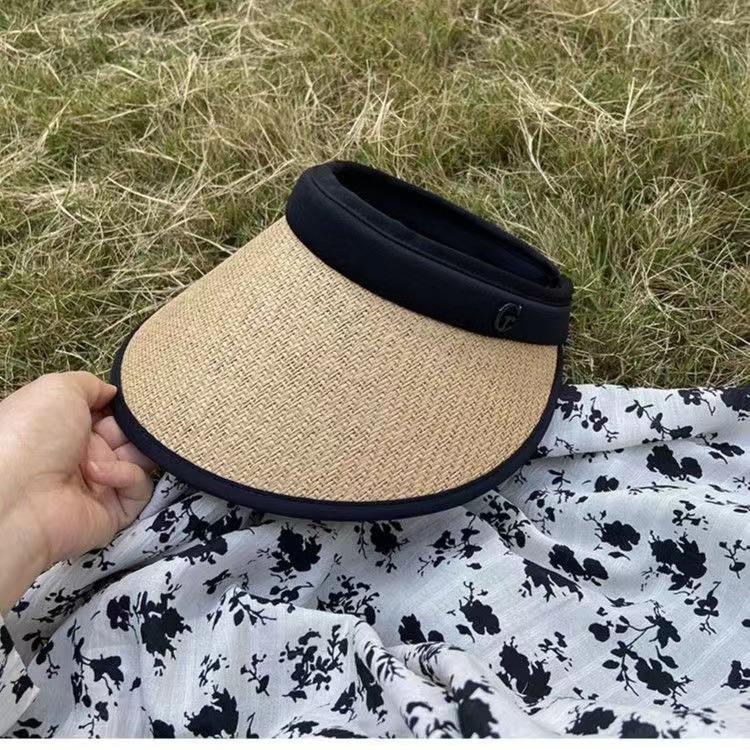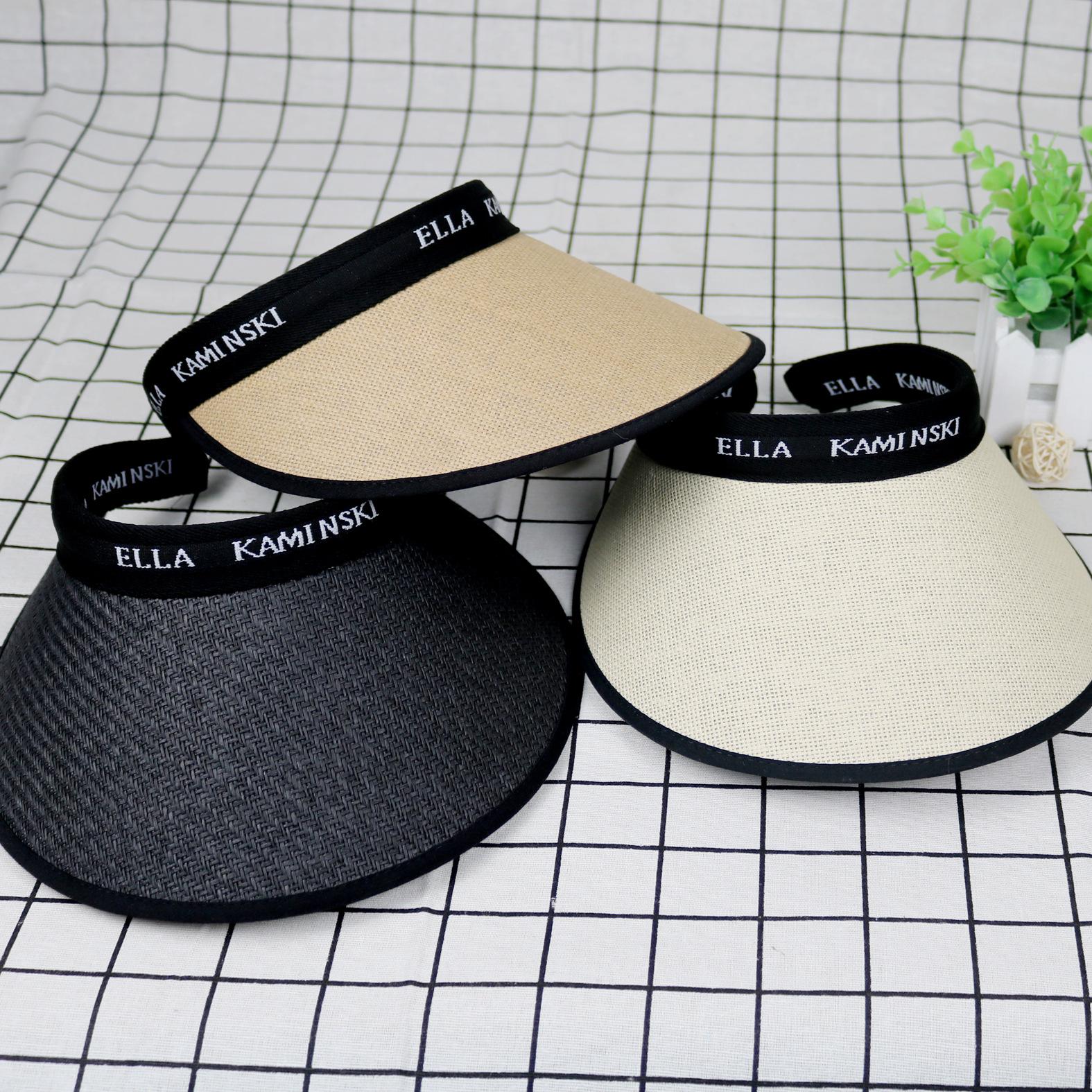 Sombrero de Protección Solar con Cinta para la Cabeza con Letras, Sombrero de Copa Abierta para Mujer, Sombrero de Sol de Paja de Verano con Protección UV, Sombrero de Sol para Ciclismo al Aire Libre con Ala Ancha