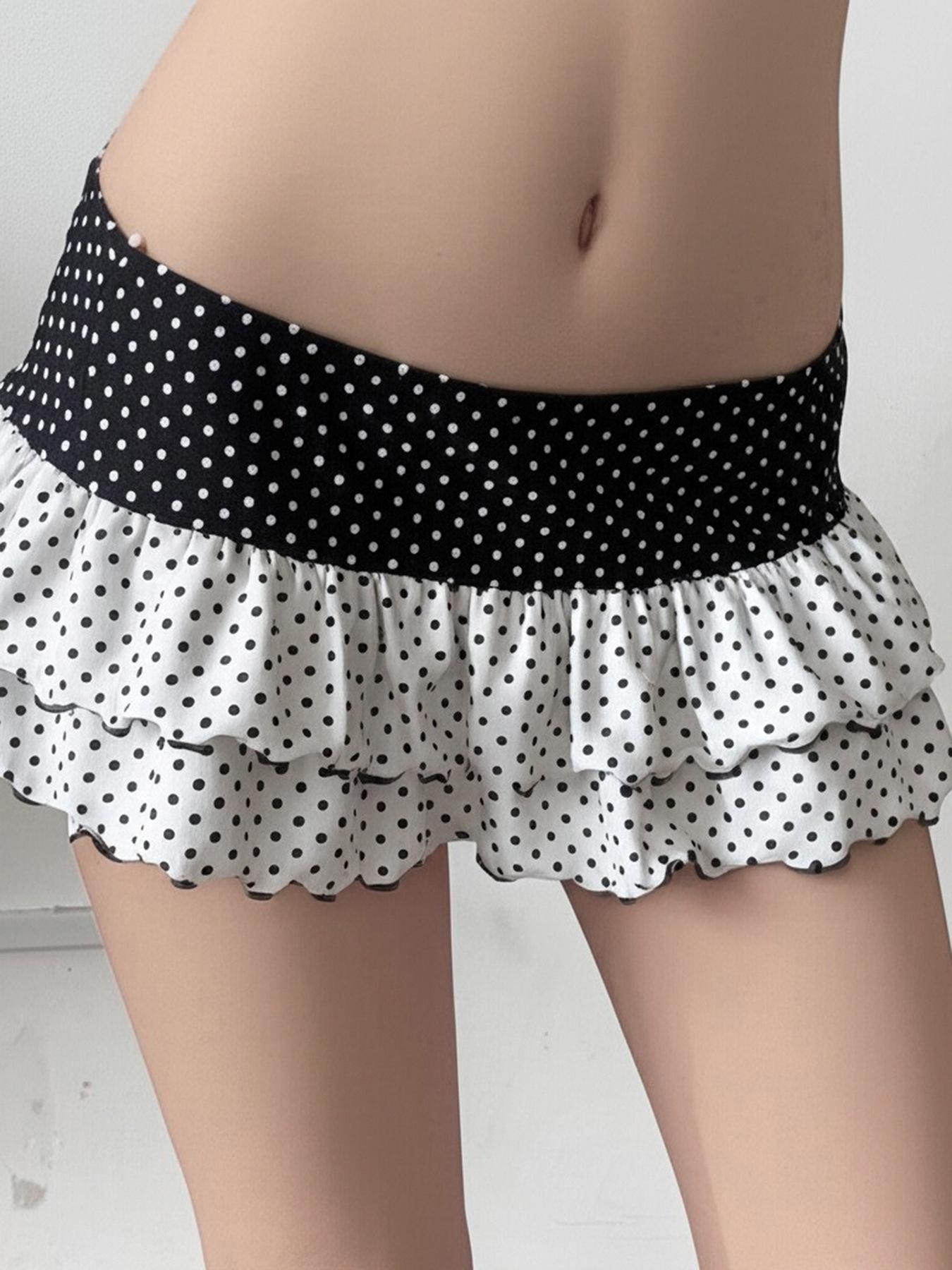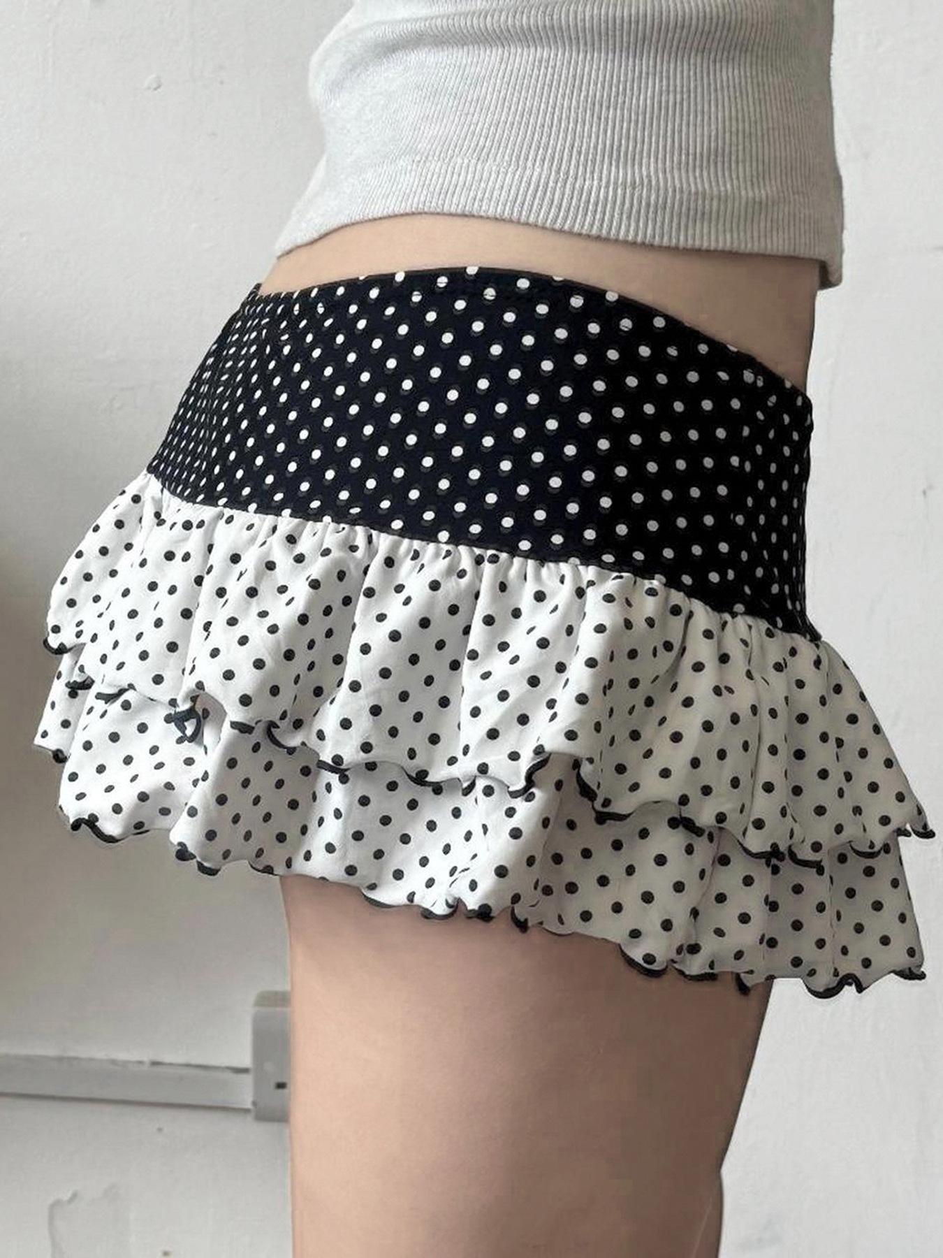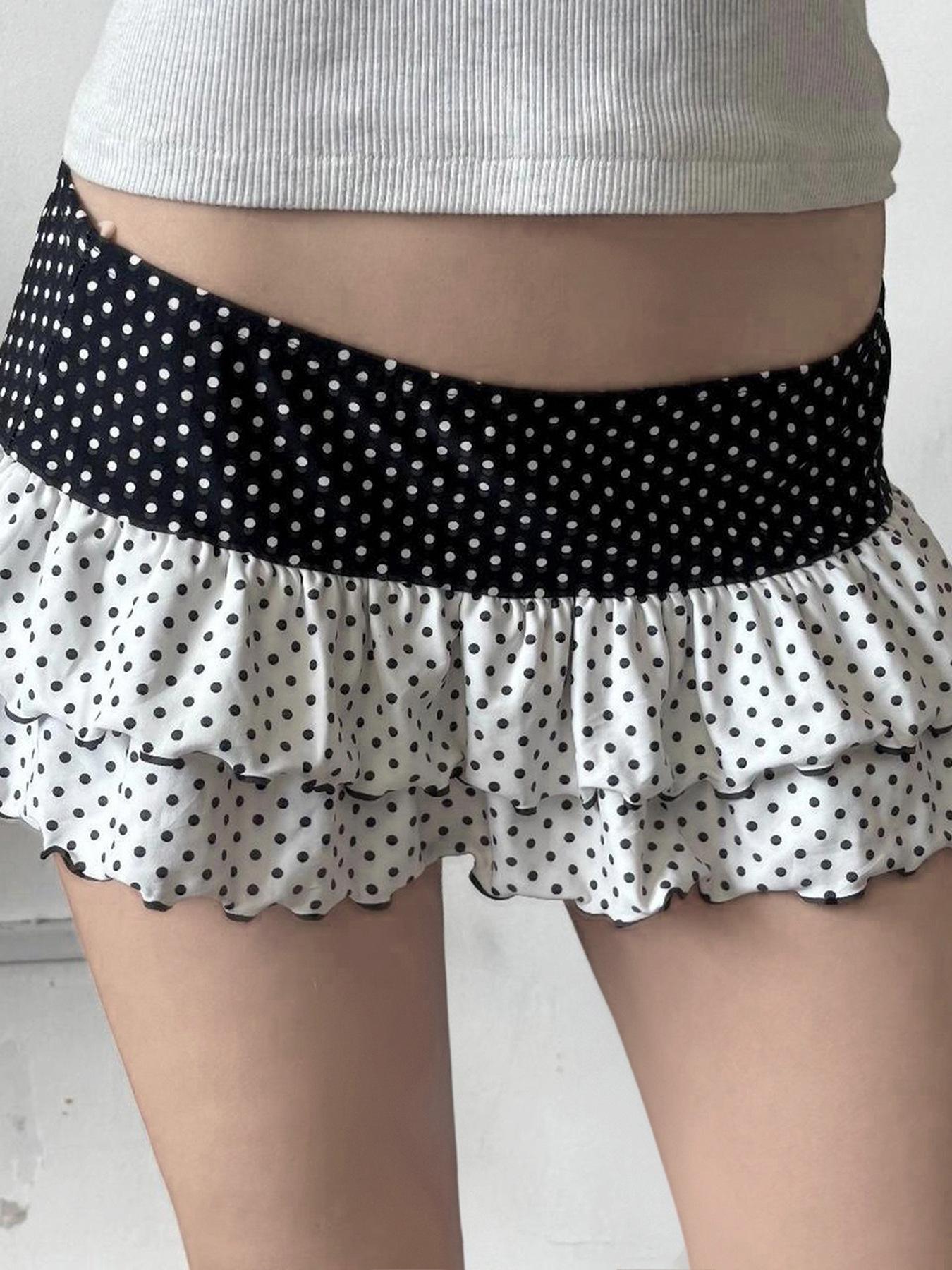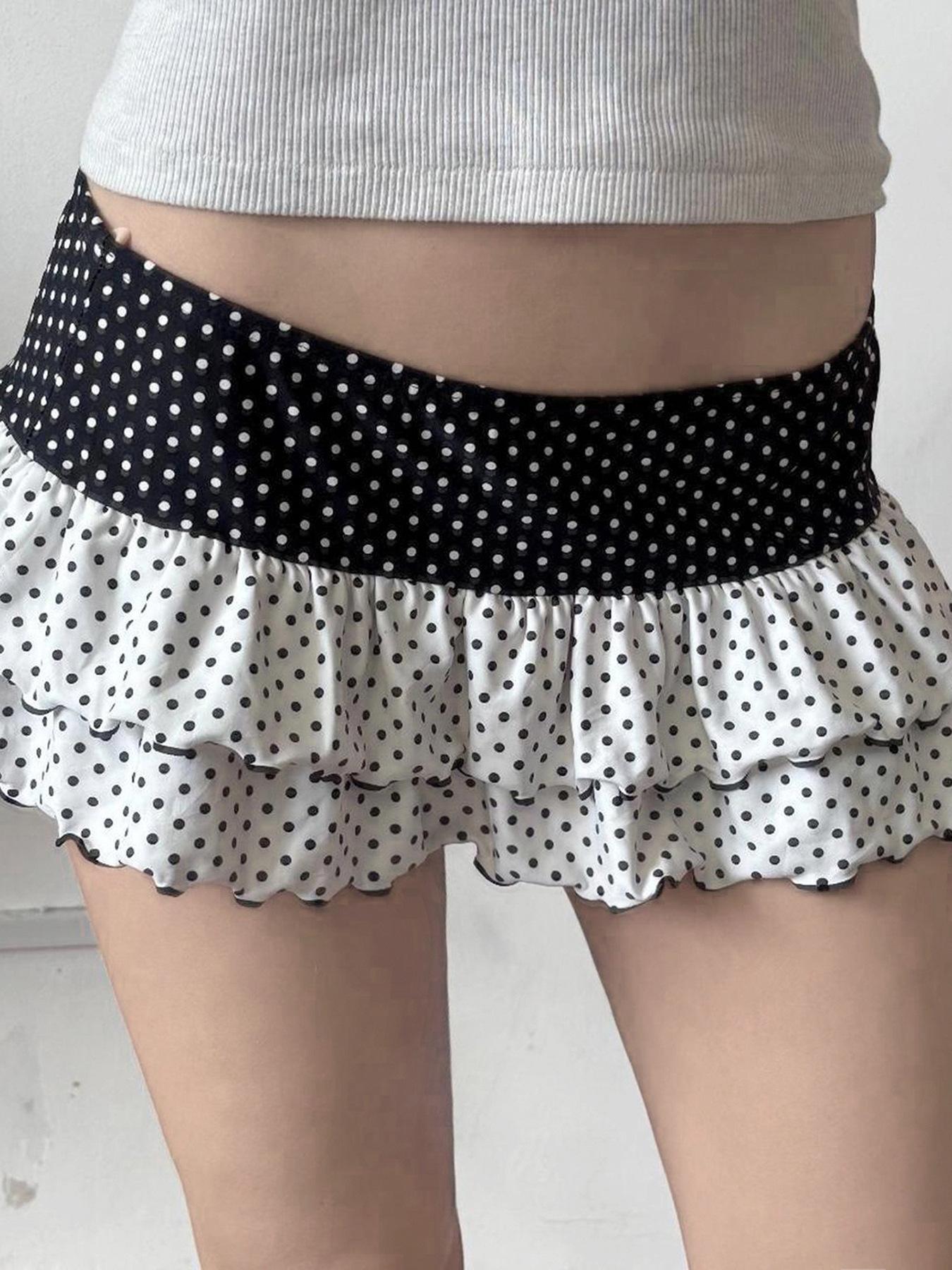 Lindo Estilo de Lujuria Pura para Niña Puntadas de Lunares Adelgazante Color Contrastante Falda de Pastel Verano para Mujer Nuevo Estilo de Comercio Exterior con Mangas Cortas Forrado
