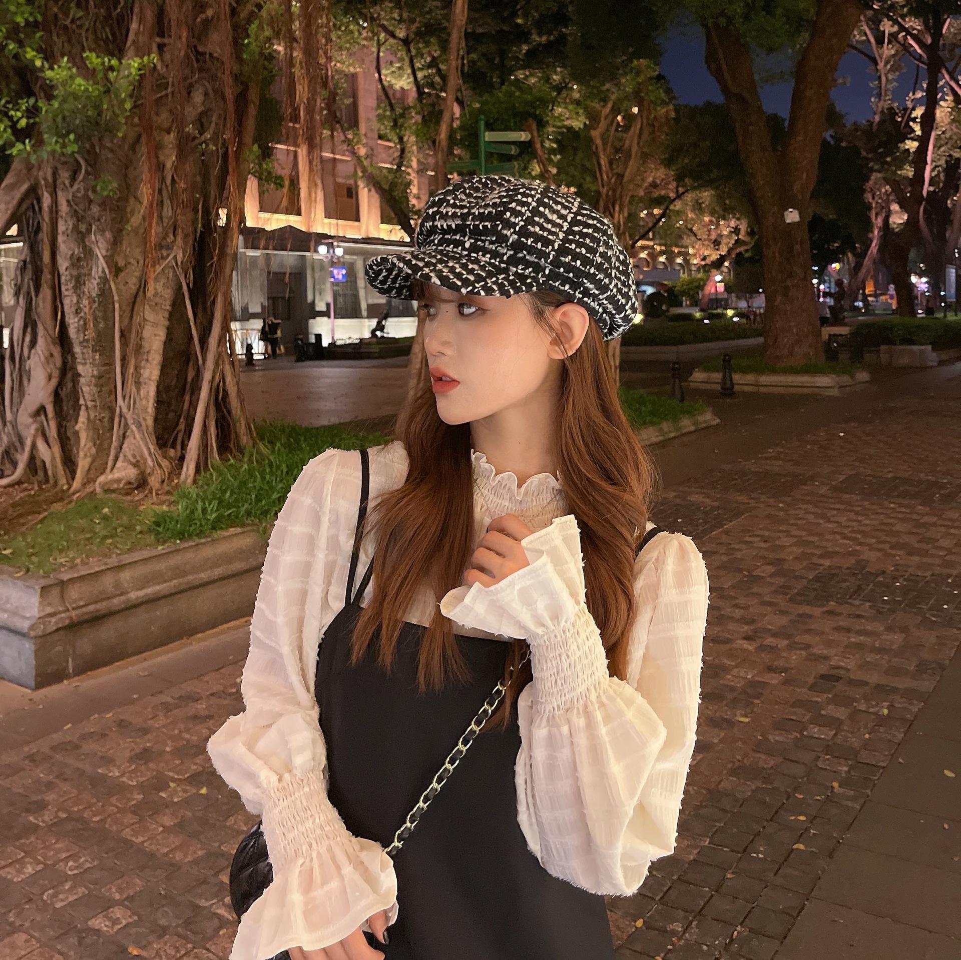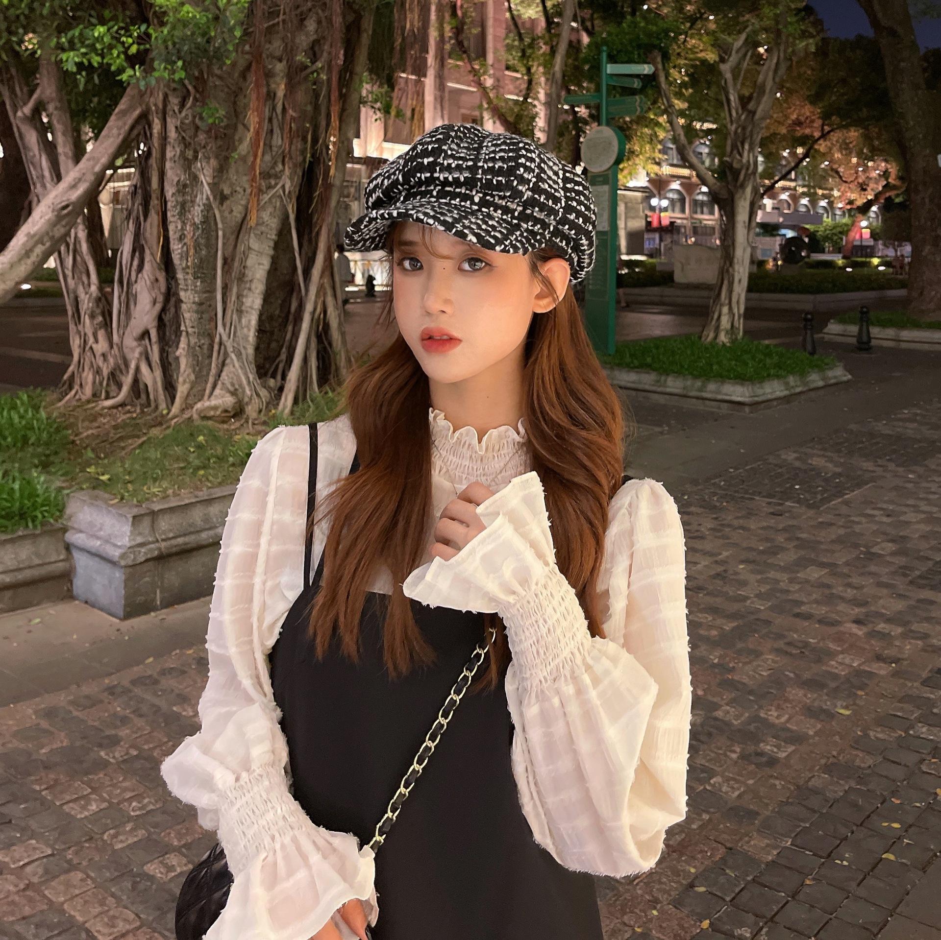 Boina de Verano para Mujer Delgada ins Transpirable Sombrero para Cabeza Grande Moda Estilo Japonés Gorra Octogonal Cubriendo la Cara Sombrero de Pintor Pequeño