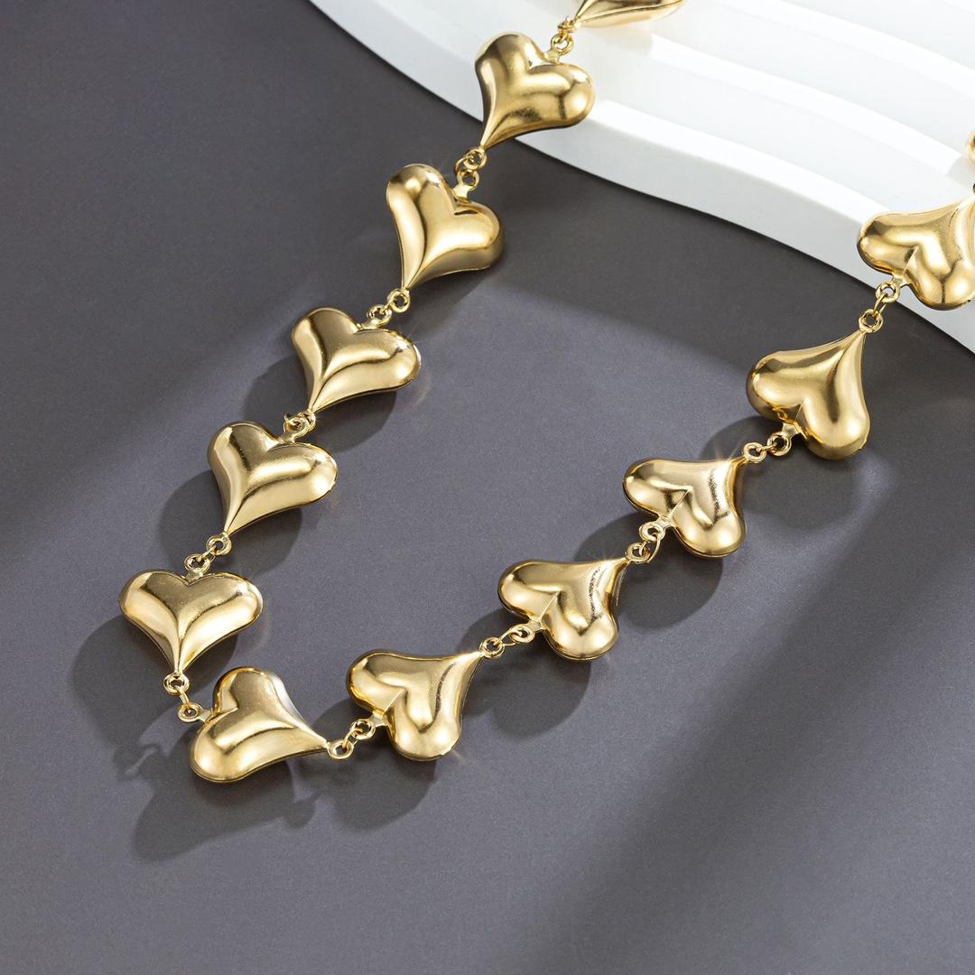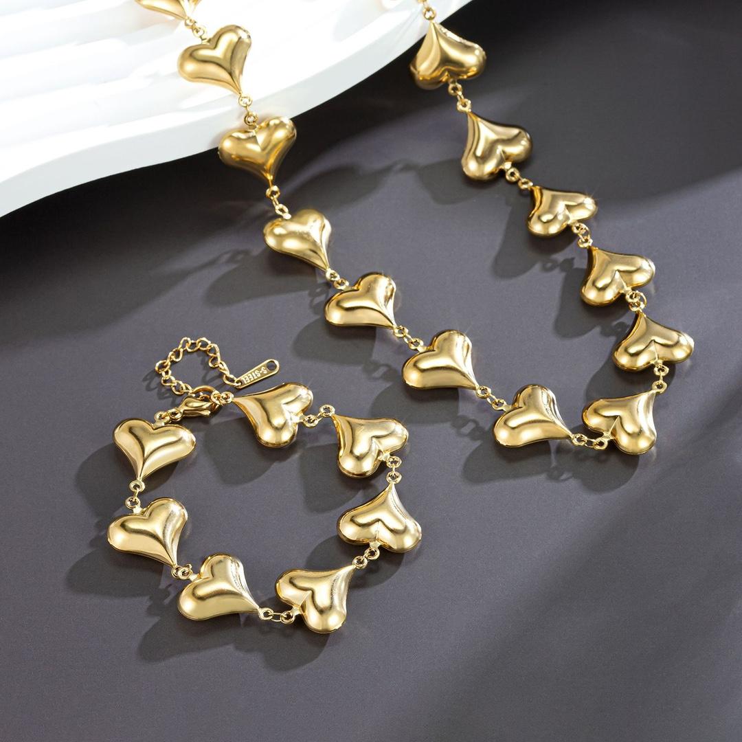 Set de Collar y Pulsera de Amor de Acero de Titanio Venta Caliente Transfronteriza Joyería Popular Creativo Collar Hueco con Forma de Corazón de Durazno Nuevo Estilo