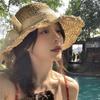 Sombrero de Paja Hueco Tejido a Mano Nuevo 2025 para Mujer Primavera y Verano Playa Marítima Lazo Sombrero para el Sol Sombrero de Pescador