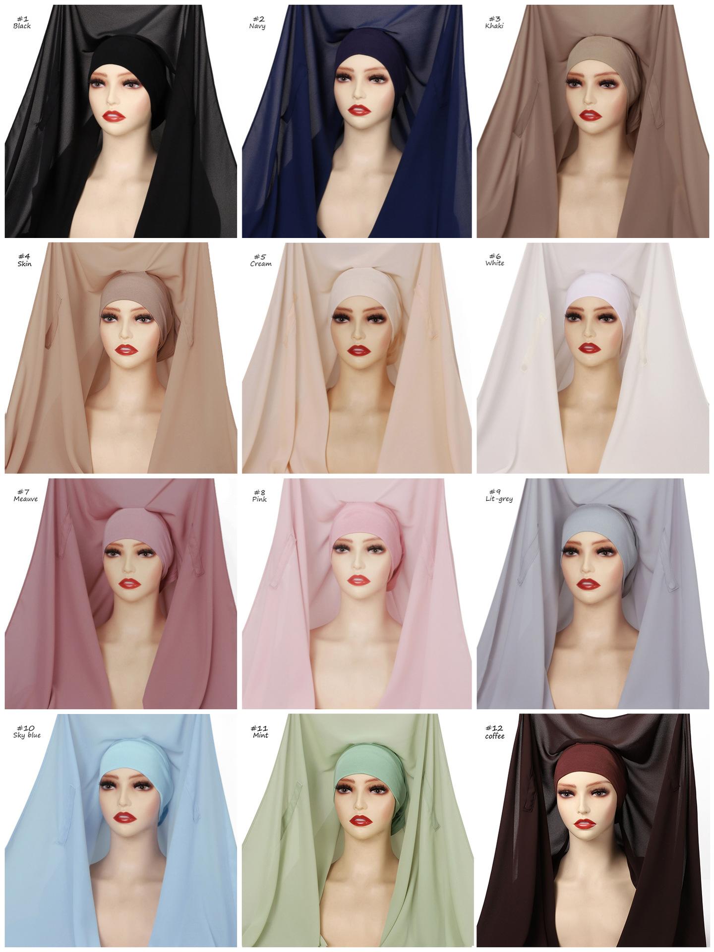 Chifón Grueso Arrugado de Color Sólido con Capucha Cierre Magnético Bufanda Larga Integrada