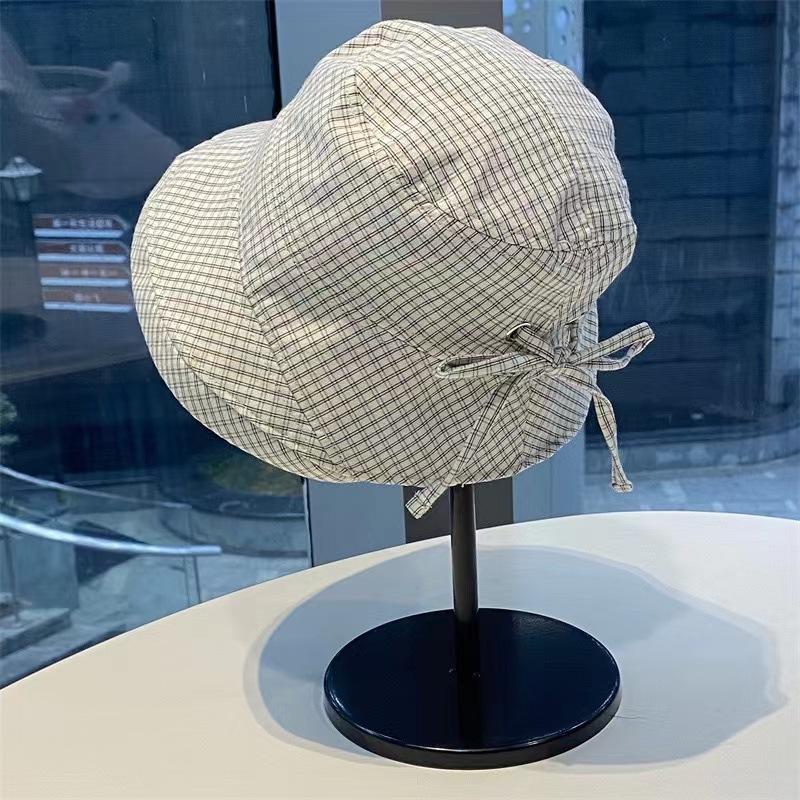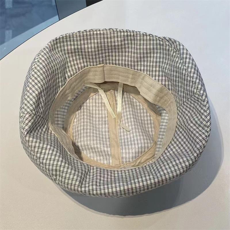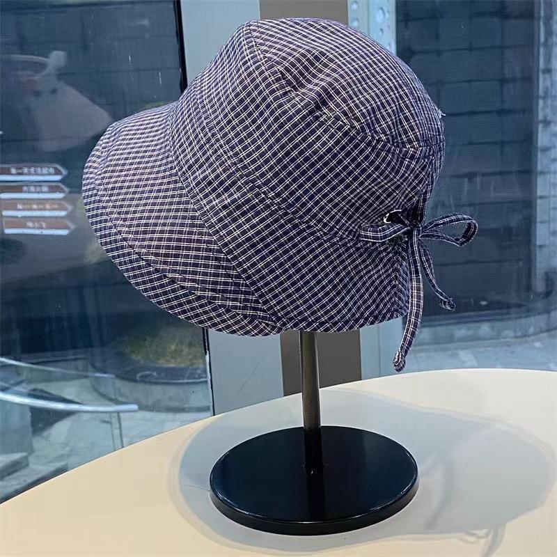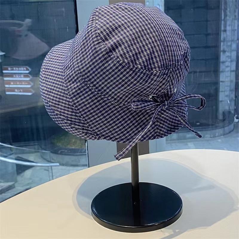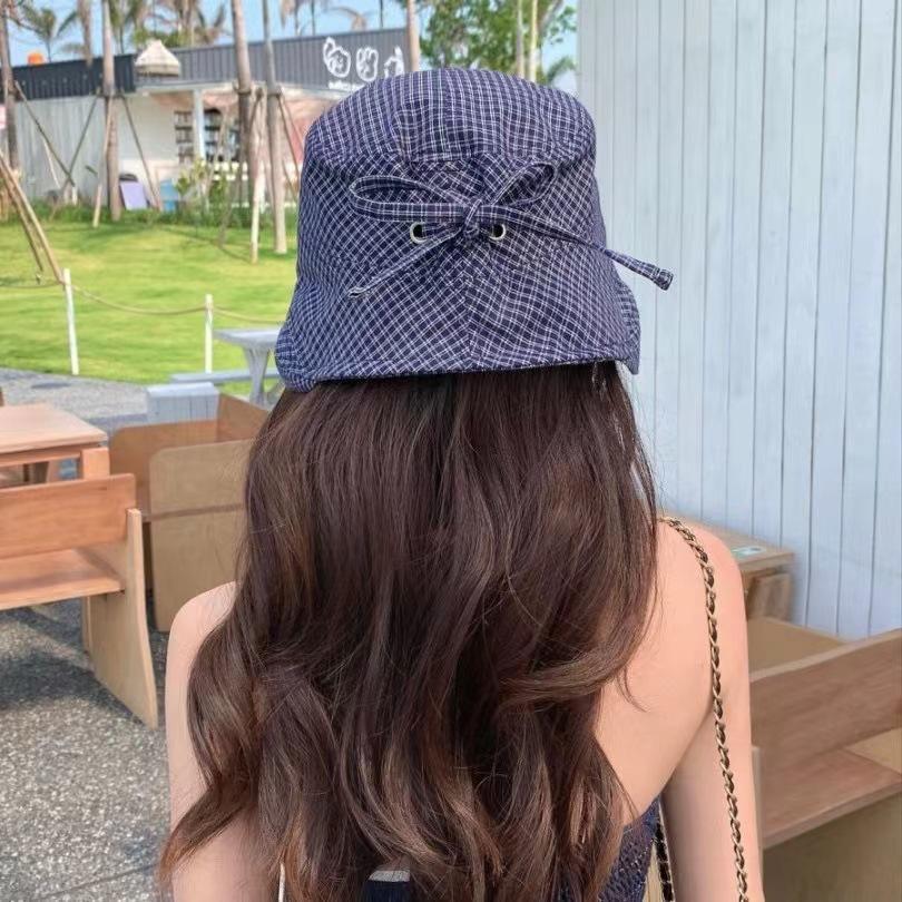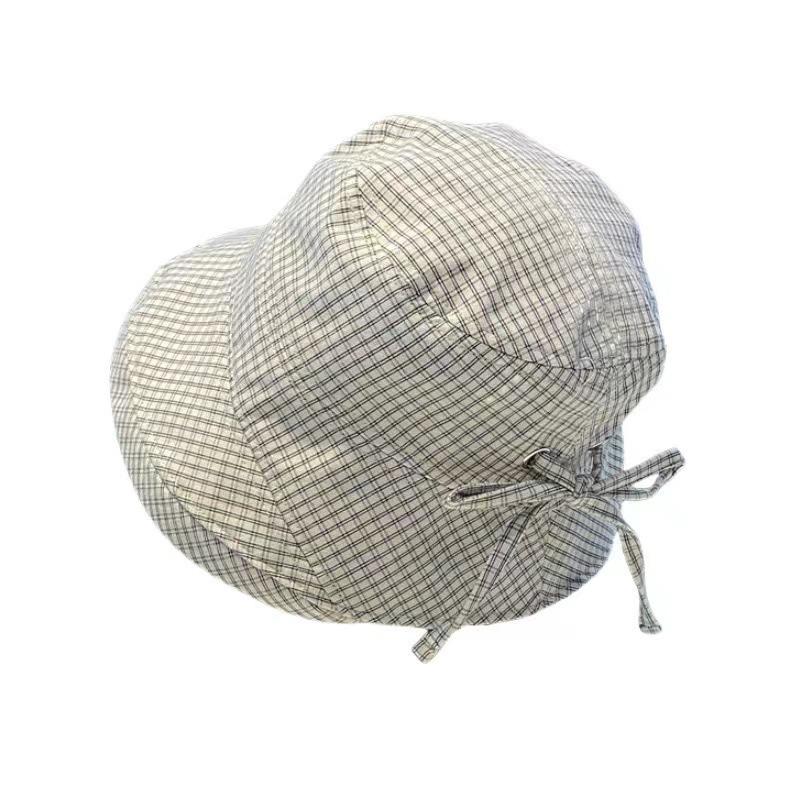 2025 Estilo Coreano Nuevo Sombrero de Pescador a Cuadros para Mujer Verano Exterior Protección Solar Sombrilla Sombrero de Cubeta Lazo Versátil Sombrero para el Sol
