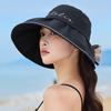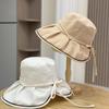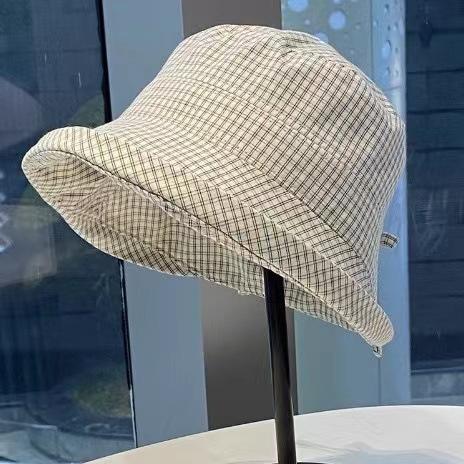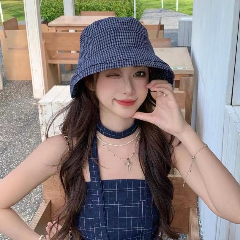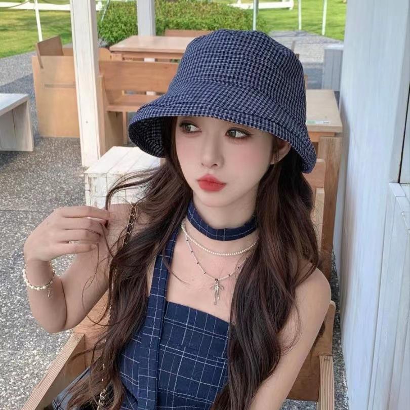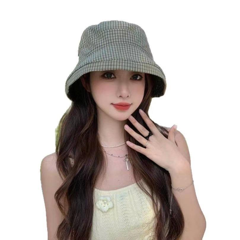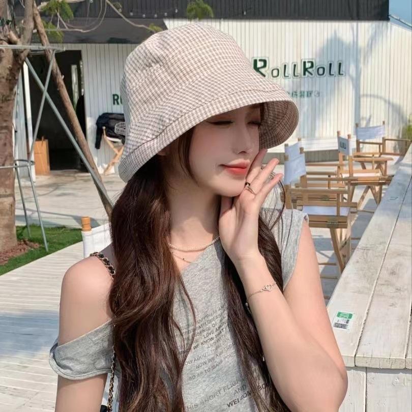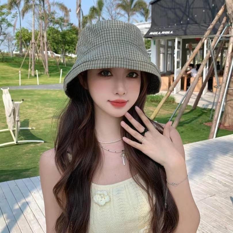 2025 Estilo Coreano Nuevo Sombrero de Pescador a Cuadros para Mujer Verano Exterior Protección Solar Sombrilla Sombrero de Cubeta Lazo Versátil Sombrero para el Sol
