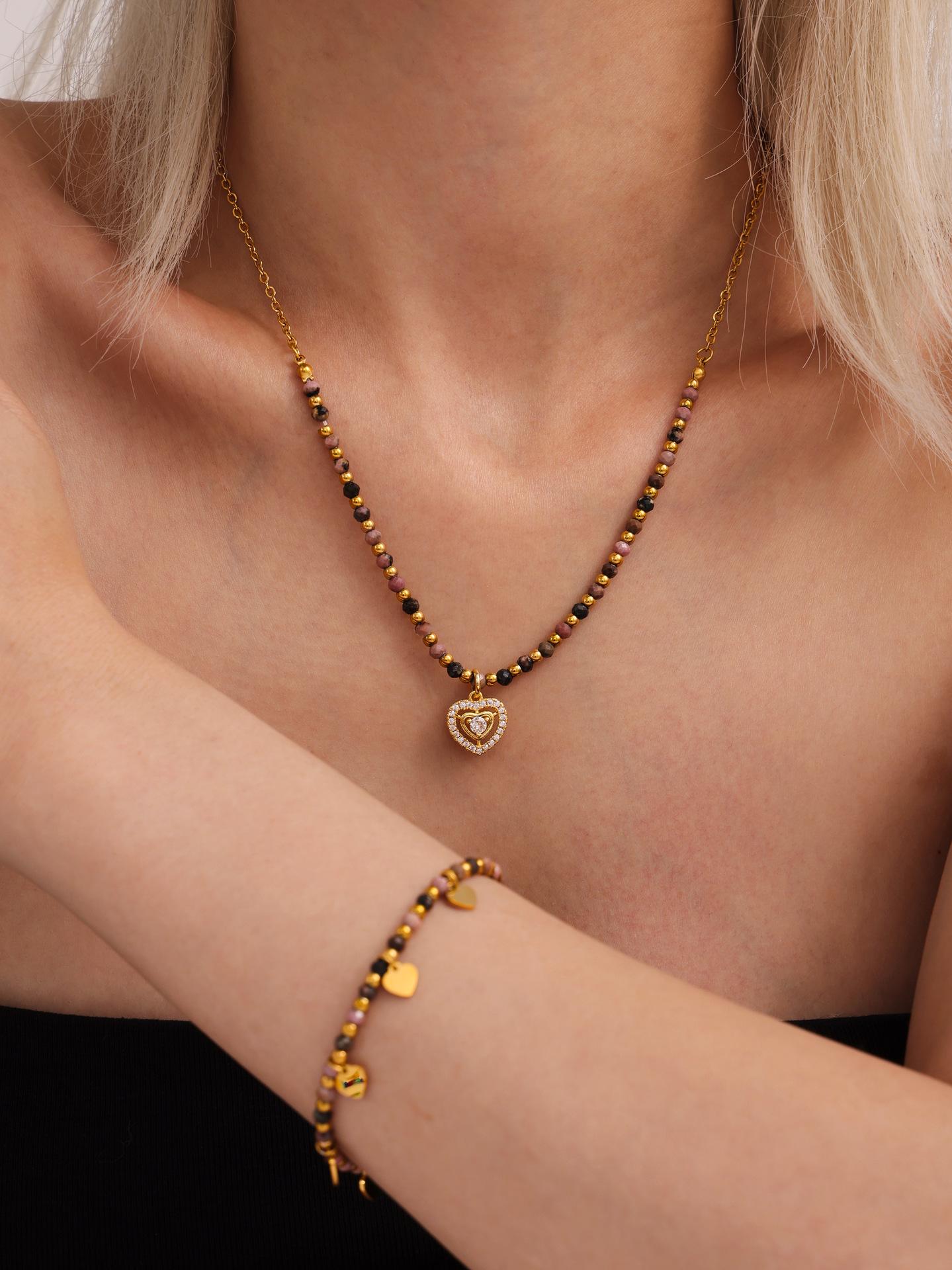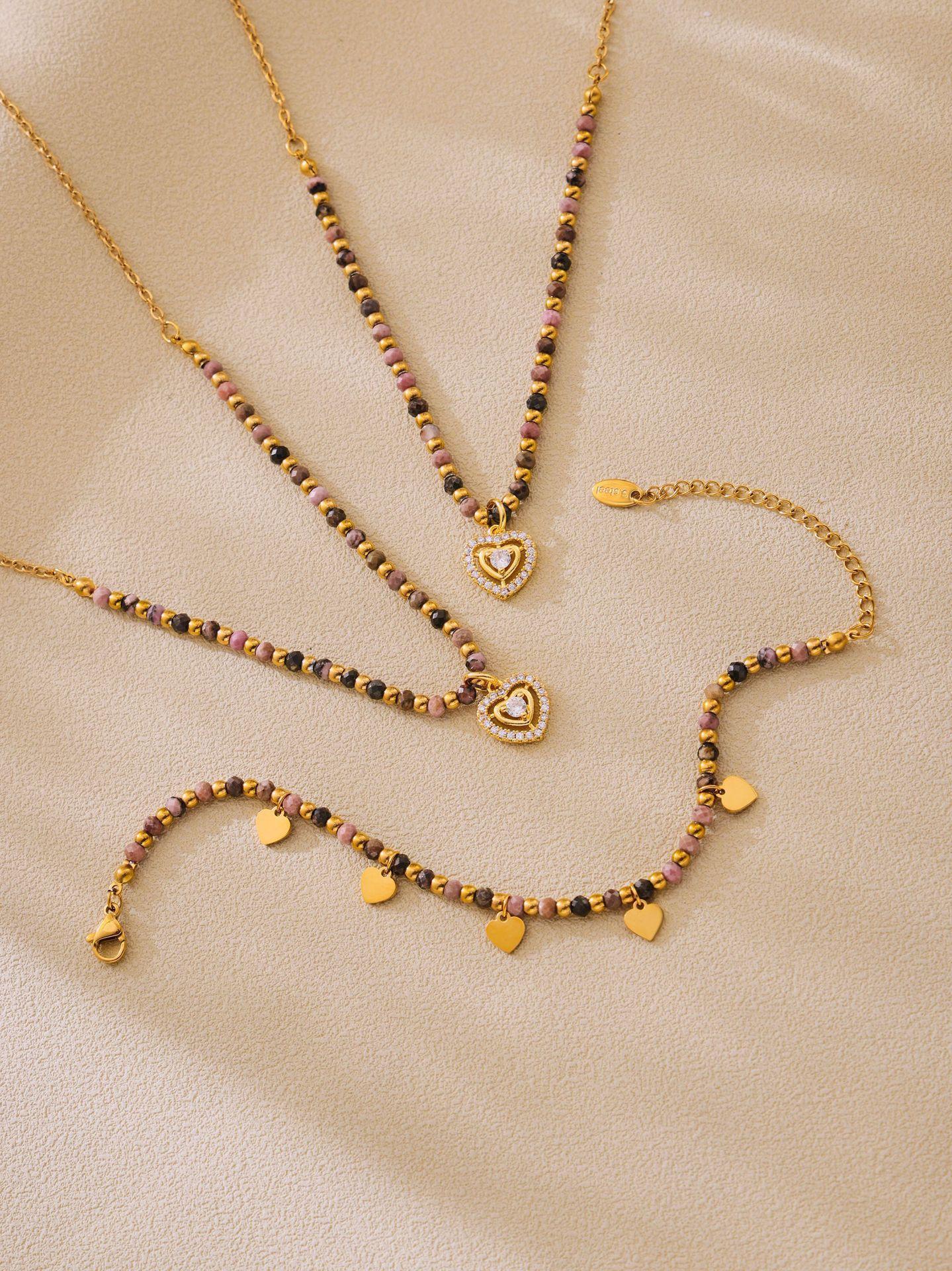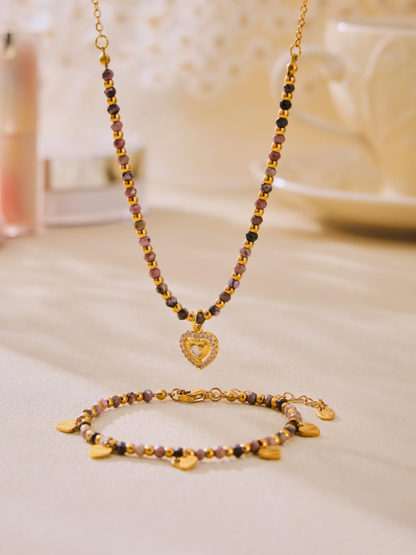 Txp243-love zircon beaded necklace 40+5cm, Txe243-love zircon beaded bracelet 16+5cm