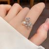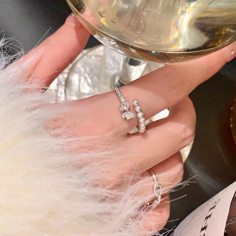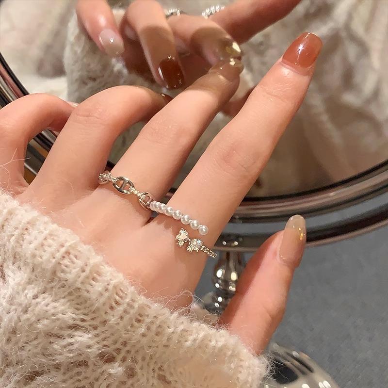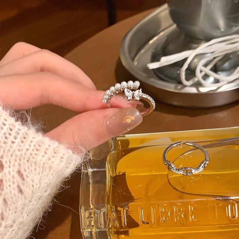 Anillo de Verano Exquisito de Zircón y Perla para Mujer, Anillo Versátil, Anillo de Dedo Índice Abierto de Lujo Ligero de Alta Gama, Nueva Tendencia en Joyería de Mano