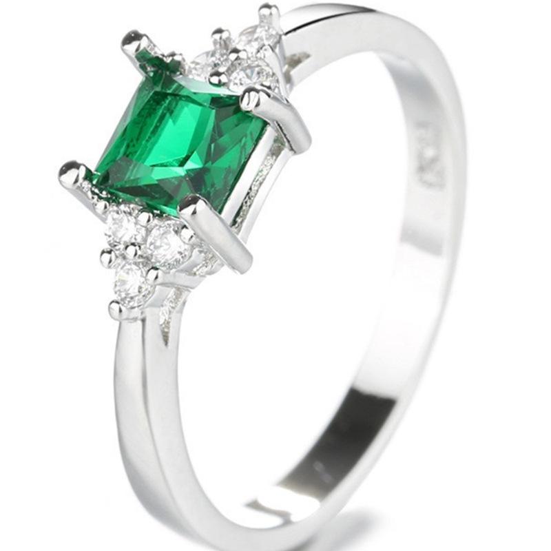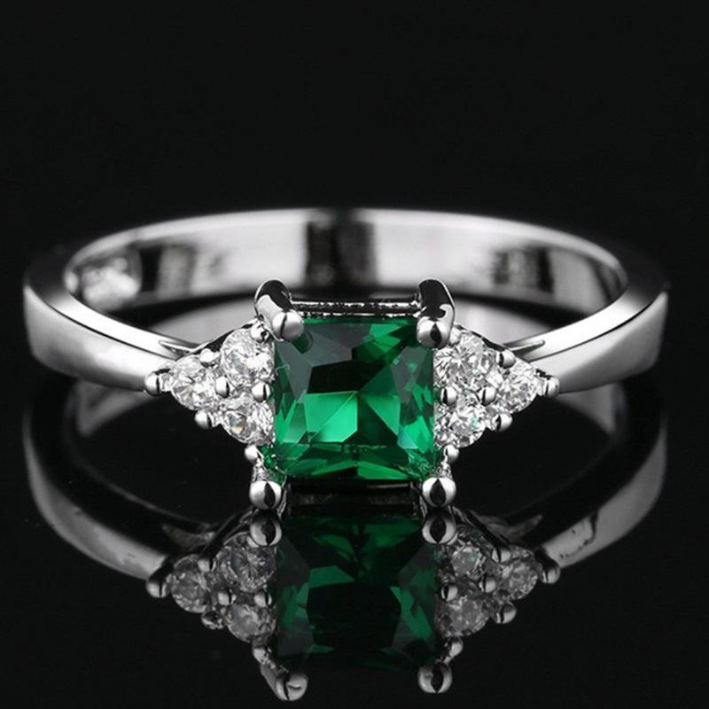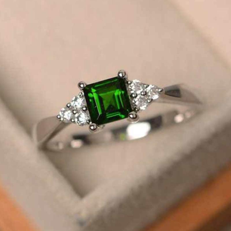 Anillo Ajustable Cuadrado Abierto de Zircón Verde para Mujer, Anillo de Zircón de Alta Gama de Lujo Ligero, Estilo Pareja, Venta Directa de Fábrica