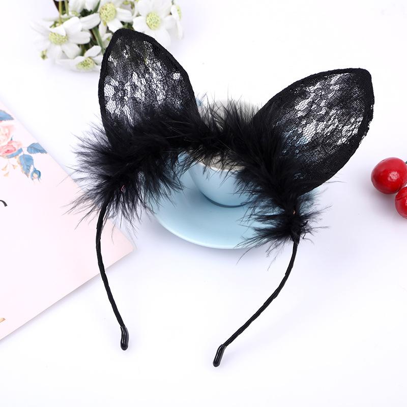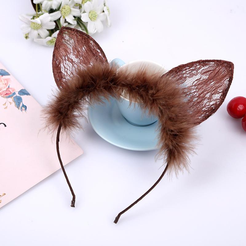Diadema Sexy de Encaje de Plumas de Orejas de Gato de Venta Caliente Vestido para Evento Accesorios para el Cabello de Chica Conejita Multicolor Al Por Mayor Esponjosa