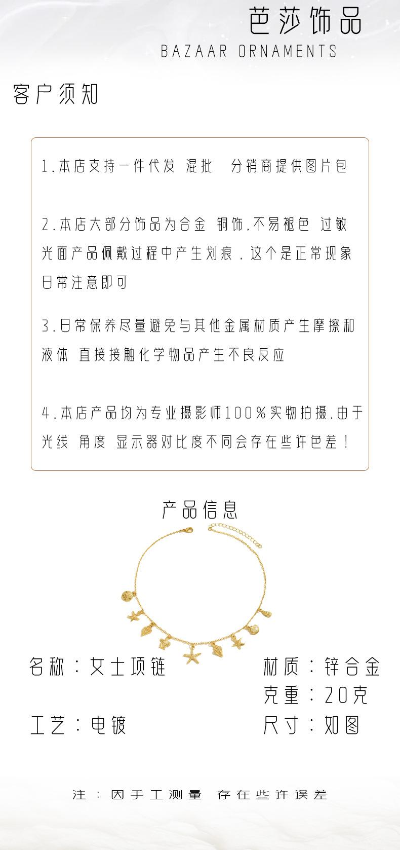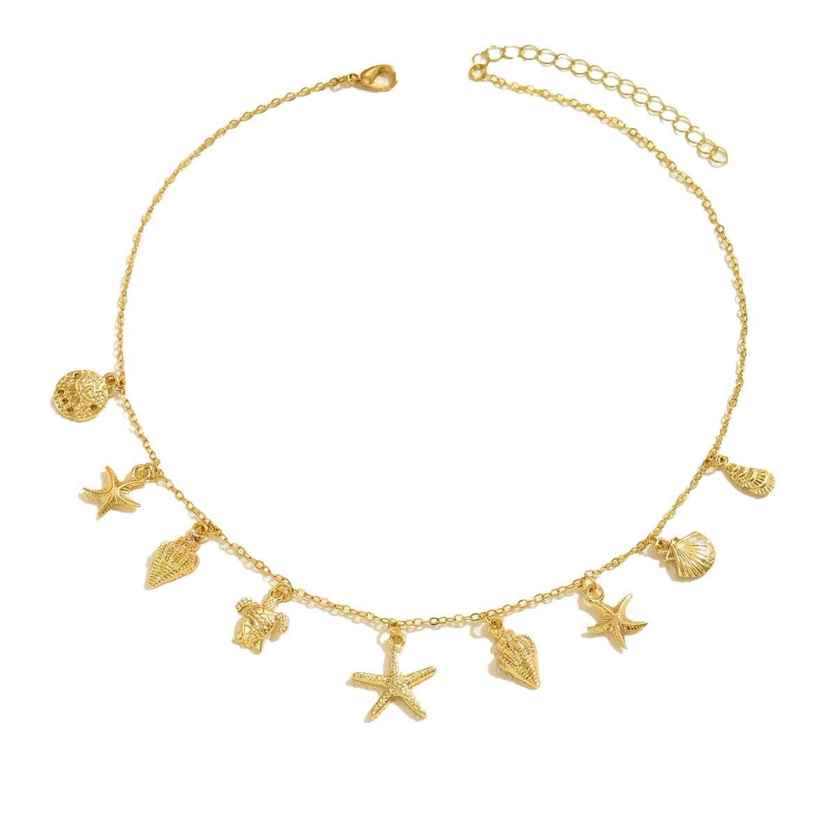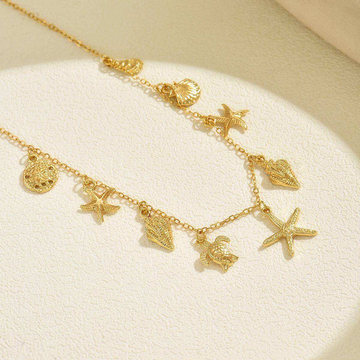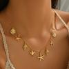 Collar Popular Transfronterizo de Estilo Playero Europeo y Americano para Mujer, Diseño Personalizado de Estrella de Mar Concha Metal Cadena Clavícula, Collar Versátil