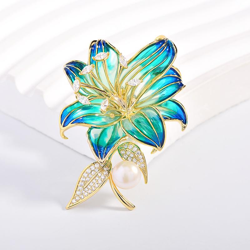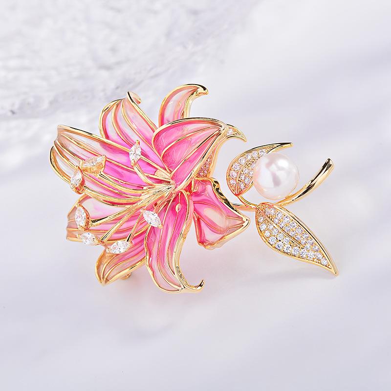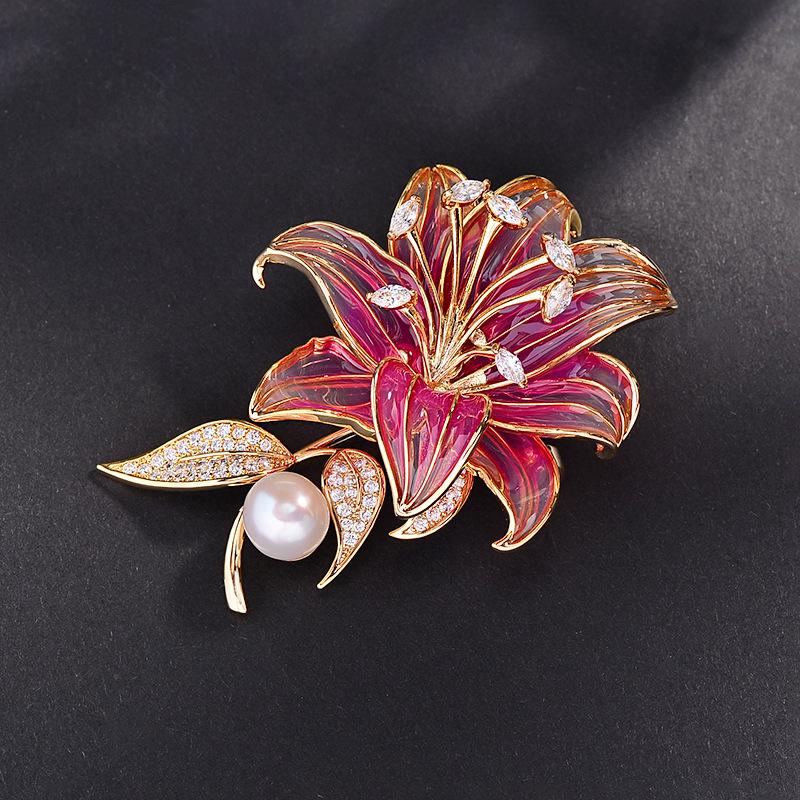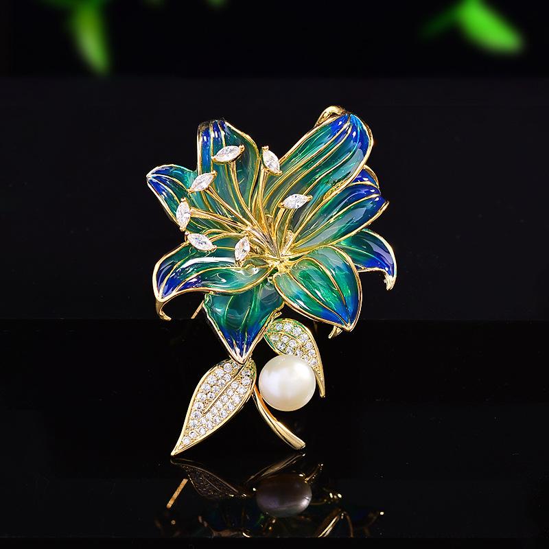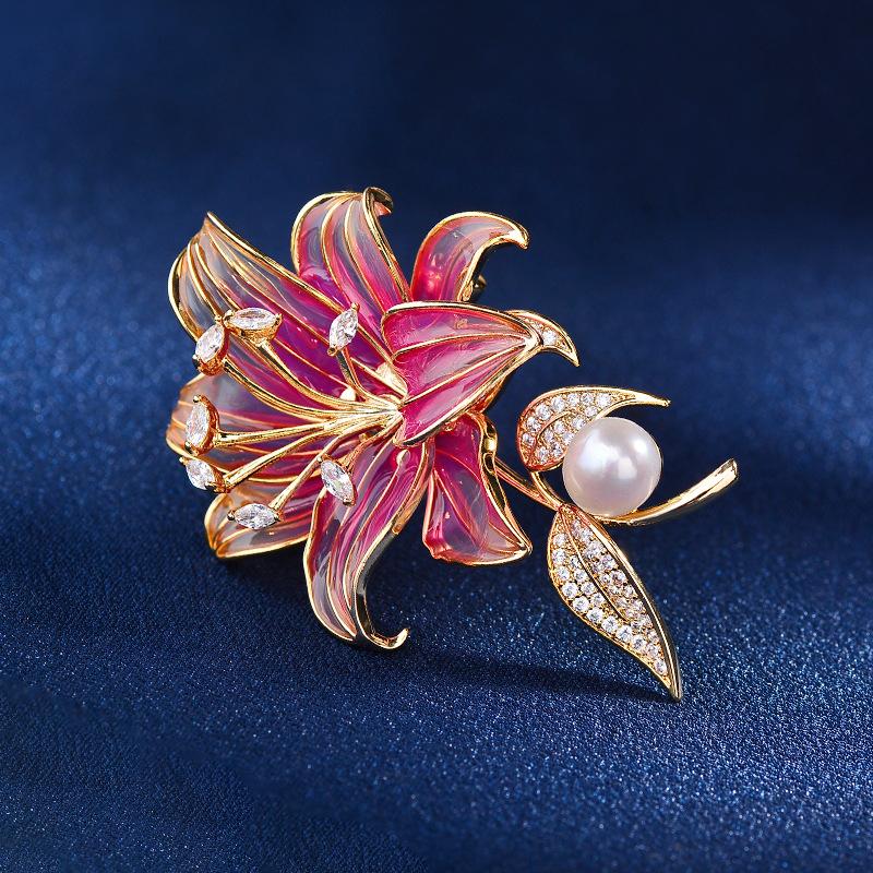 Nuevo Broche de Flor de Esmalte de Moda Sentido de Alta Gama Pin Elegante de Alta Gama Corsage Elegante de Perla de Agua Dulce Ropa