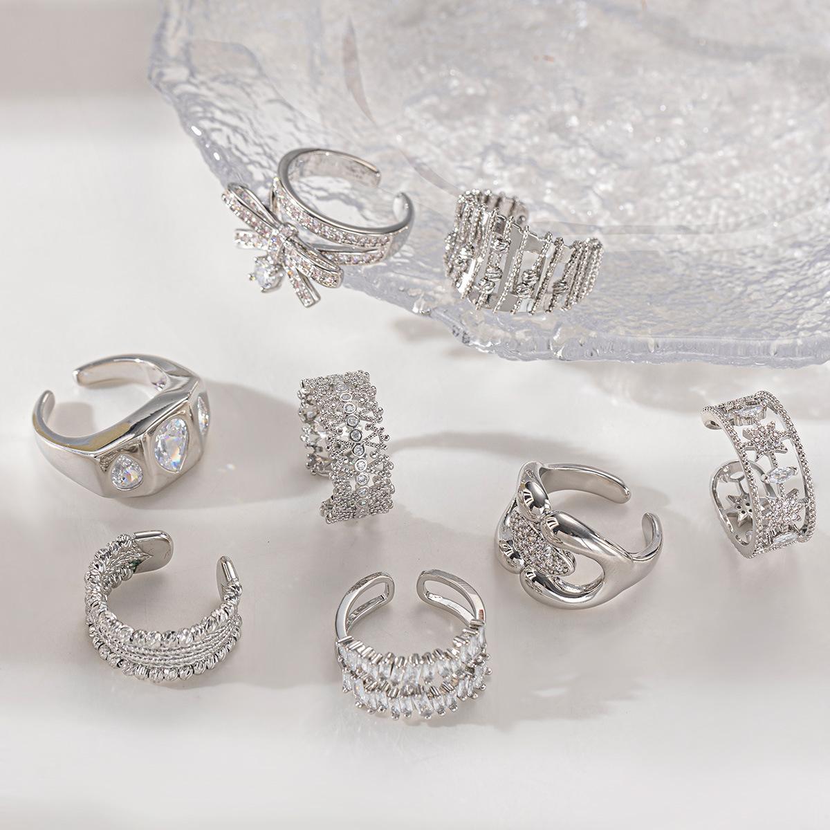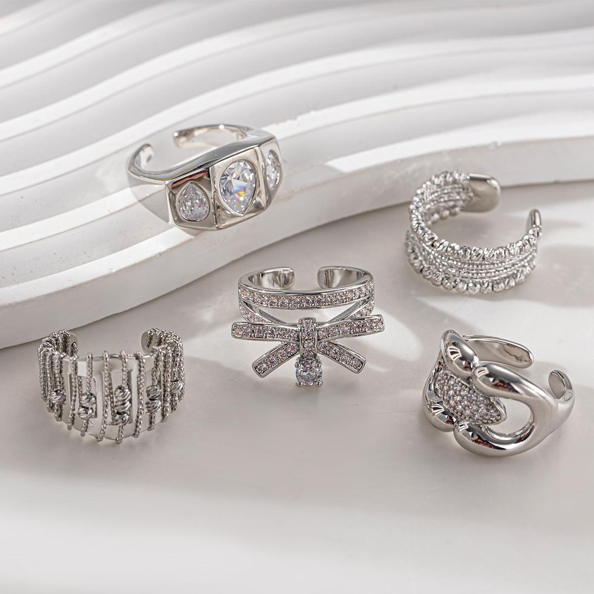 Anillo Chapado en Cobre Blanco Dorado Simple Versátil Estilo Cool Moda Personalidad Irregular Accesorio de Mano Temperamento Estilo Ejecutivo Modelo de Verano