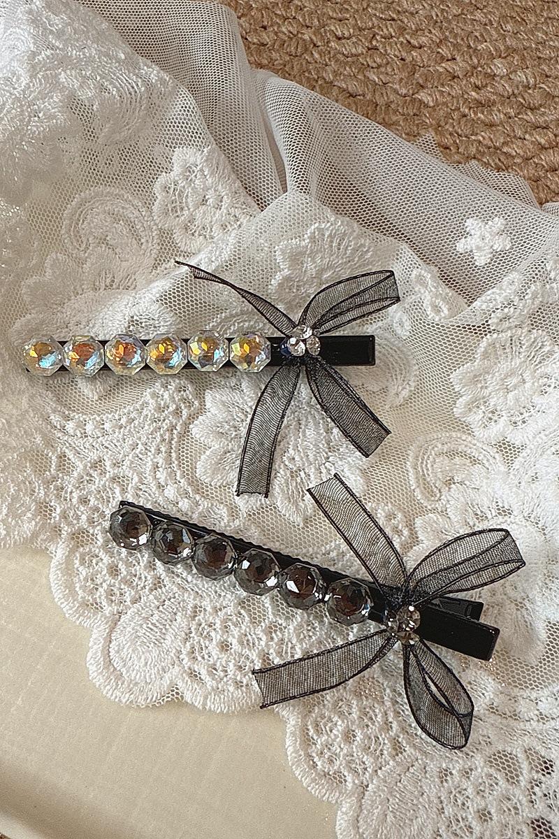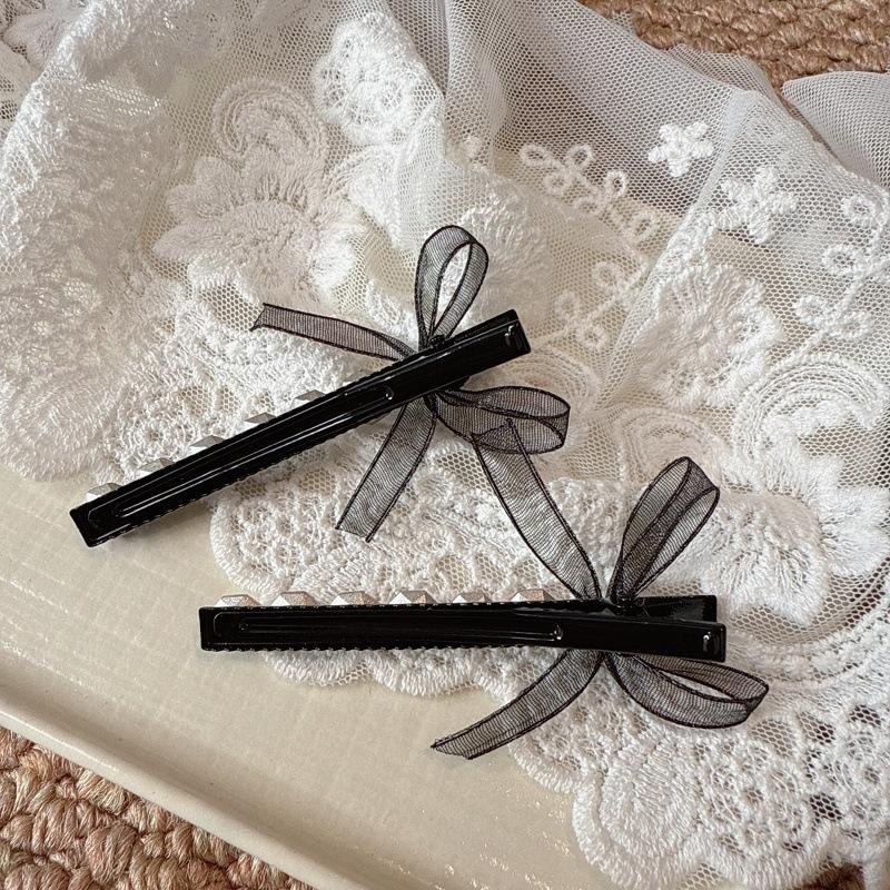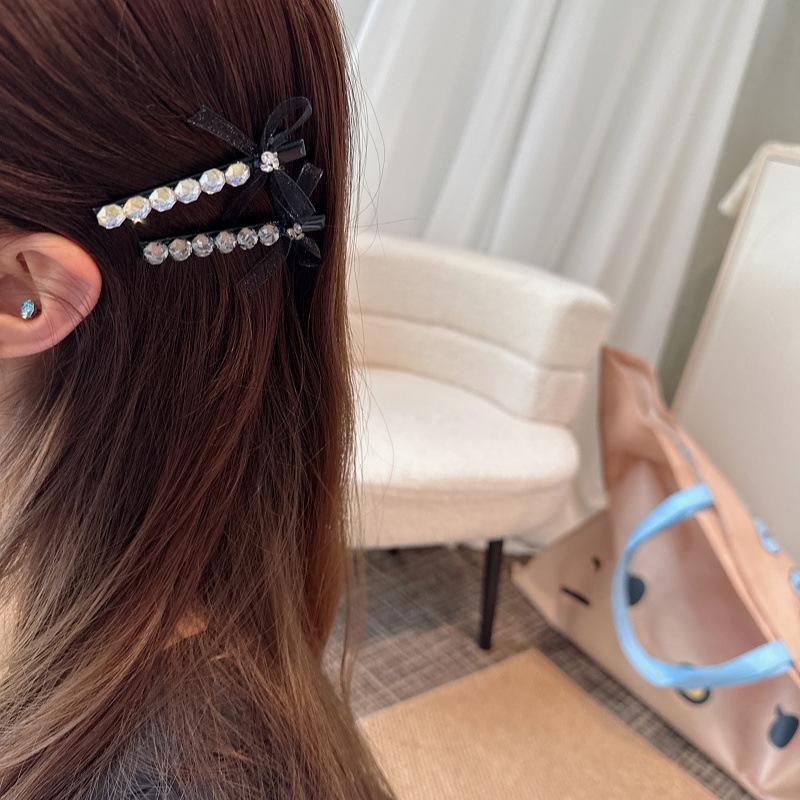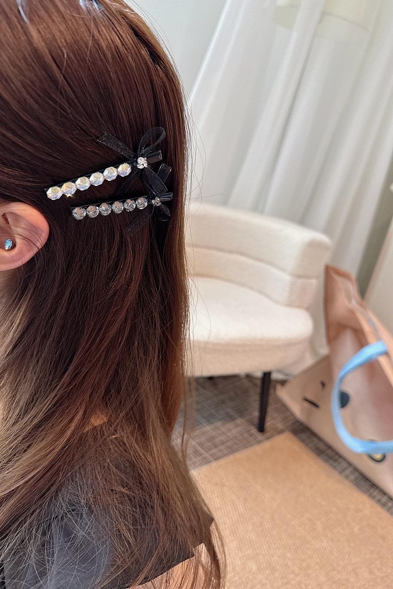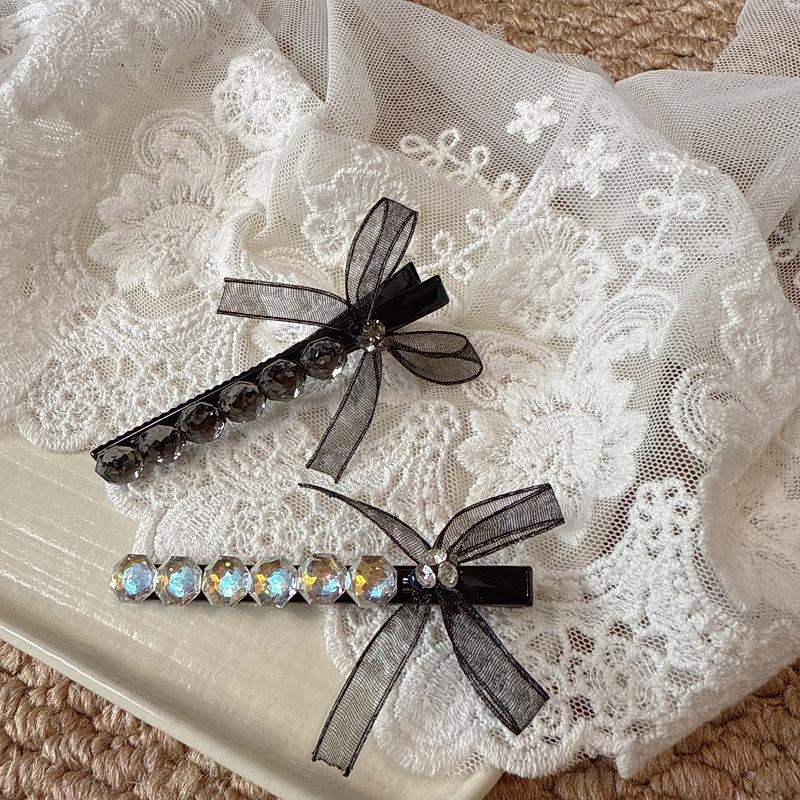 Exquisito Clip de Cristal Negro Malla Lazo de Una Línea Clip para Flequillo Lateral Coreano Popular Pico de Pato Accesorios para el Cabello Nuevo Estilo