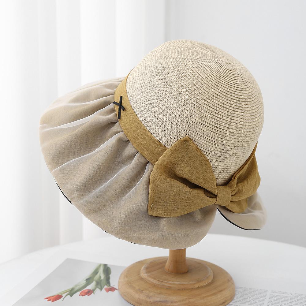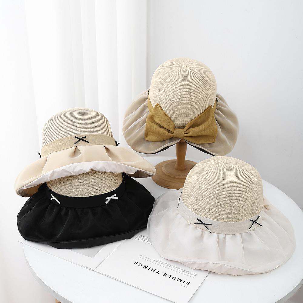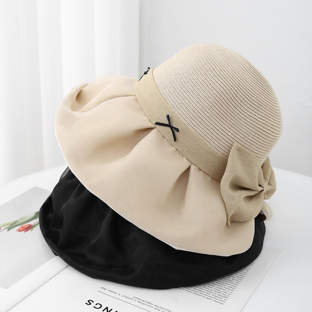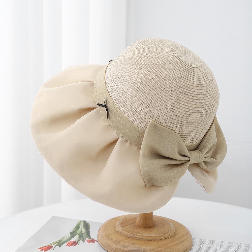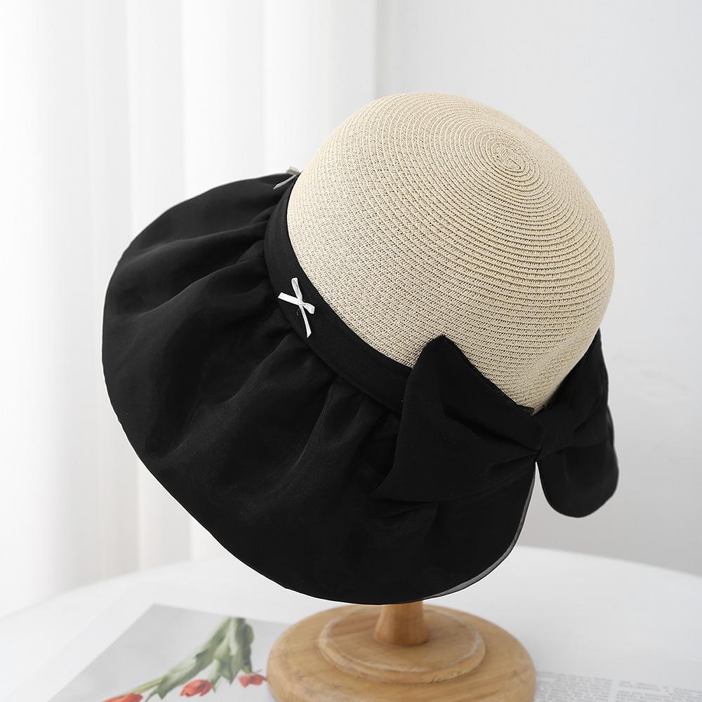 Moda de Verano Sombrero de Pescador con Lazo Sombrero de Paja para Mujer Sombrero para el Sol Protector Solar Viaje Junto al Mar Vacaciones Sombrero de Playa