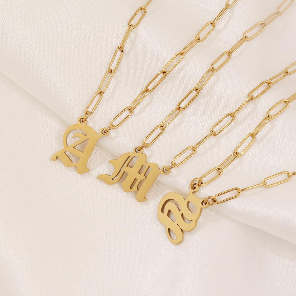 Collar con Colgante de Letra Gótica de Acero Inoxidable Moderno y Único Retro Versátil Collar de 26 Letras Joyería Unisex