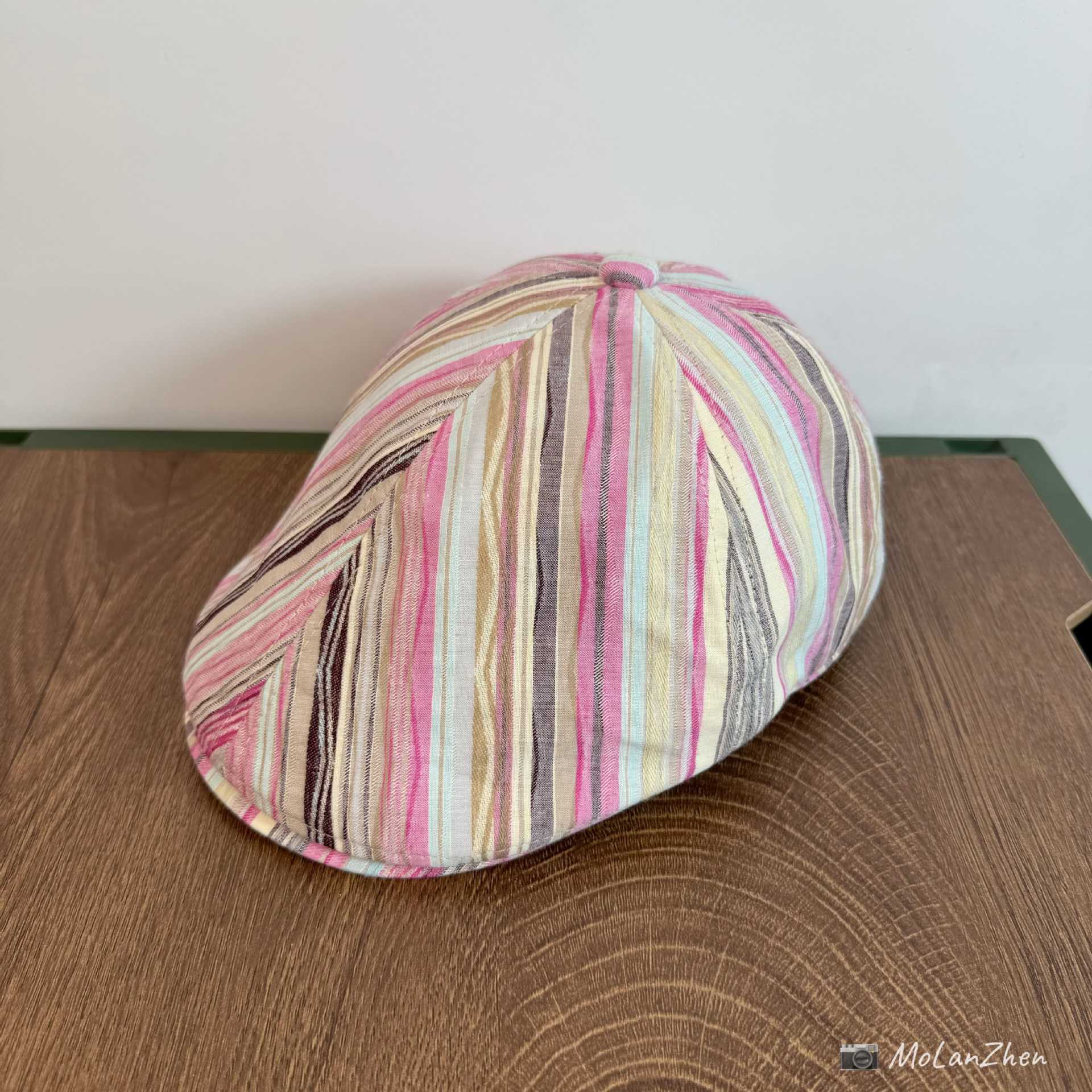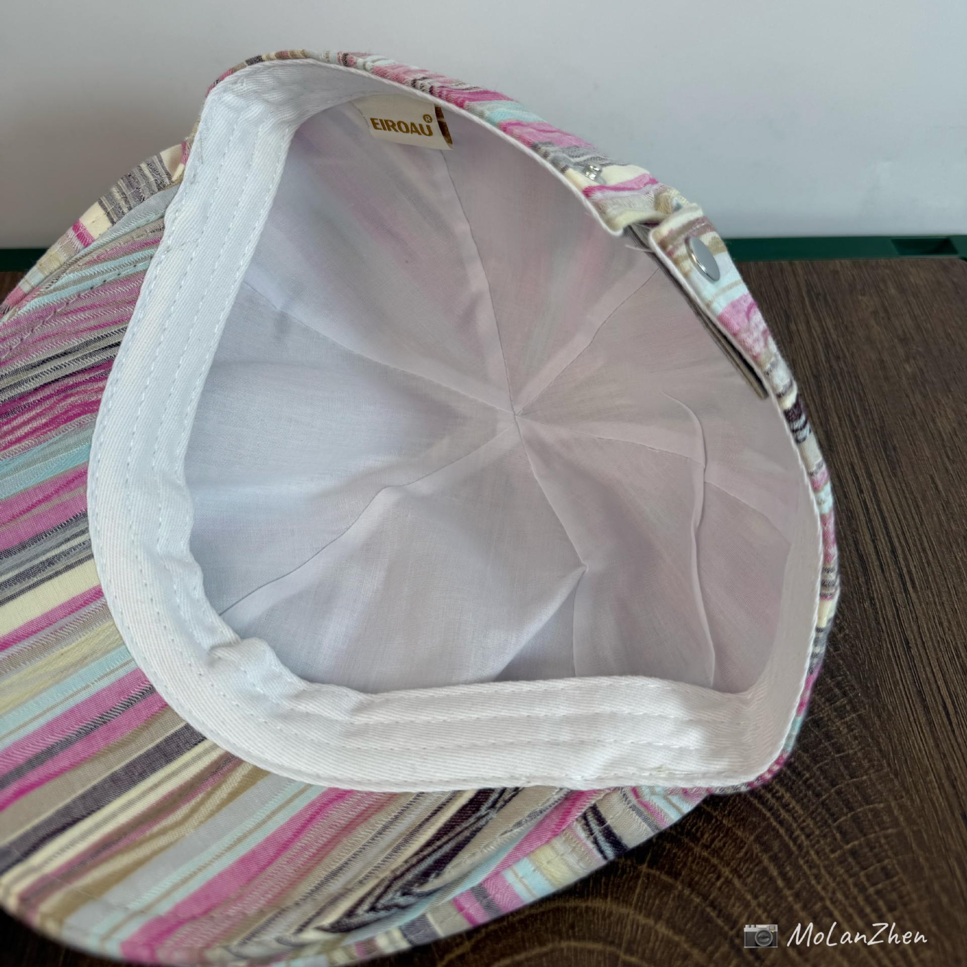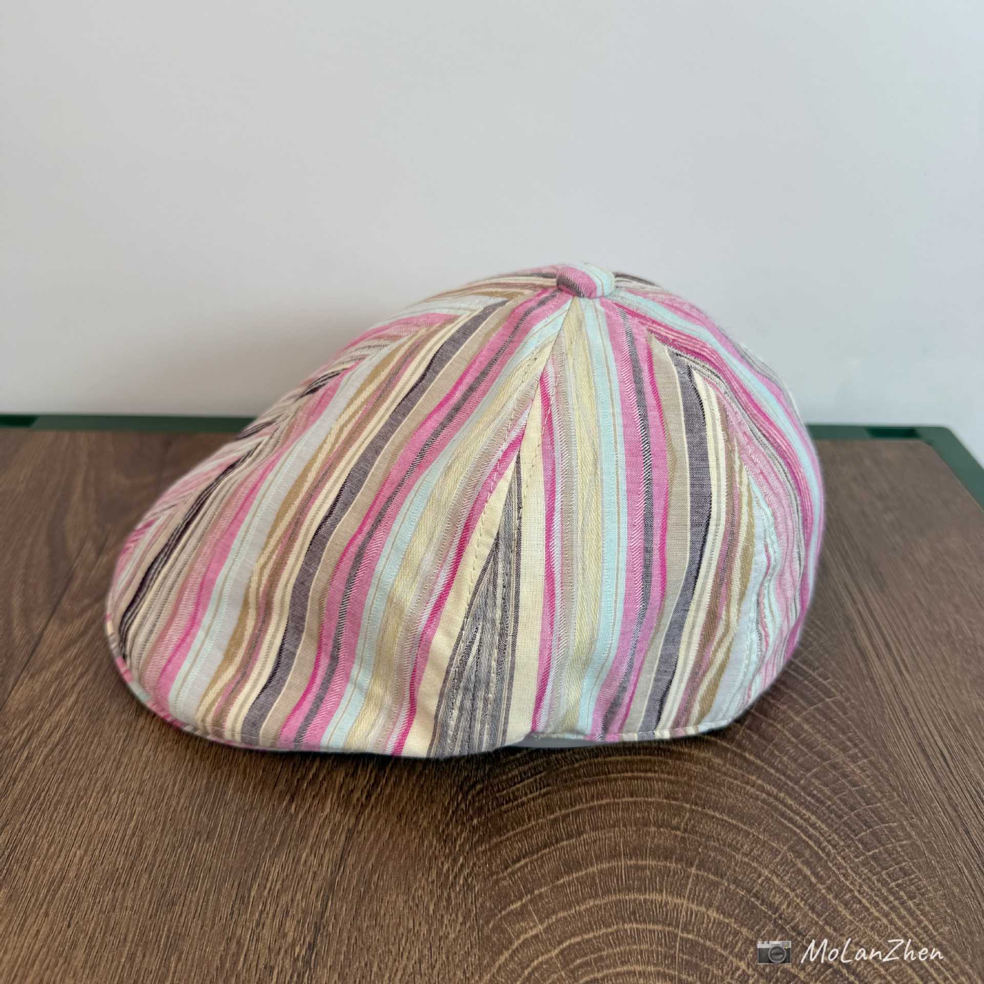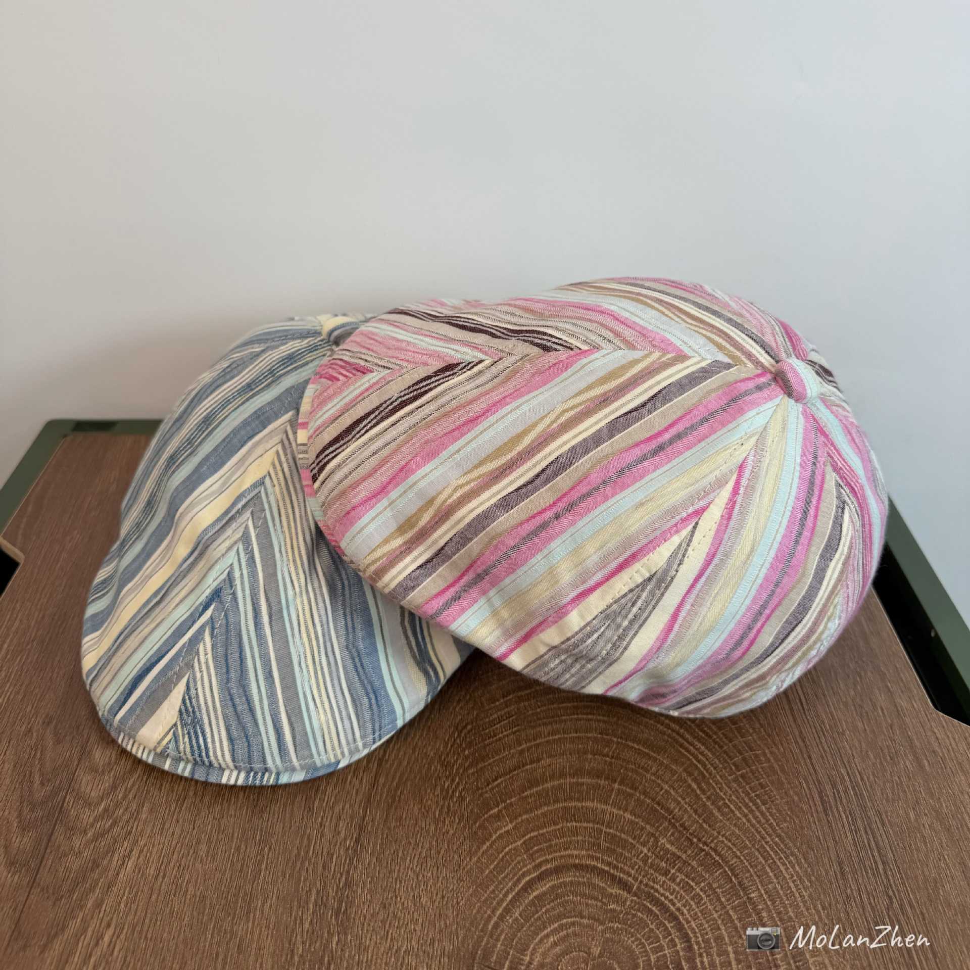 Gorra de Visera Rayada Color Retro Estilo Japonés para Mujer Sencilla que Muestra el Rostro Pequeña Artística Combinable Boina Primavera y Verano Sombrero Delgado