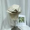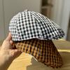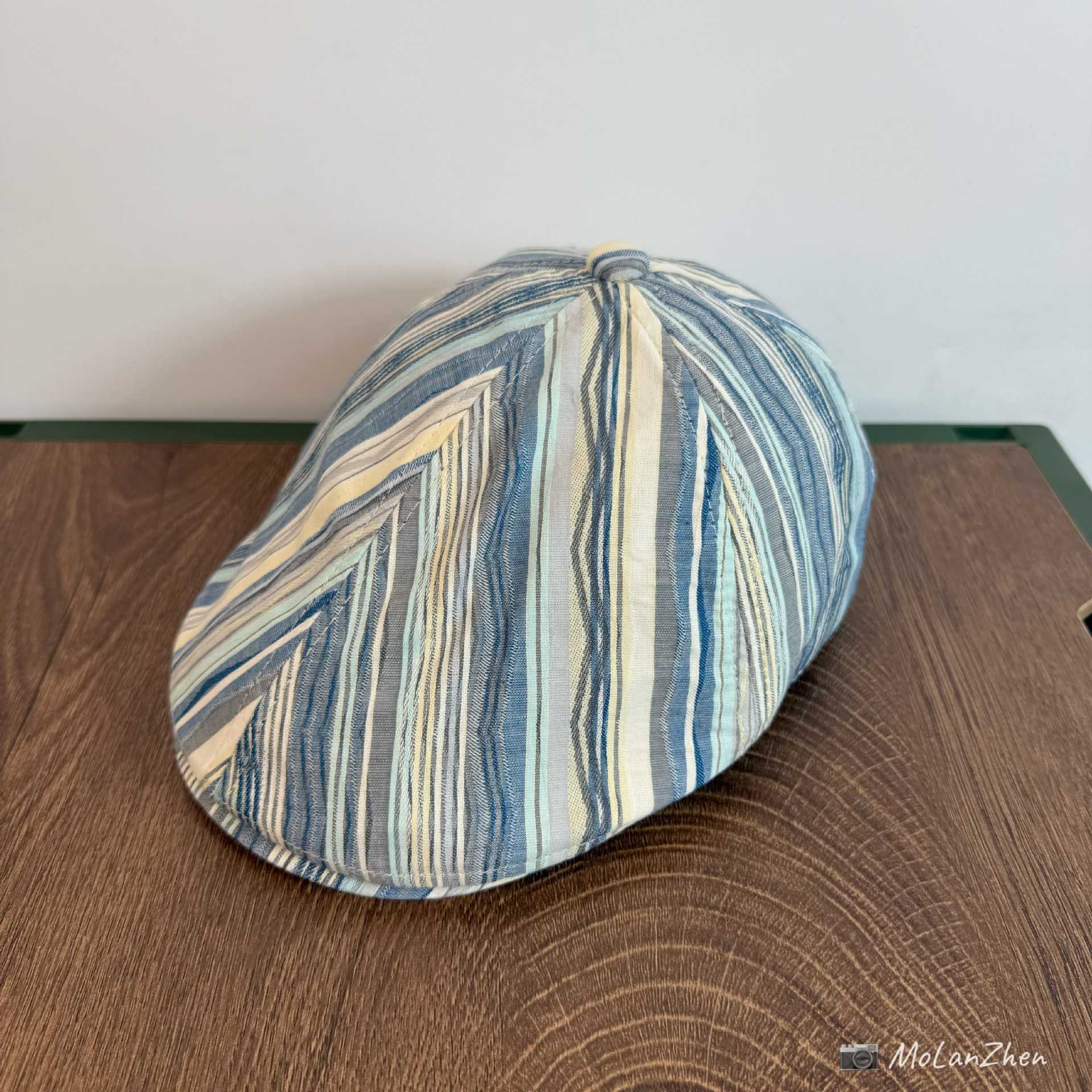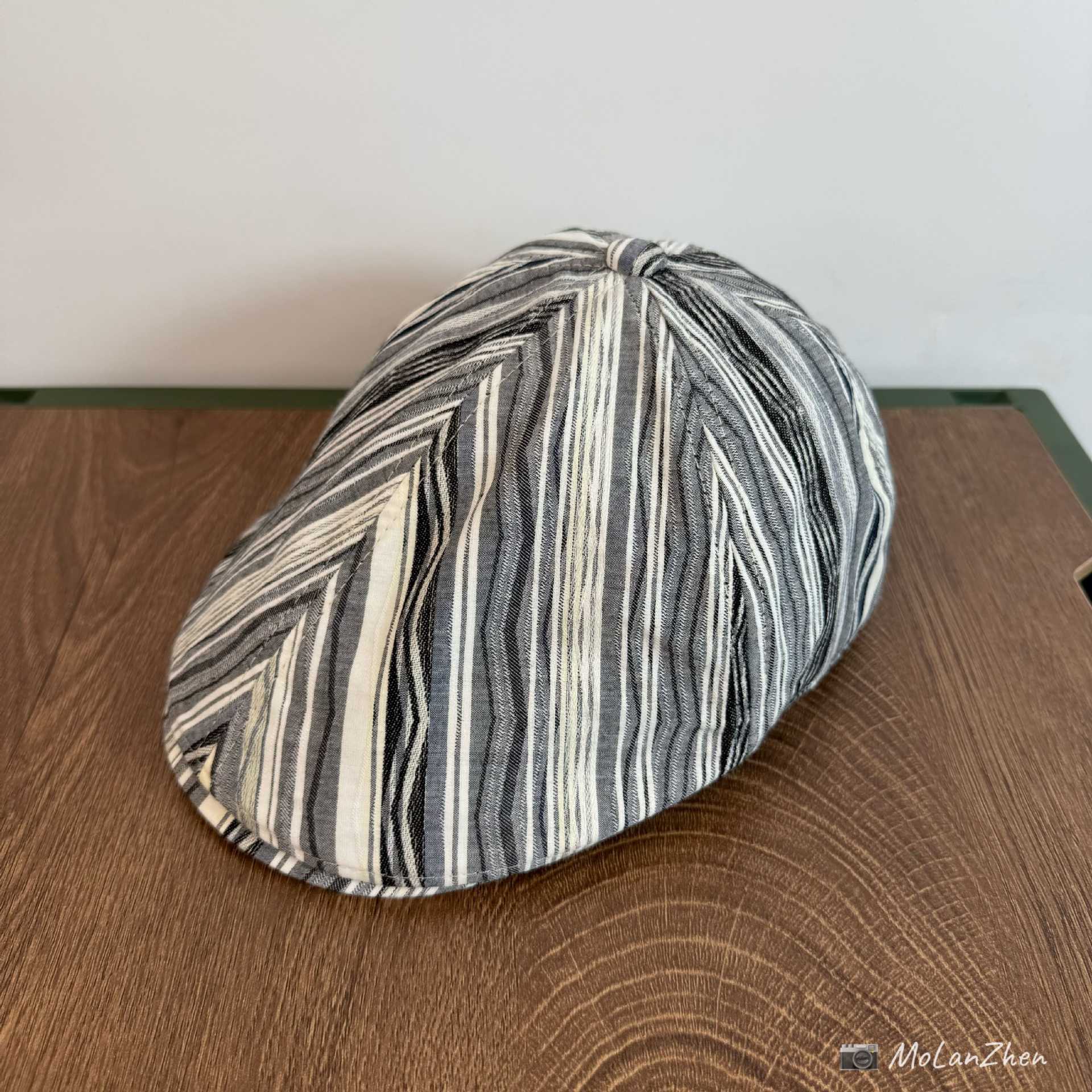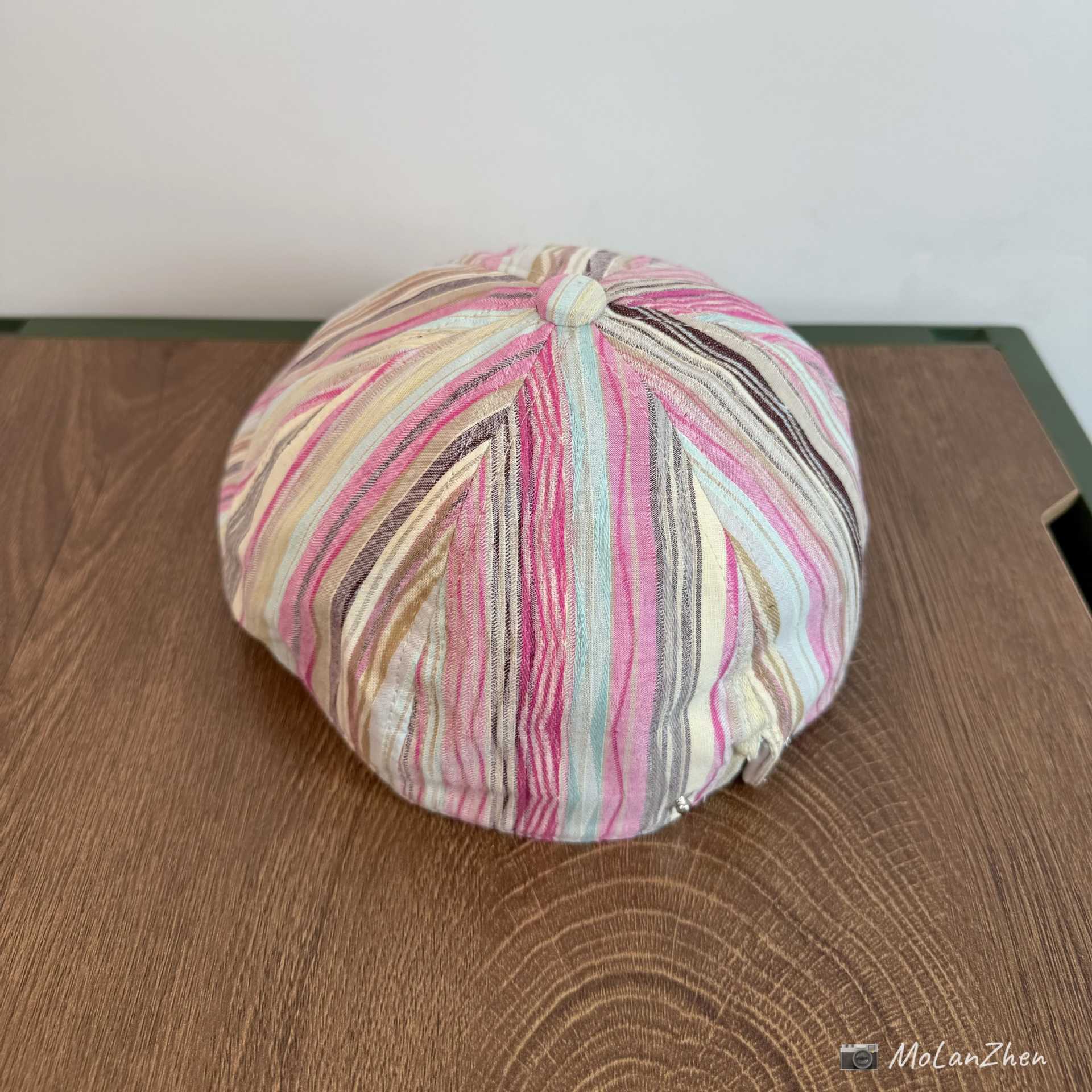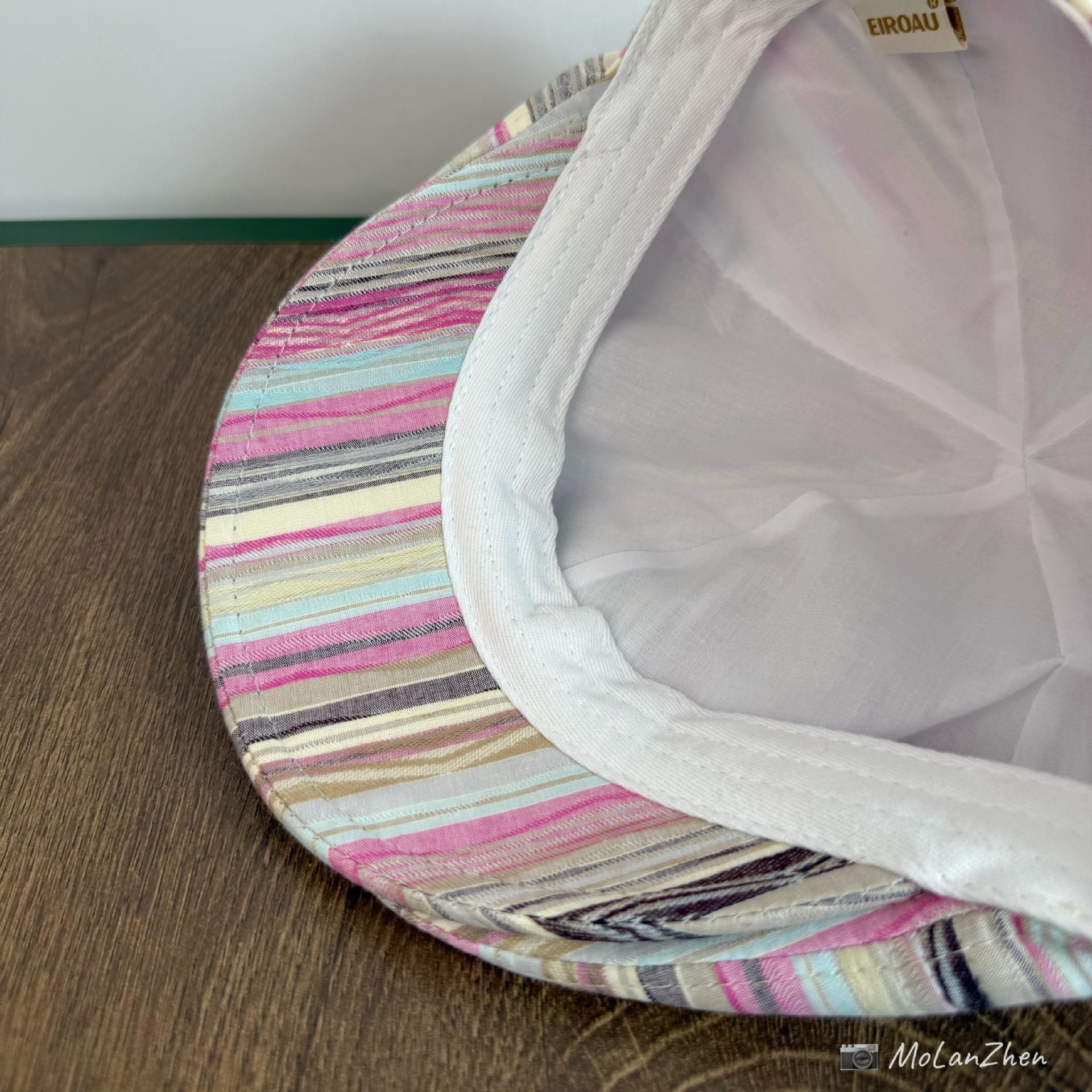 Gorra de Visera Rayada Color Retro Estilo Japonés para Mujer Sencilla que Muestra el Rostro Pequeña Artística Combinable Boina Primavera y Verano Sombrero Delgado