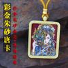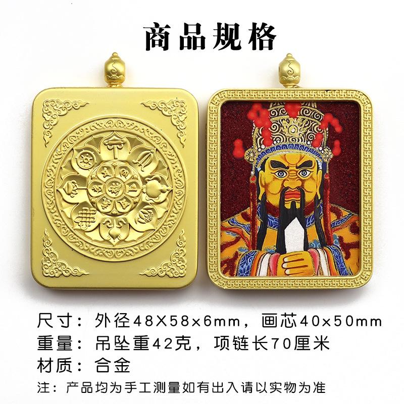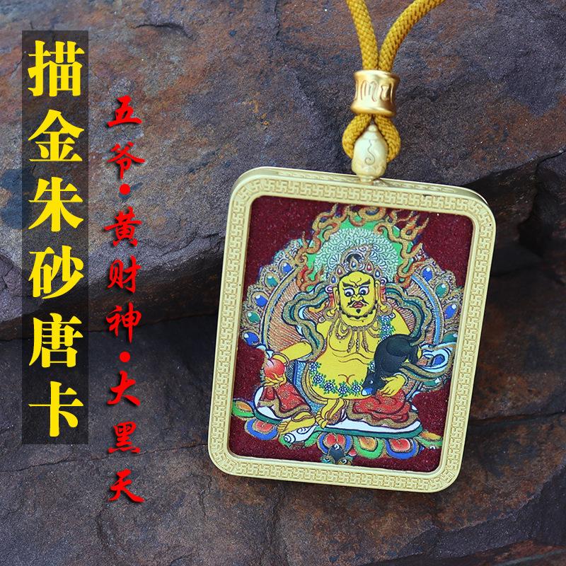 Xizang hand-painted gold cinnabar thangka pendant five-year-old yellow god of wealth thangka necklace pendant ...