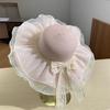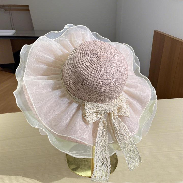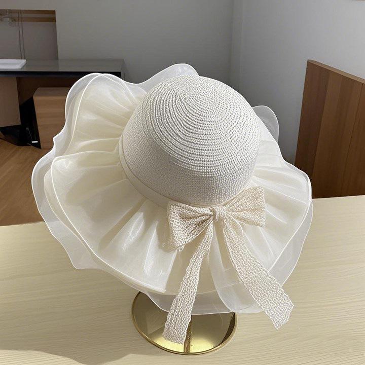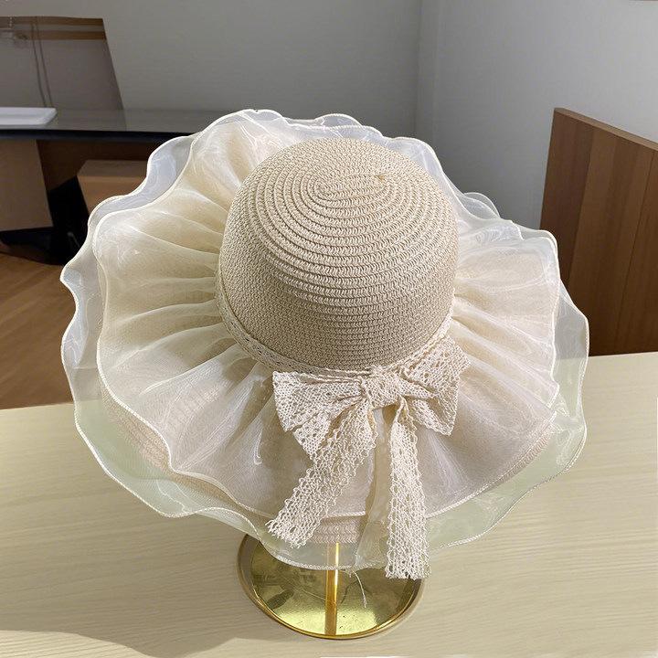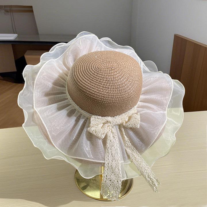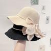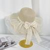 Nuevo Sombrero de Paja de Ala Ancha con Lazo para Mujer Moda de Verano Versátil Sombrero de Playa para el Sol Protección Solar Sombrero de Sol de Malla