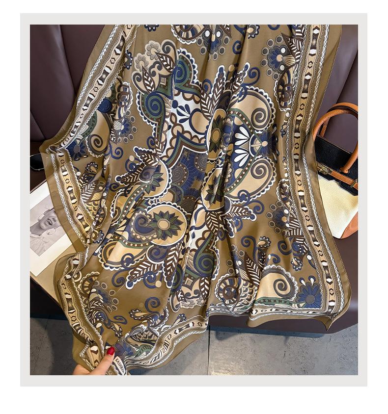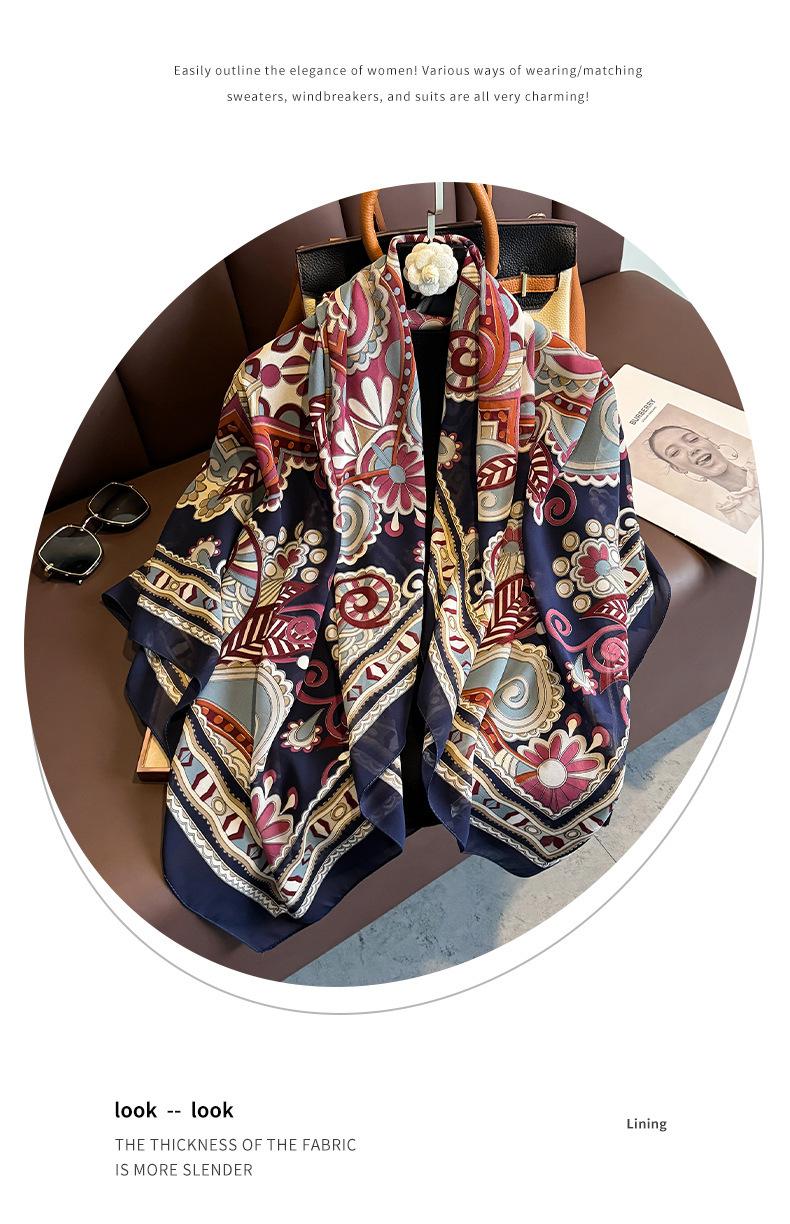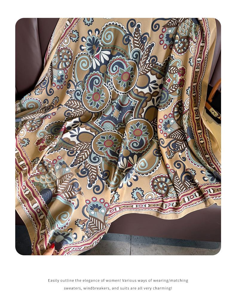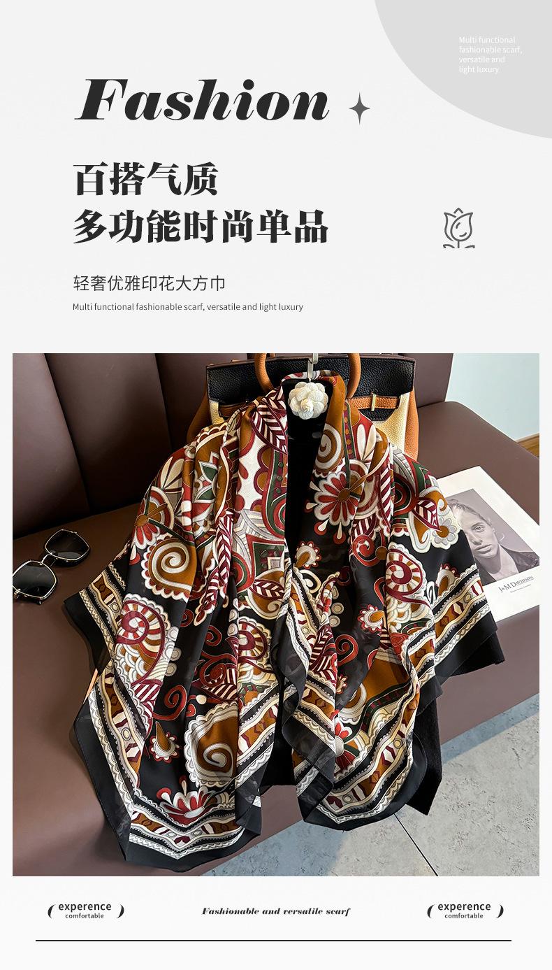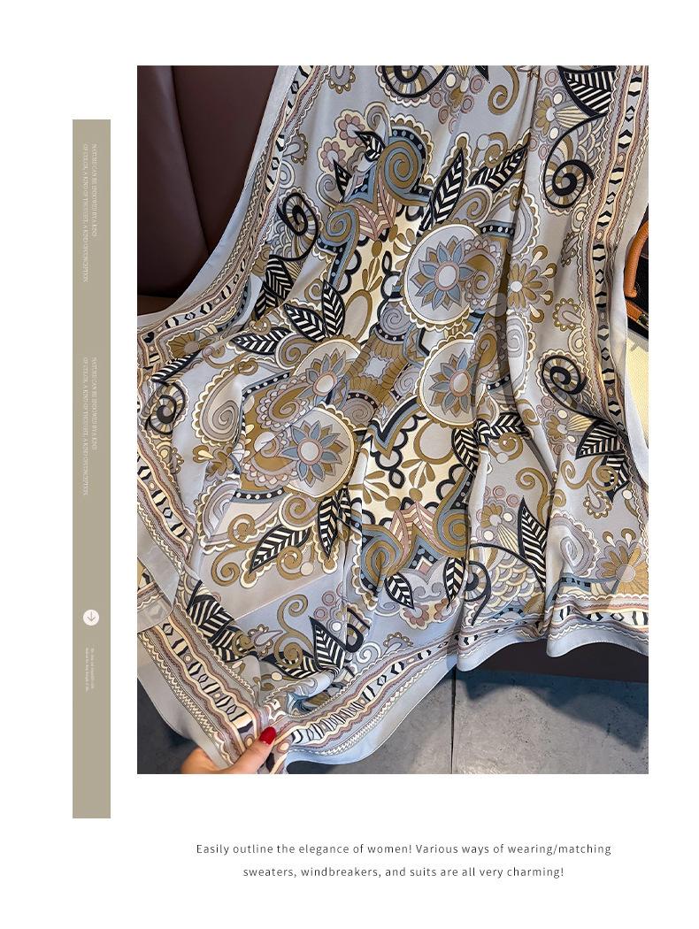 Comercio Exterior Transfronterizo Pañuelo Cuadrado Pañuelo de Seda Estampado para Mujer Primavera y Otoño Verano Estaciones Elegante Lujo Ligero Sensación de Alta Gama Chal Pañuelo