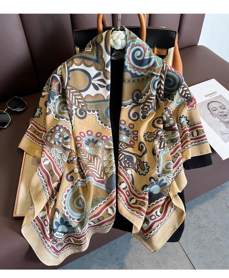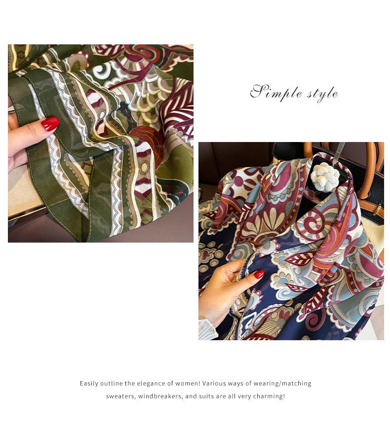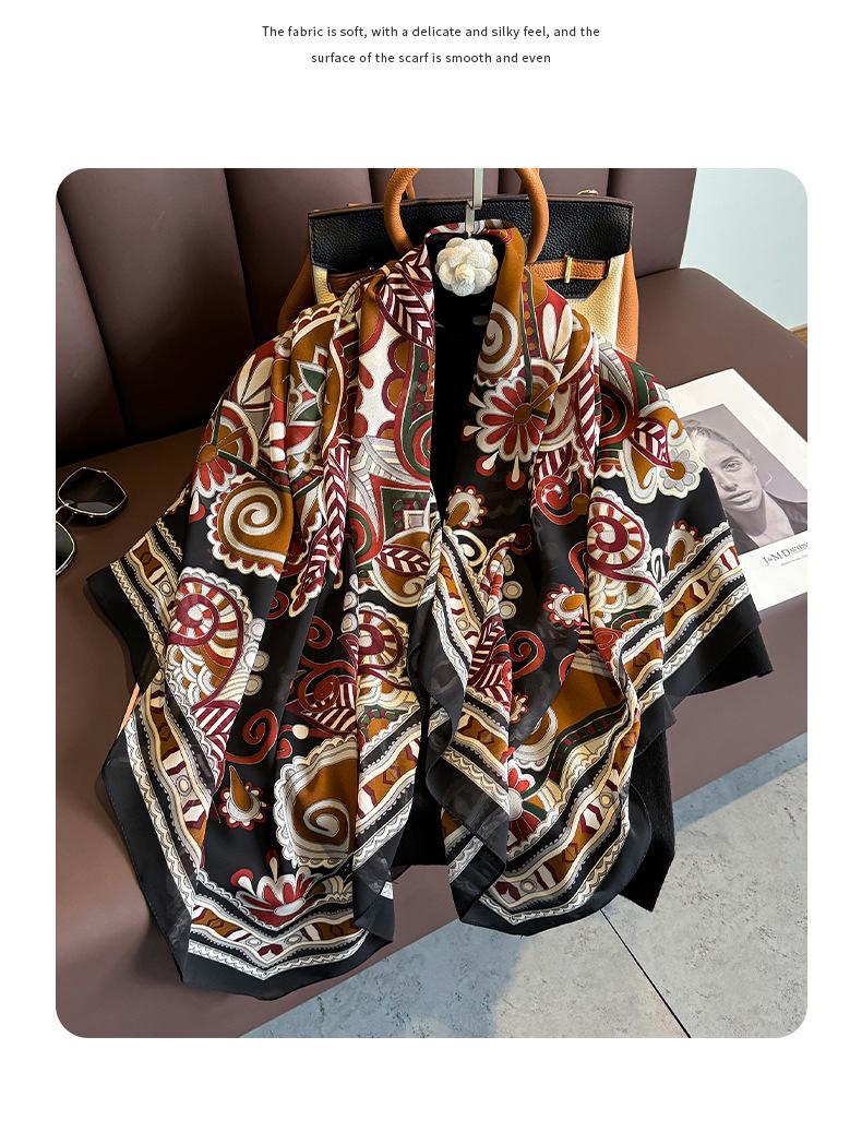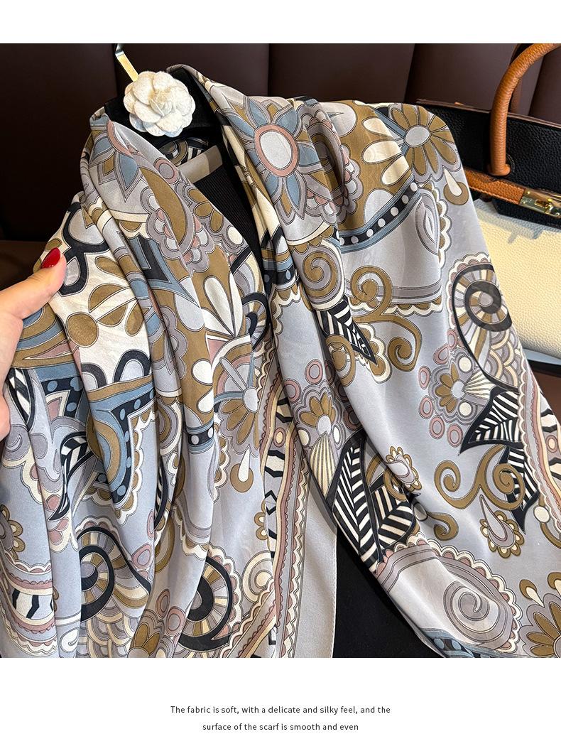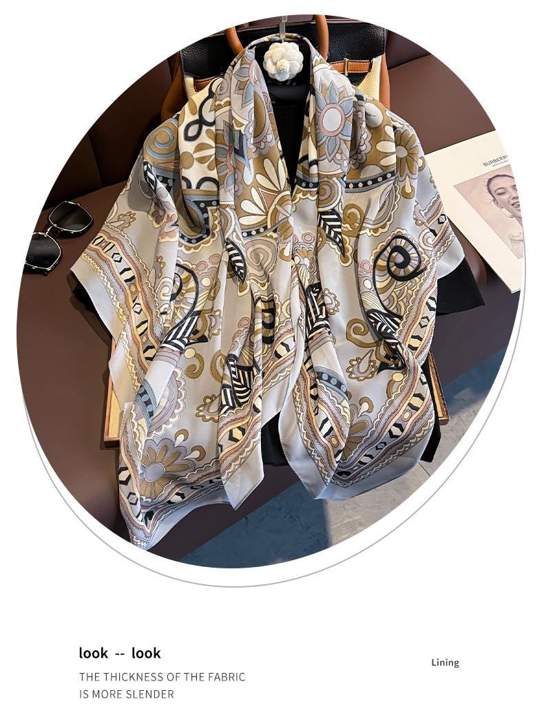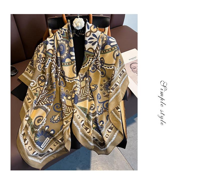 Comercio Exterior Transfronterizo Pañuelo Cuadrado Pañuelo de Seda Estampado para Mujer Primavera y Otoño Verano Estaciones Elegante Lujo Ligero Sensación de Alta Gama Chal Pañuelo